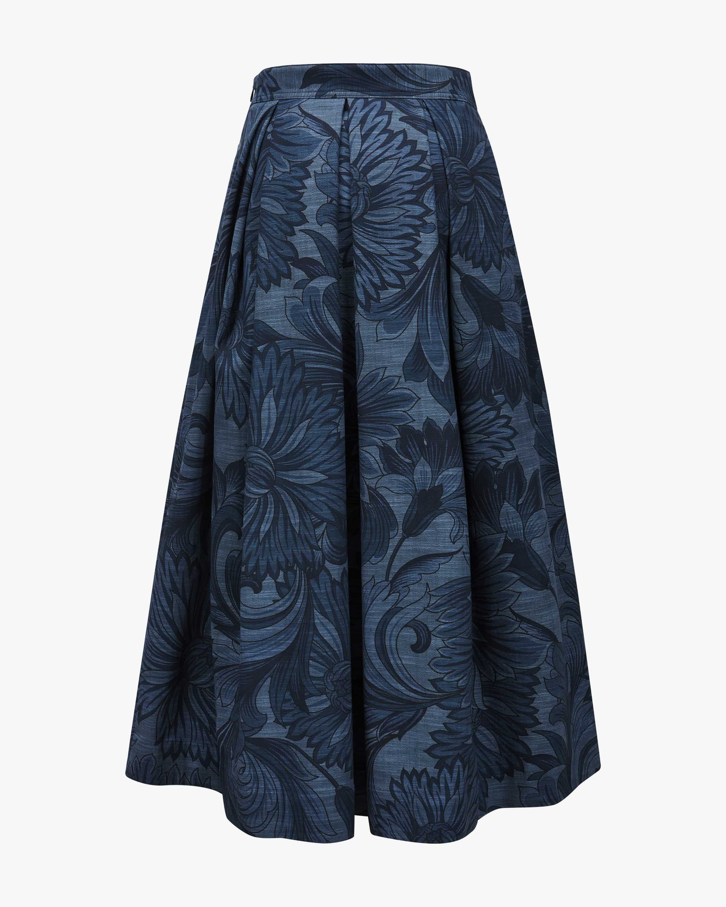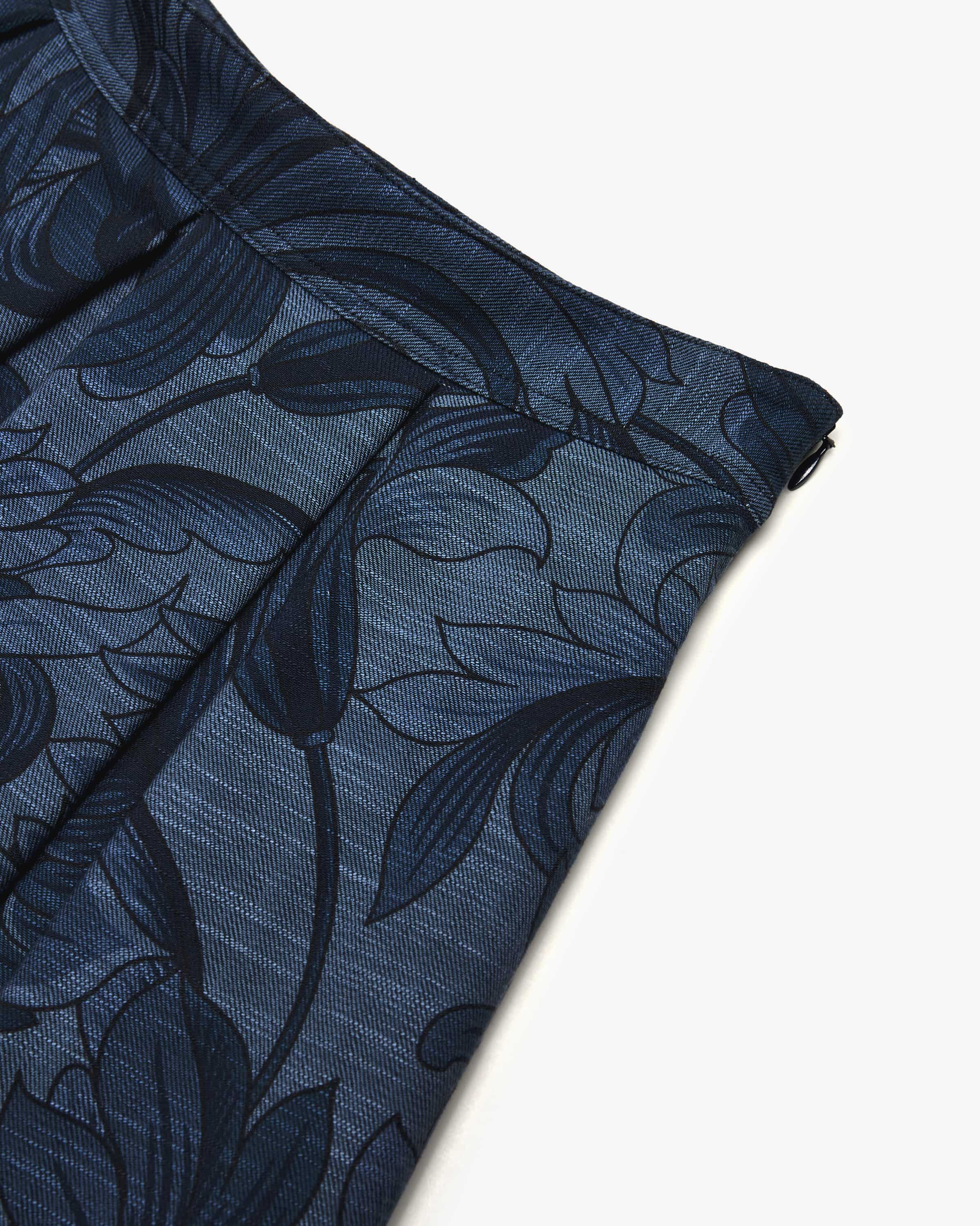 Rock Luna Denim Florence für Damen von Lunatica Milano in Dunkelblau und Blau. Lunatica Milano steht für handgefertigte Röcke made in Italy – farbenfroh und voller La-Dolce-Vita-Charme. Auch dieses Modell aus modischem Denim-Material avanciert dank floralem Muster zum femininen Hingucker und verleiht jedem Outfit das gewisse Etwas.
