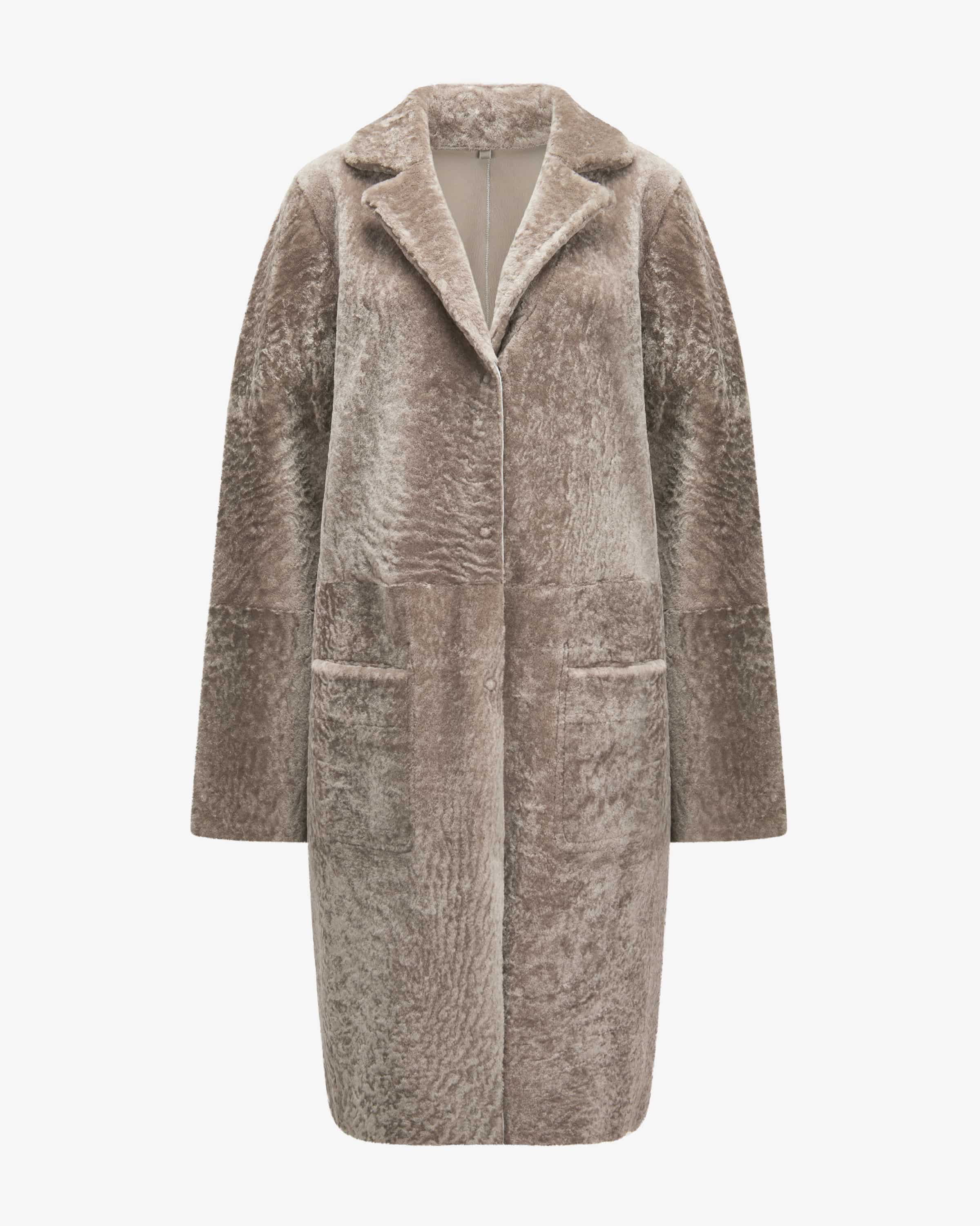 Sabine Schaffell-Wendemantel für Damen von Nove in Taupe. Eine Marke die für