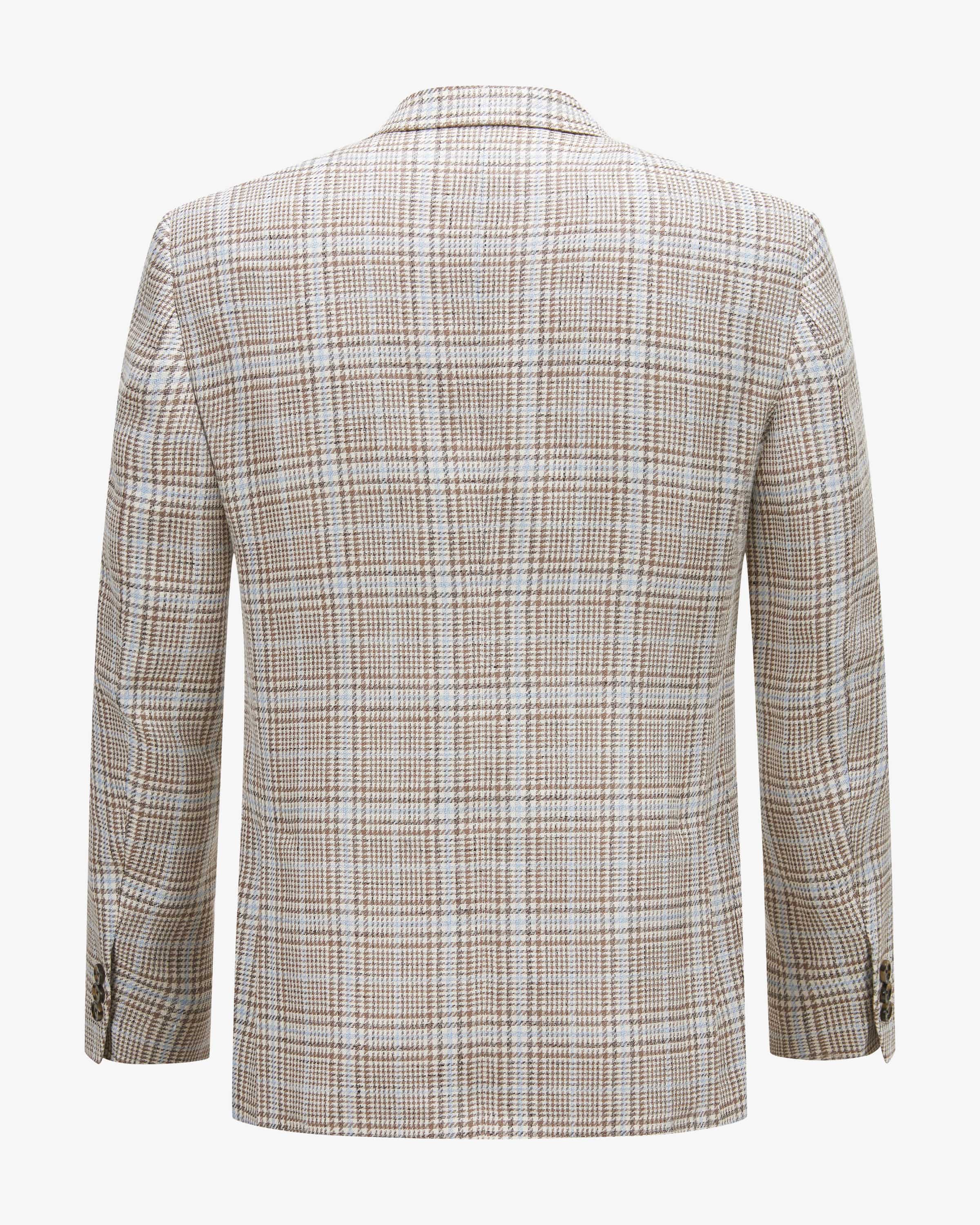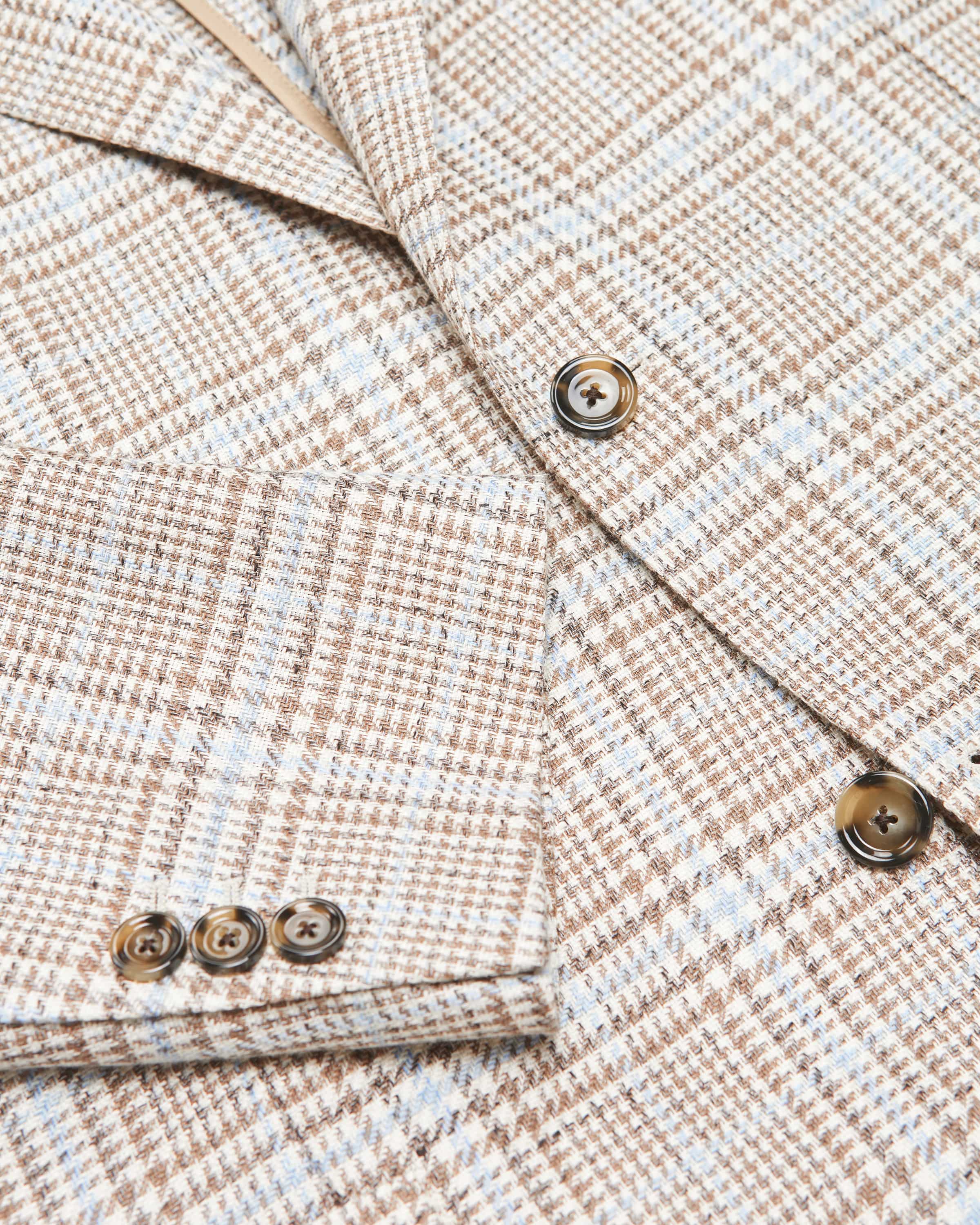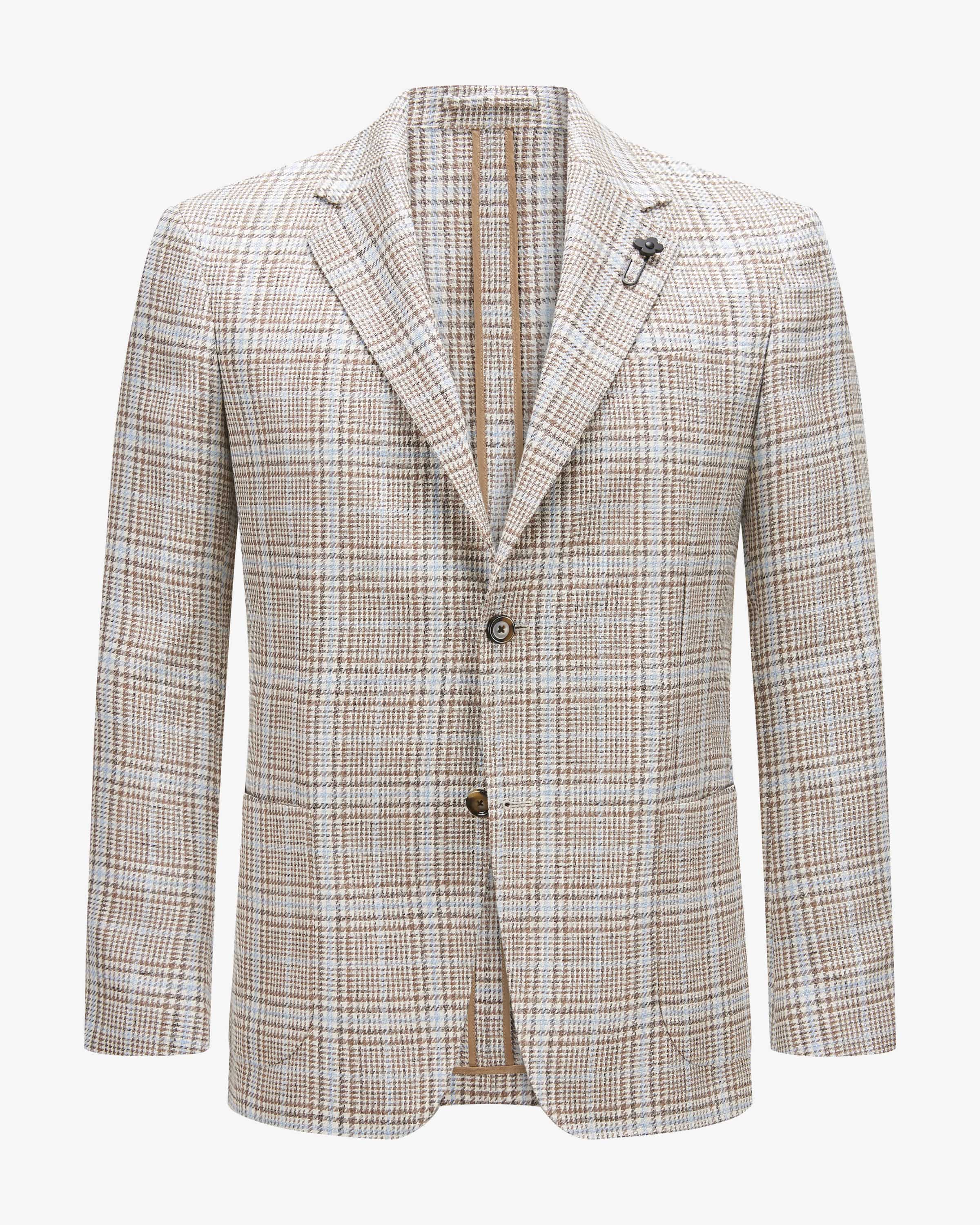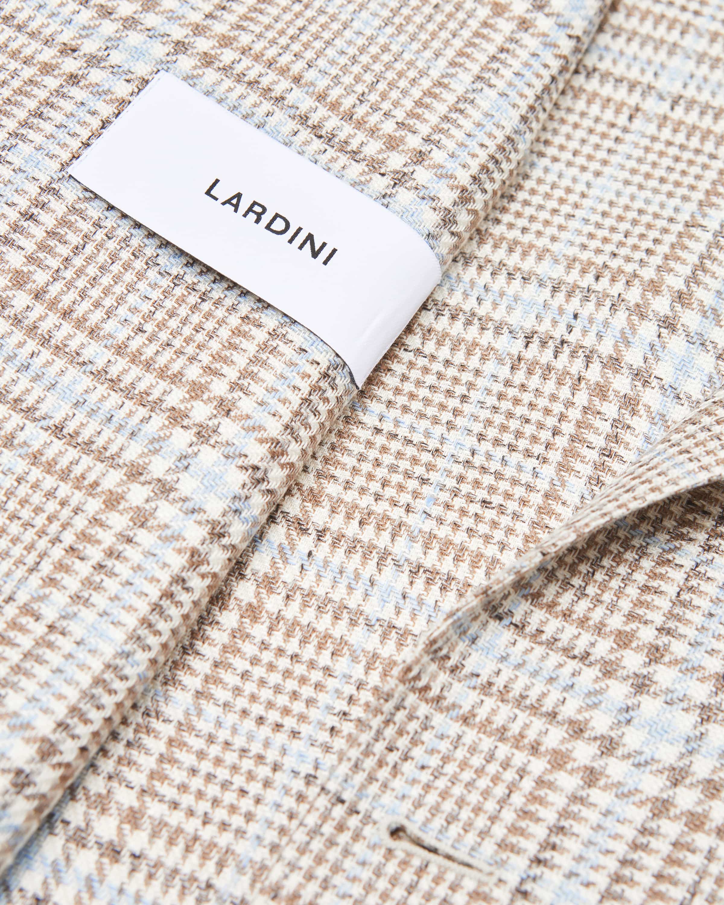 Sakko für Herren von Lardini in Taupe, Creme und Hellblau. Mit diesem Modell präsentiert das Label einen modischen Favoriten in maskuliner Aufmachung. Klassische Details sowie das moderne Check-Muster schaffen ein stilvolles Gesamtbild, während der hochwertige Mix aus Baumwolle und Leinen eine angenehme Haptik verspricht.