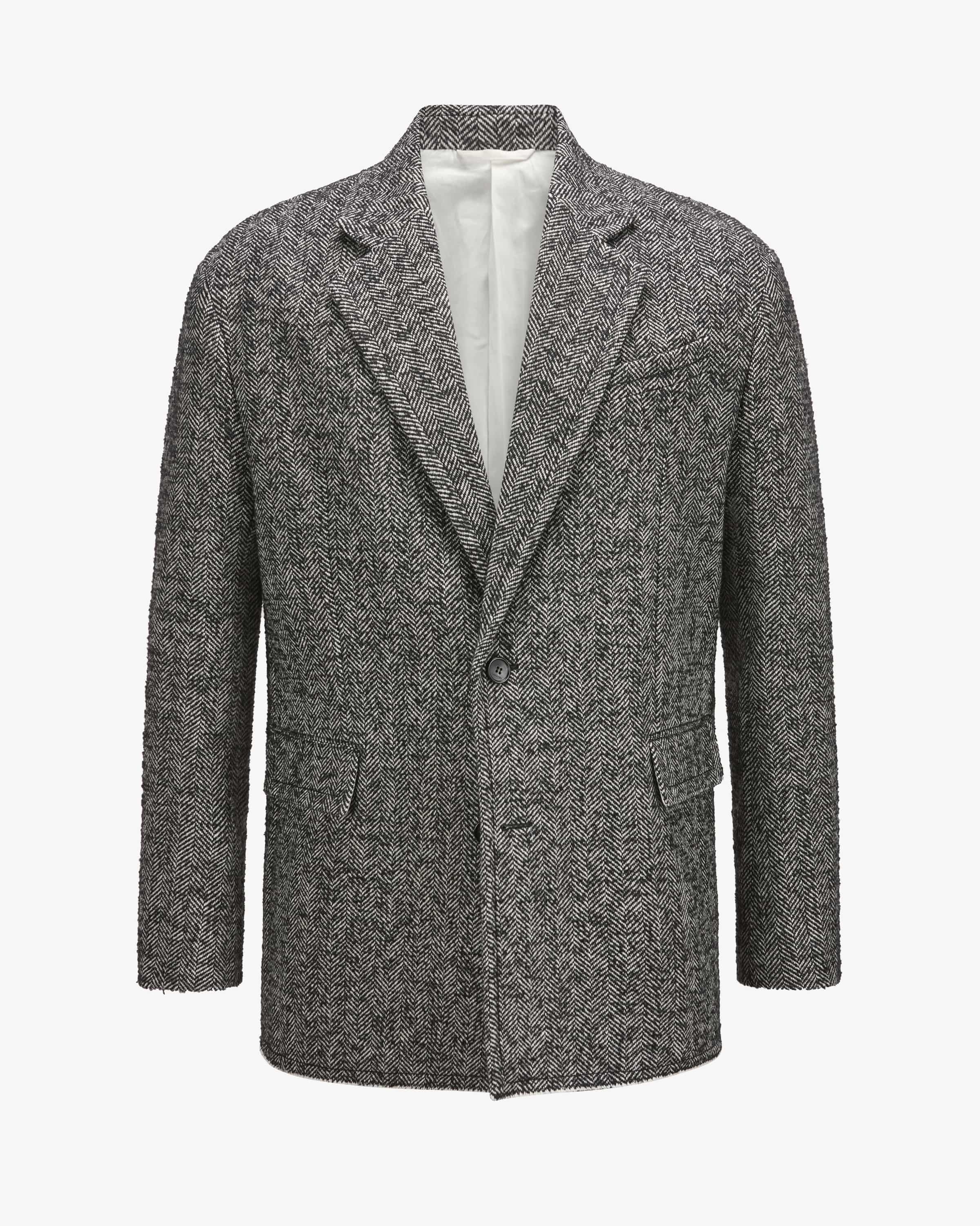 Sakko für Herren von Maison Margiela in Schwarz und Weiß. Die von Jeanne Lanvin 1889 in Paris gegründete Modemarke gilt als eine der ältesten der Welt. Das leger geschnittene Modell präsentiert sich dank hochwertigem Schurwoll-Mix in schwerer Haptik als modischer Begleiter mit Jacken-Charakter, während das strukturierte Fischgrät-Design zusammen mit dem ausgefransten Saum einen besonderen Touch verleiht.