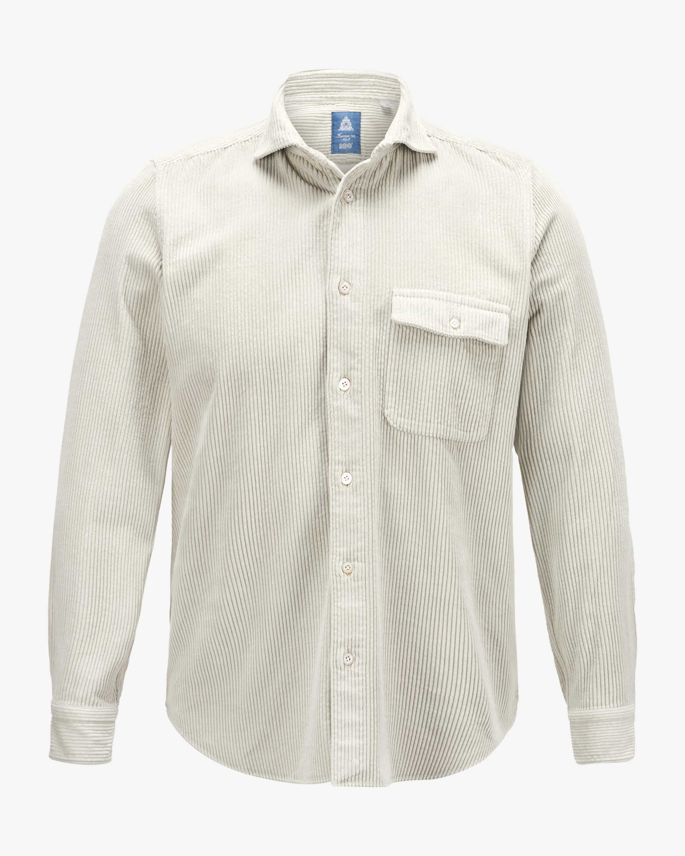 Salina Cord-Overshirt für Herren von Finamore 1925 in Stein. Die neapolitanische Hemdenmanufaktur mit über 100 Jahren Tradition stellt handgenähte und individuelle Mode her. Auch dieses Modell präsentiert sich mit weicher Cord- Qualität, die für angenehmen Tragekomfort sorgt. Klassische Details runden den maskulinen Style harmonisch ab.