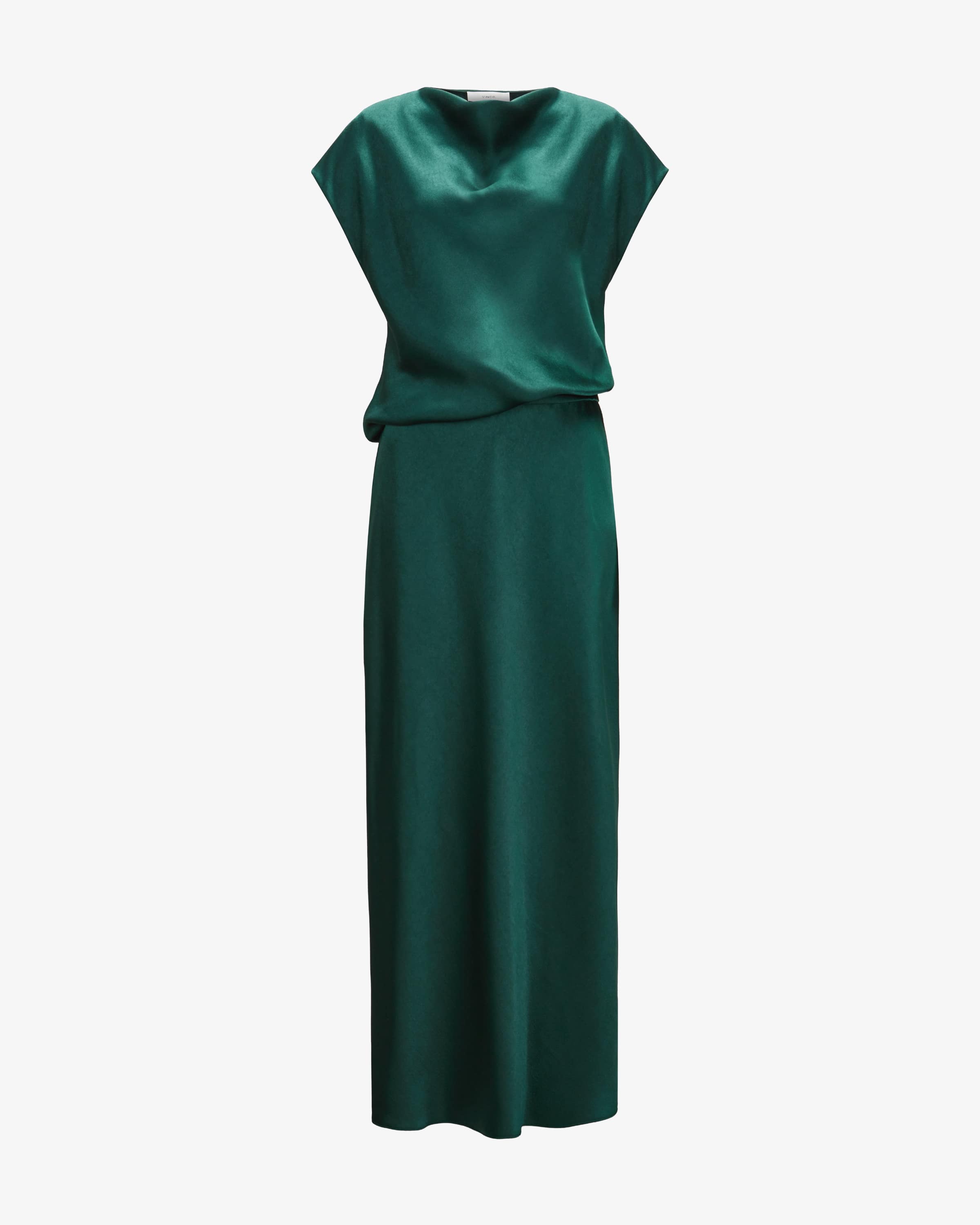 Satinkleid für Damen von Vince in Flaschengrün. Das kalifornische Label steht für relaxed Luxury – edle Basics, weiche Stoffe und klare Schnitte. Dieses Modell in fließender Satin-Aufmachung überzeugt in femininer Silhouette, während die elastische Taille für angenehme Tragemomente sorgt, runden der Wasserfall- Ausschnitt und das changierende Design den Gesamtlook chic ab.