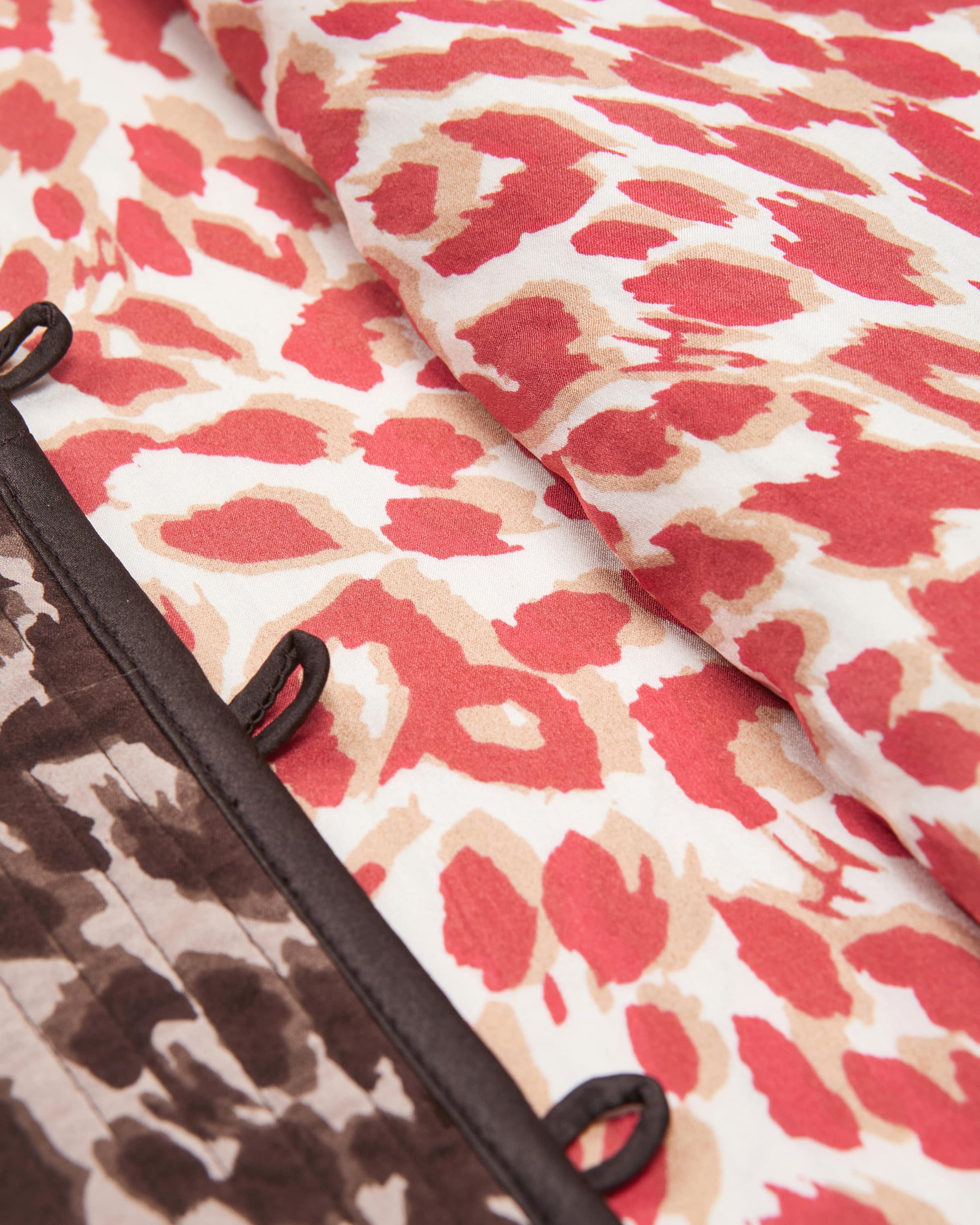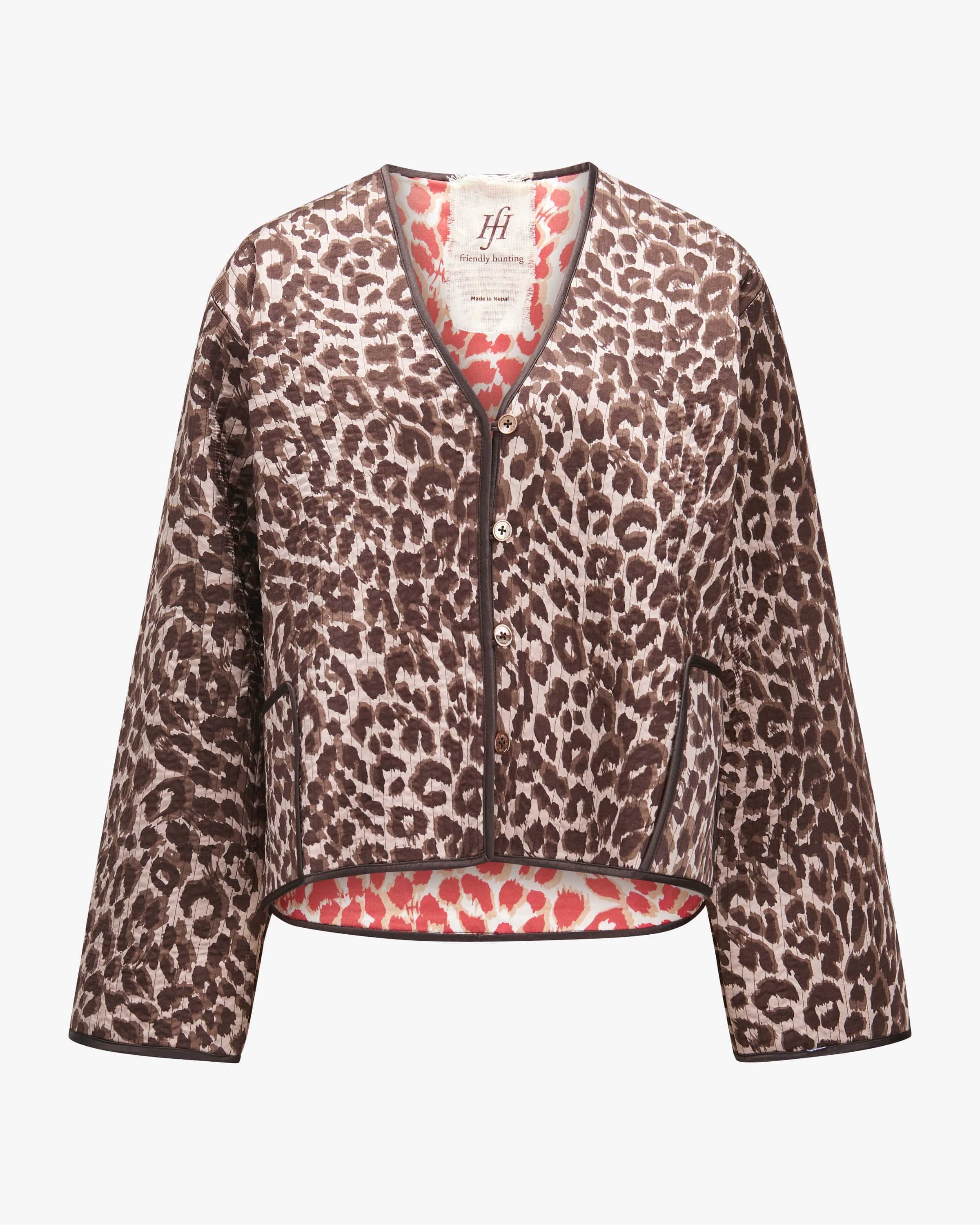 Scea Wendejacke für Damen von Hemisphere in Braun und Taupe. Die deutsche Marke verbindet nachhaltige Materialien und luxuriöse Handarbeit. Das weit geschnittene Modell in leichter Seiden-Qualität begeistert mit praktischer Wende-Funktion, die einen modischen 2-in-1-Look kreiert und so der Garderobe dank des zweifarbigem Leomusters individuell angepasst werden kann.