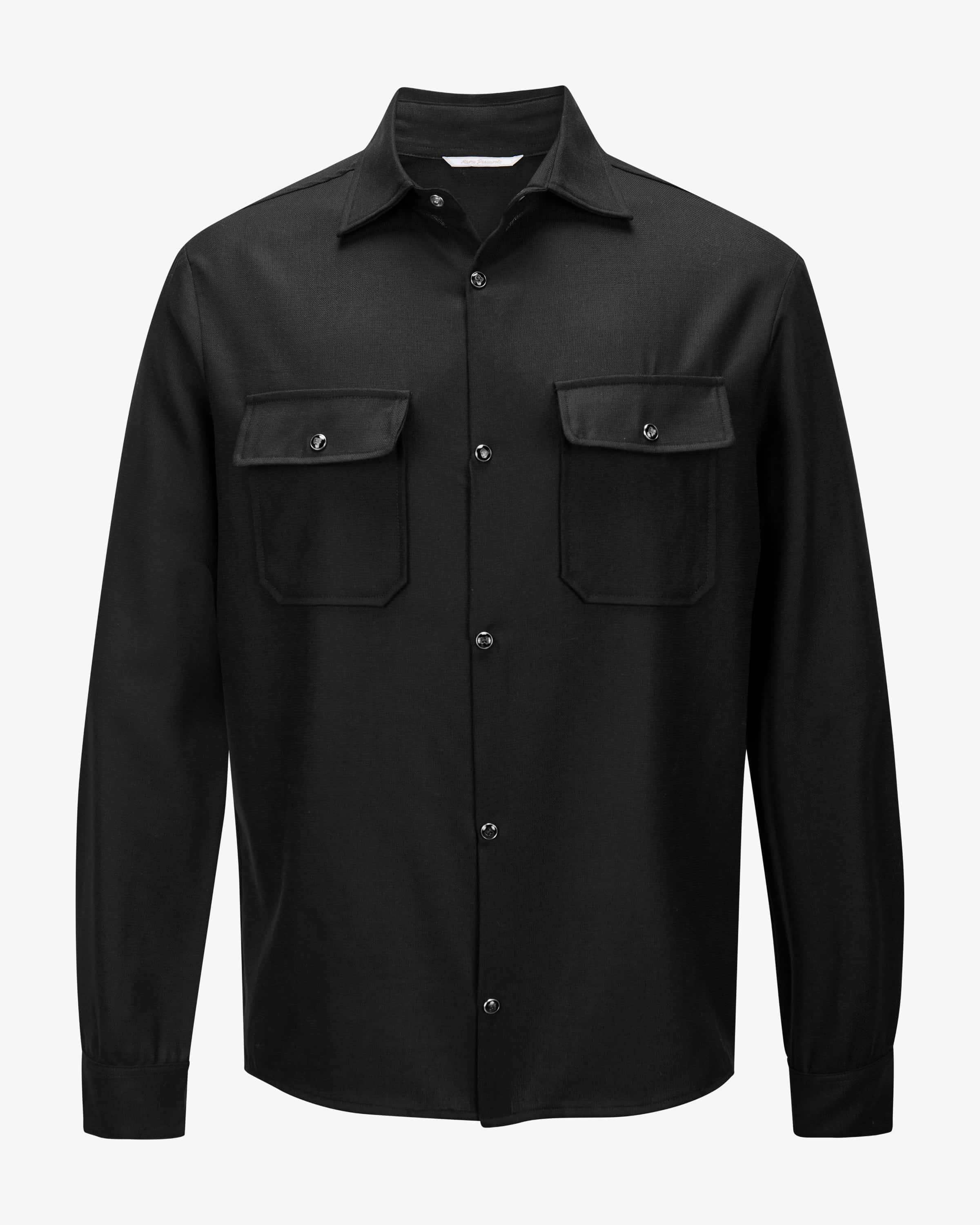 Schurwoll-Overshirt Next für Herren von Marco Pescarolo in Schwarz. Neapolitanische Hosenmanufaktur mit feinem Gespür für Passform und Qualität. Auch dieses Modell überzeugt mit feiner Schurwoll-Qualität während die leichte Haptik einen Casual-Begleiter für vielseitige Looks kreiert. Die klassischen Details und besonderen Druckknöpfe runden den Gesamtlook harmonisch ab.