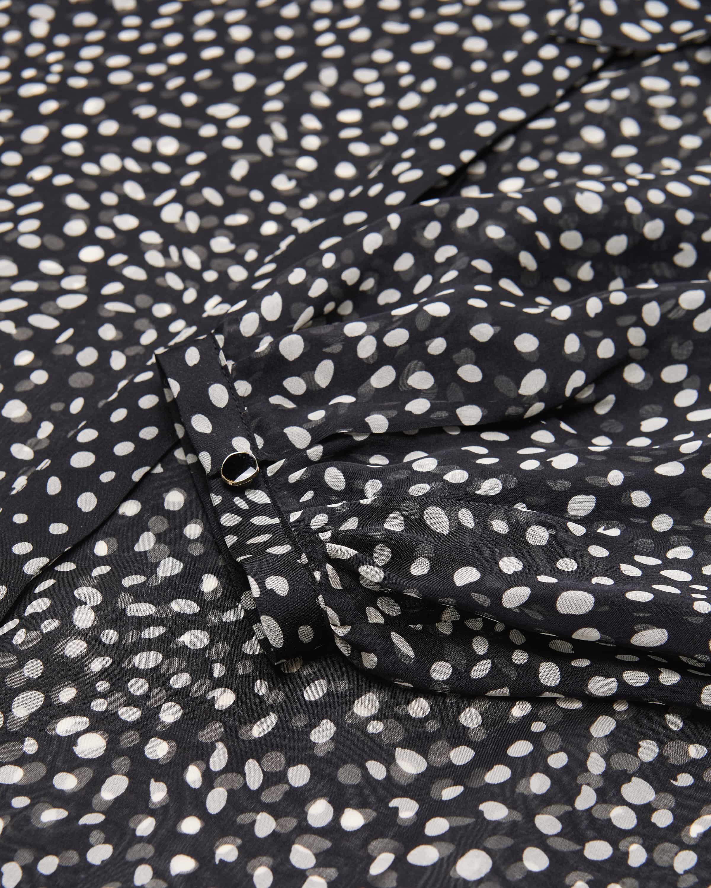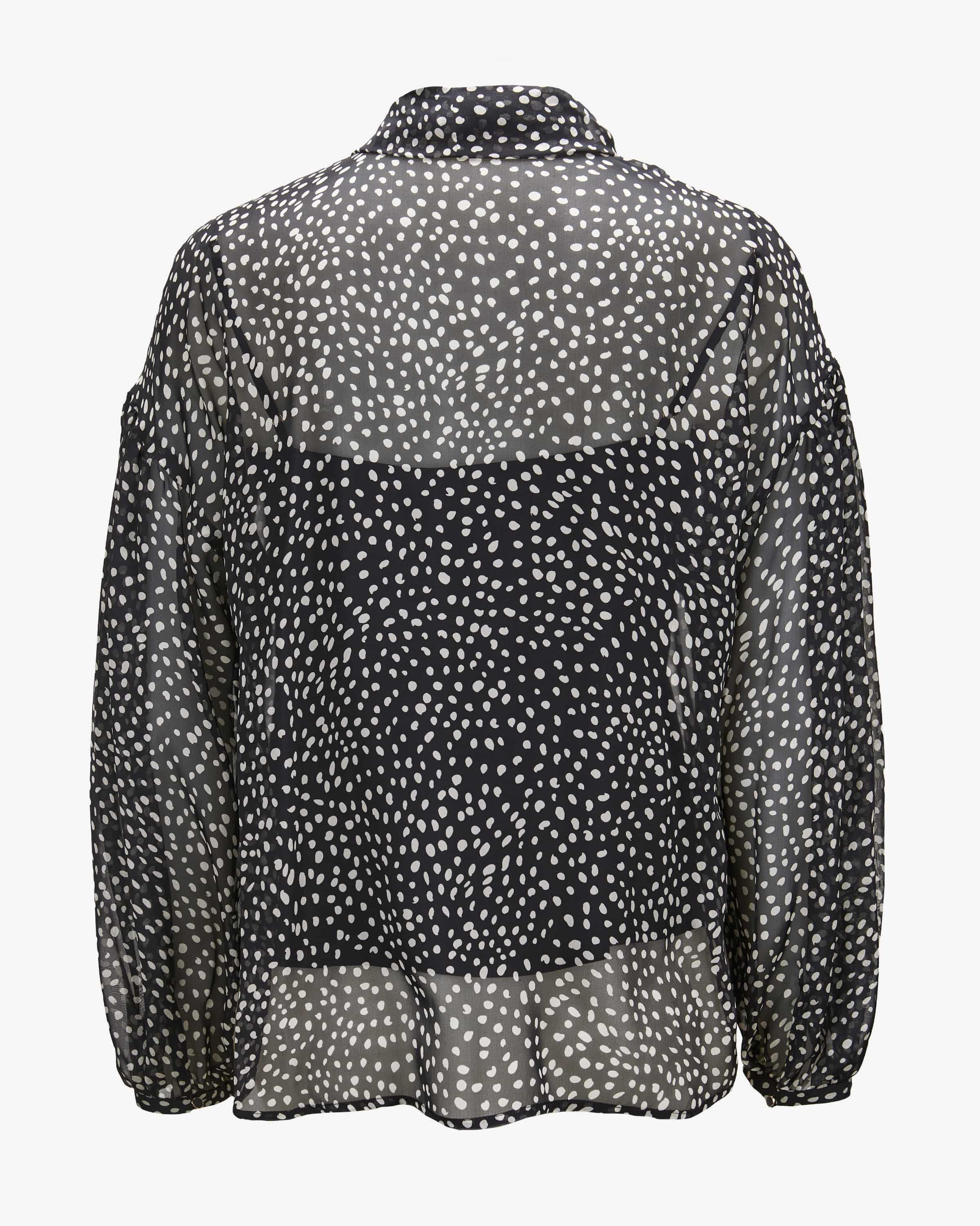Seidenchiffon-Bluse Etere für Damen von Max Mara Studio in Schwarz und Creme. Weiblich, modern, tragbar – Max Maras femininere Linie. Auch dieses Modell begeistert mit fließender Silhouette und semi-transparentem Seiden-Chiffon, während das gepunktete Allover-Muster dem Design einen modernen Look verleiht und die feminine Ausstrahlung unterstreicht.