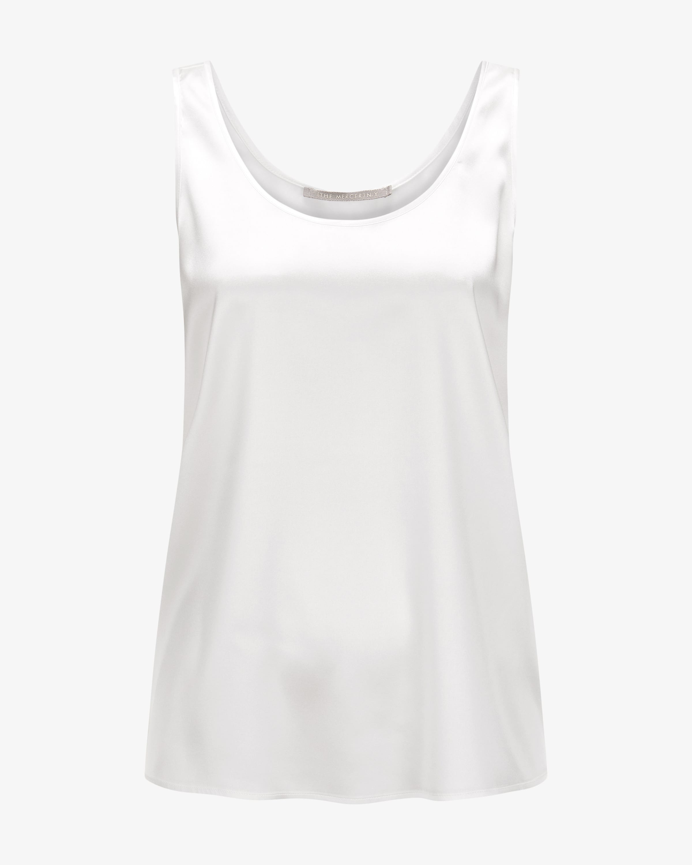 Seidentop für Damen von (The Mercer) N.Y in Ecru. Das Modell präsentiert sich dank der schlichten Aufmachung als vielseitiges Basic, während die elastische Seiden-Qualität eine angenehme Haptik sowie elegante Optik verspricht.