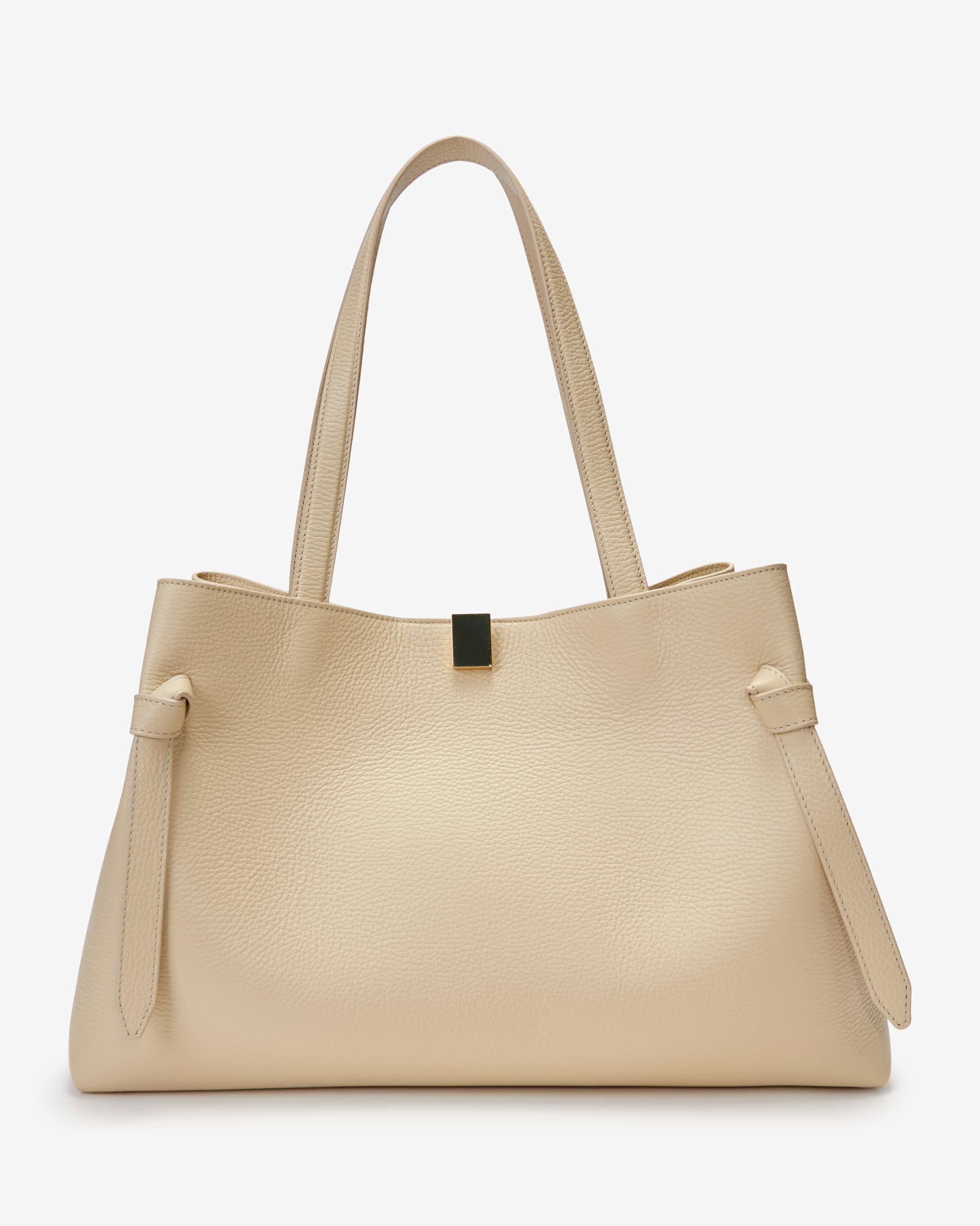 Shopper Gyoza für Damen von Yuzefi in Creme. Yuzefi wurde gegründet, um eine Alternative zur übermäßig kommerzialisierten Modewelt zu bieten. Das Ziel der Marke ist es, ein Gefühl von Ehrlichkeit, Kunstfertigkeit und Verbundenheit zurückzubringen. Die Tasche erweist sich dank der Verwendung von hochwertigem italienischem Rindsleder in genarbter Aufmachung sowie den geknoteten Details als stilvoller Begleiter.