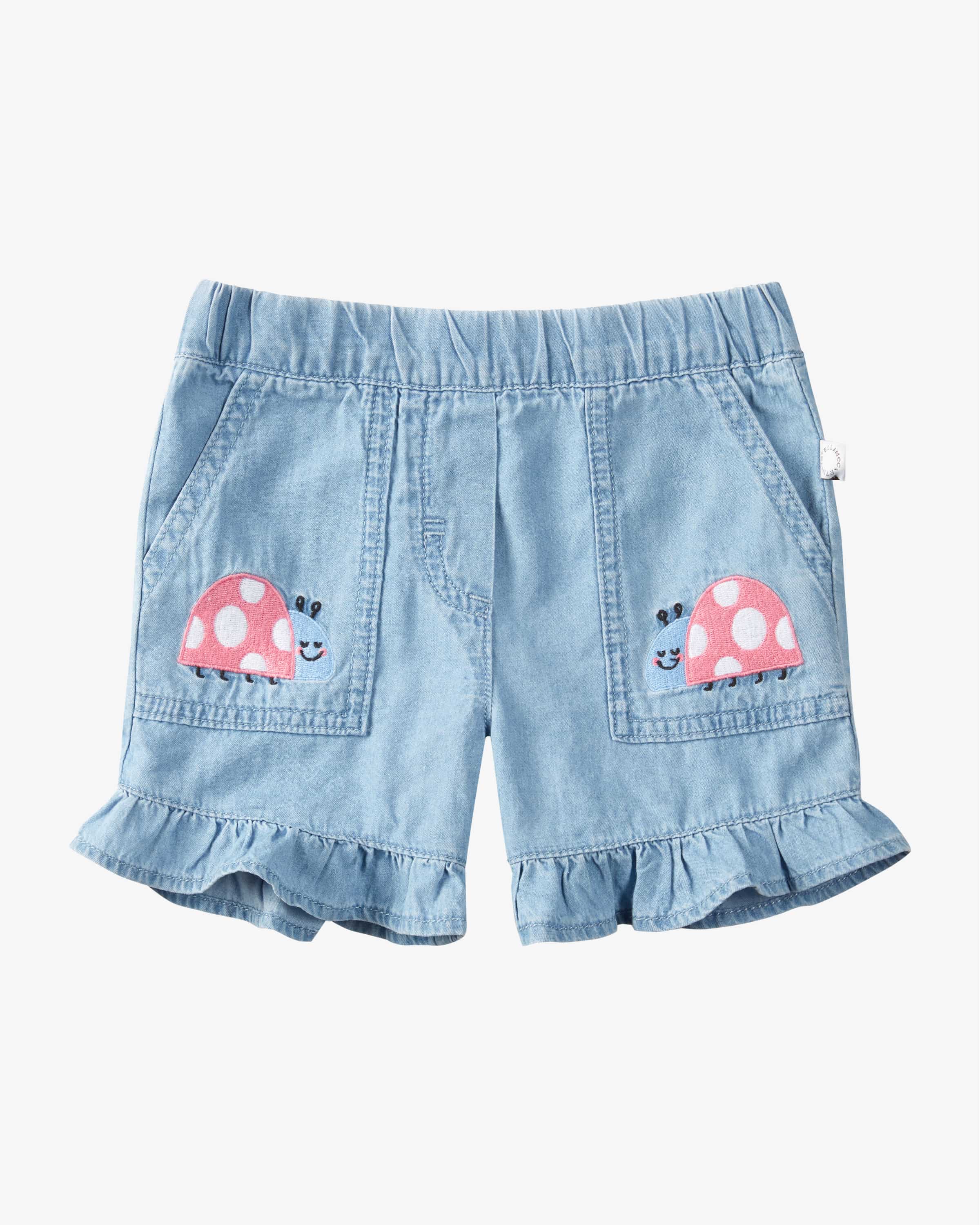 niedlichen Marienkäfer-Stickereien sowie der Volantsaum einen mädchenhaften