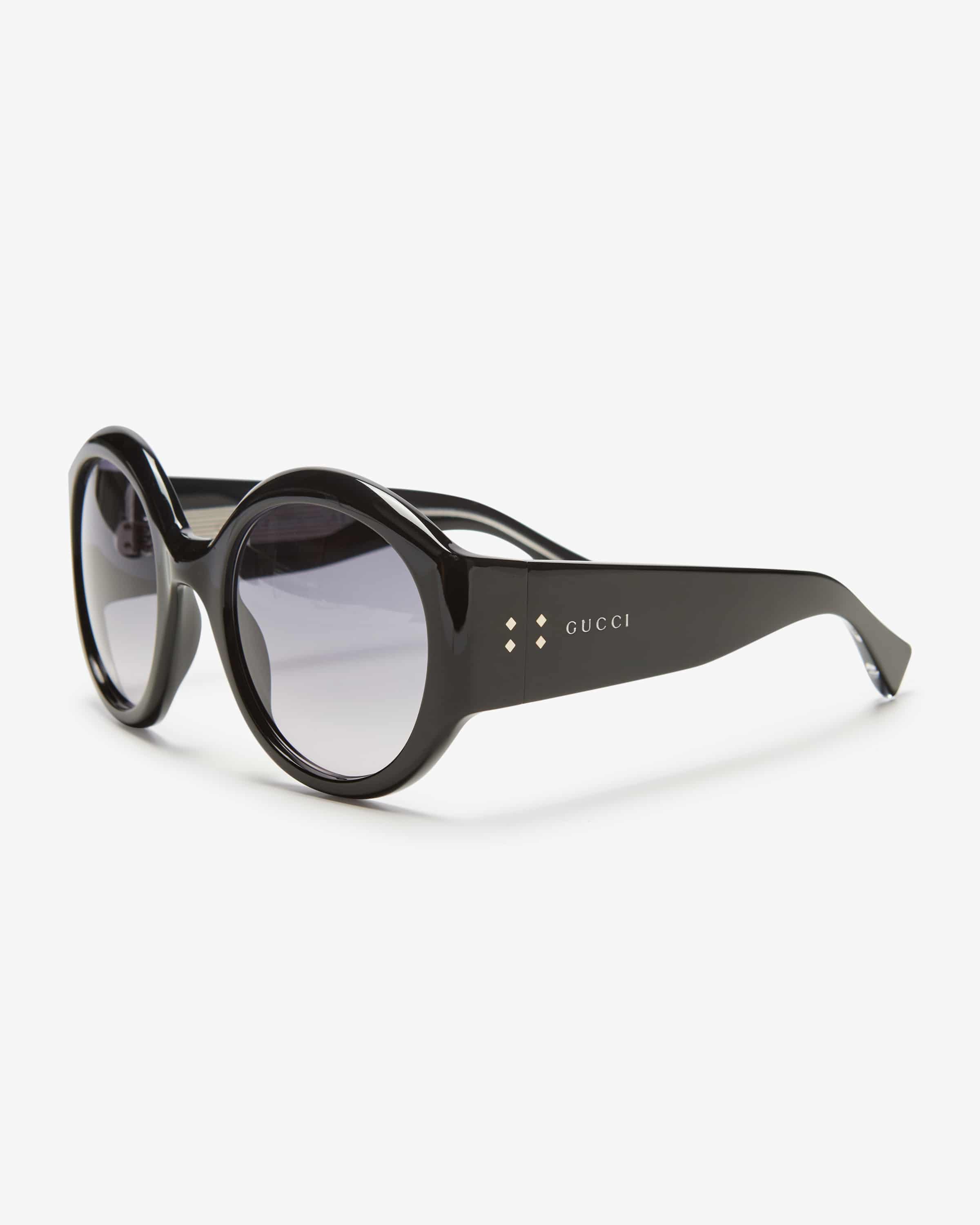 Sonnenbrille für Damen von Gucci Eyewear in Schwarz. Dank der extragroßen, runden Form mit breiten Bügeln überzeugt das Modell als modisches Accessoire, welchem die getönten Gläser sowie charakteristischen Logo-Details den letzten Schliff verleiht.