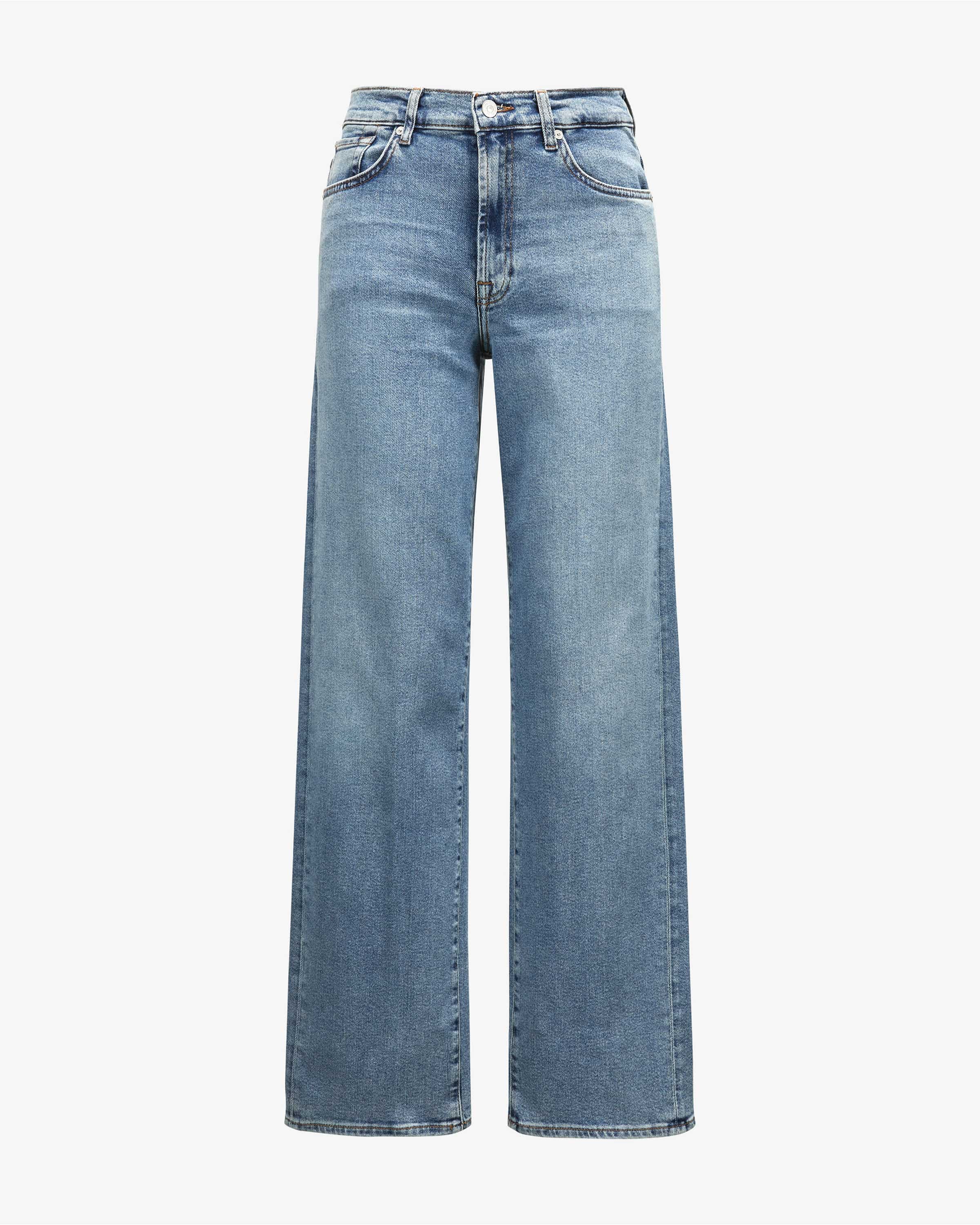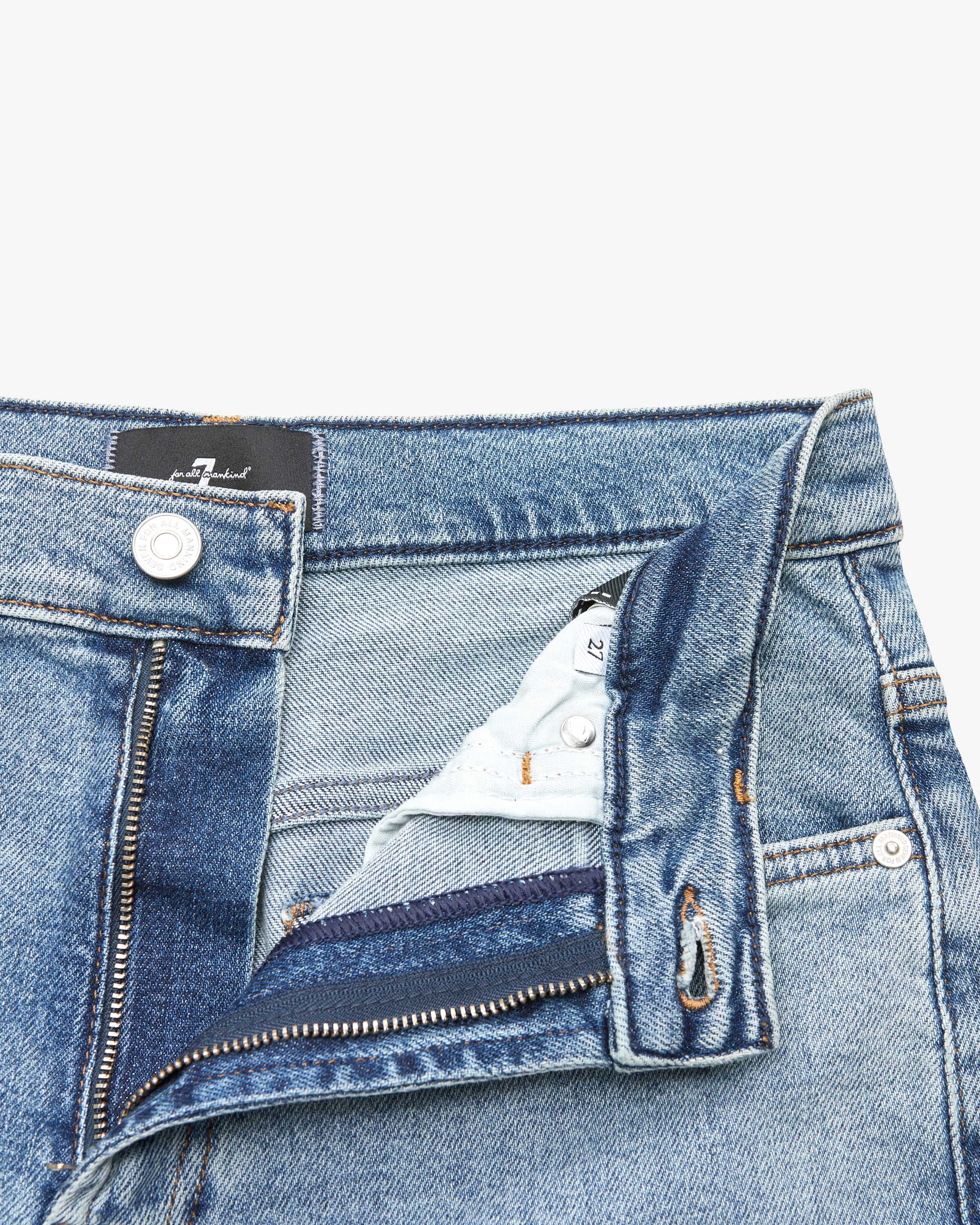 Stovepipe Jeans Straight für Damen von 7 For all All Mankind in Blau. Das kalifornische Label gehört zu den Denim-Pionieren im Premiumsegment – bekannt für innovative Waschungen und perfekte Fits. Auch dieses Modell aus elastischer Baumwolle überzeugt dank modischer Waschung in charakteristische Denim- Aufmachung, während die gerade Passform einen vielseitigen Alltags-Favoriten kreiert.