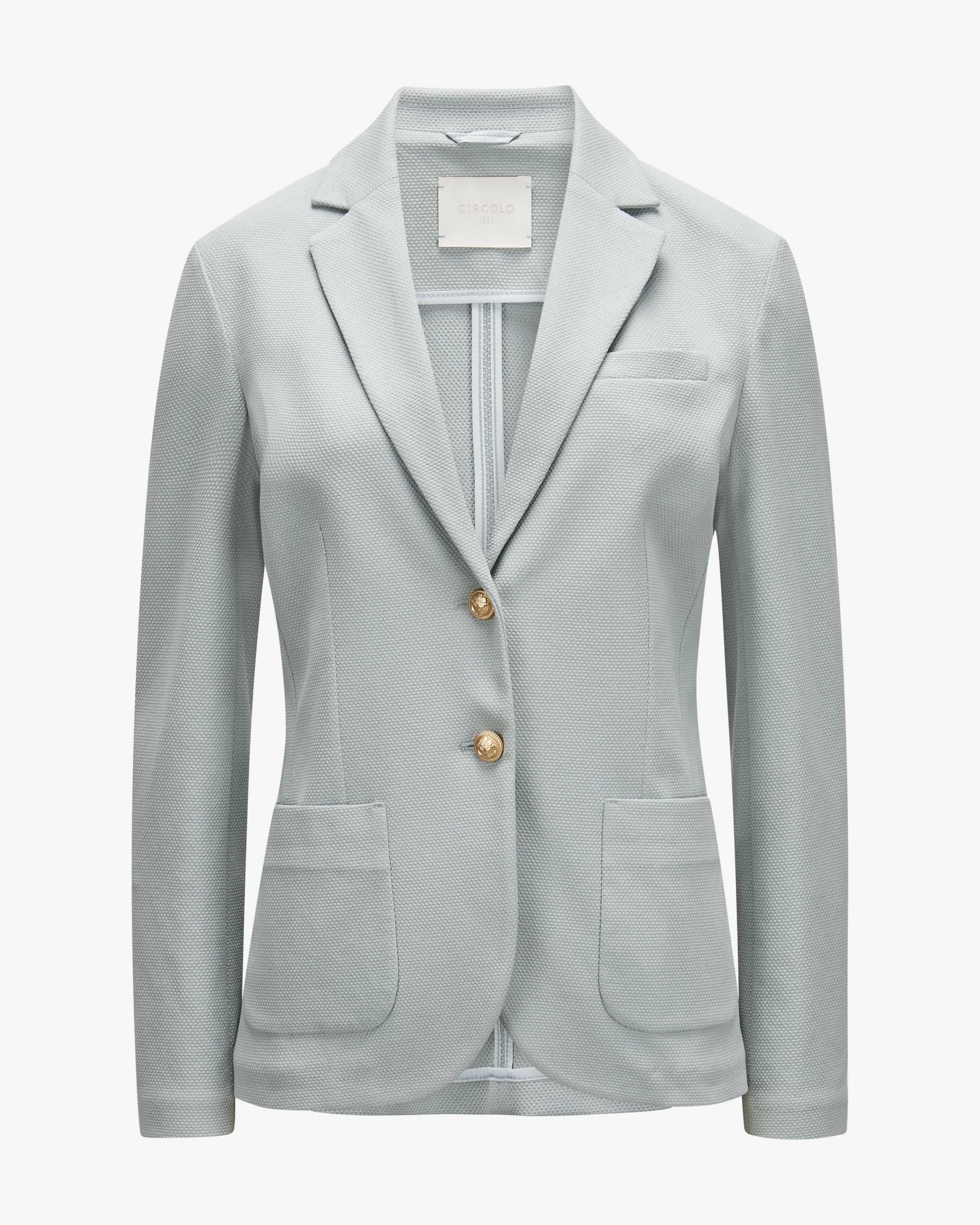 Strickblazer Slim Fit Oxford für Damen von Circolo 1901 in Hellblau. Die Marke steht für komfortable Blazer und Jersey-Jacken mit perfektem Sitz – casual tailored made in Italy. Das ungefütterte Modell präsentiert sich mit feiner 3D- Strickstruktur aus elastischem Baumwoll-Mix, welcher für einen hohen Tragekomfort sorgt. Die schmale Passform kreiert zugleich eine feminine Silhouette, welche durch die goldfarbenen Wappenknöpfe stilvoll abgerundet wird.
