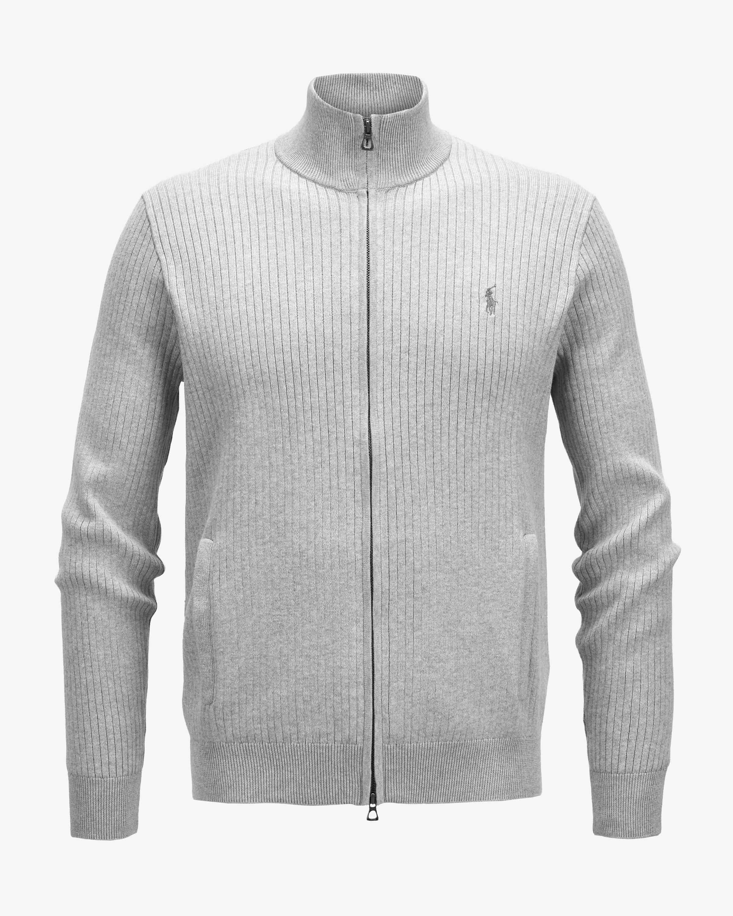Strickjacke für Herren von Polo Ralph Lauren in Hellgrau. Das Modell aus Baumwolle besticht dank der Rippstrick-Qualität mit einem besonders angenehmen Tragegefühl, während das schlichte Design einen vielseitigen Liebling mit maskulinem Charme für Ihren Kleiderschrank kreiert.