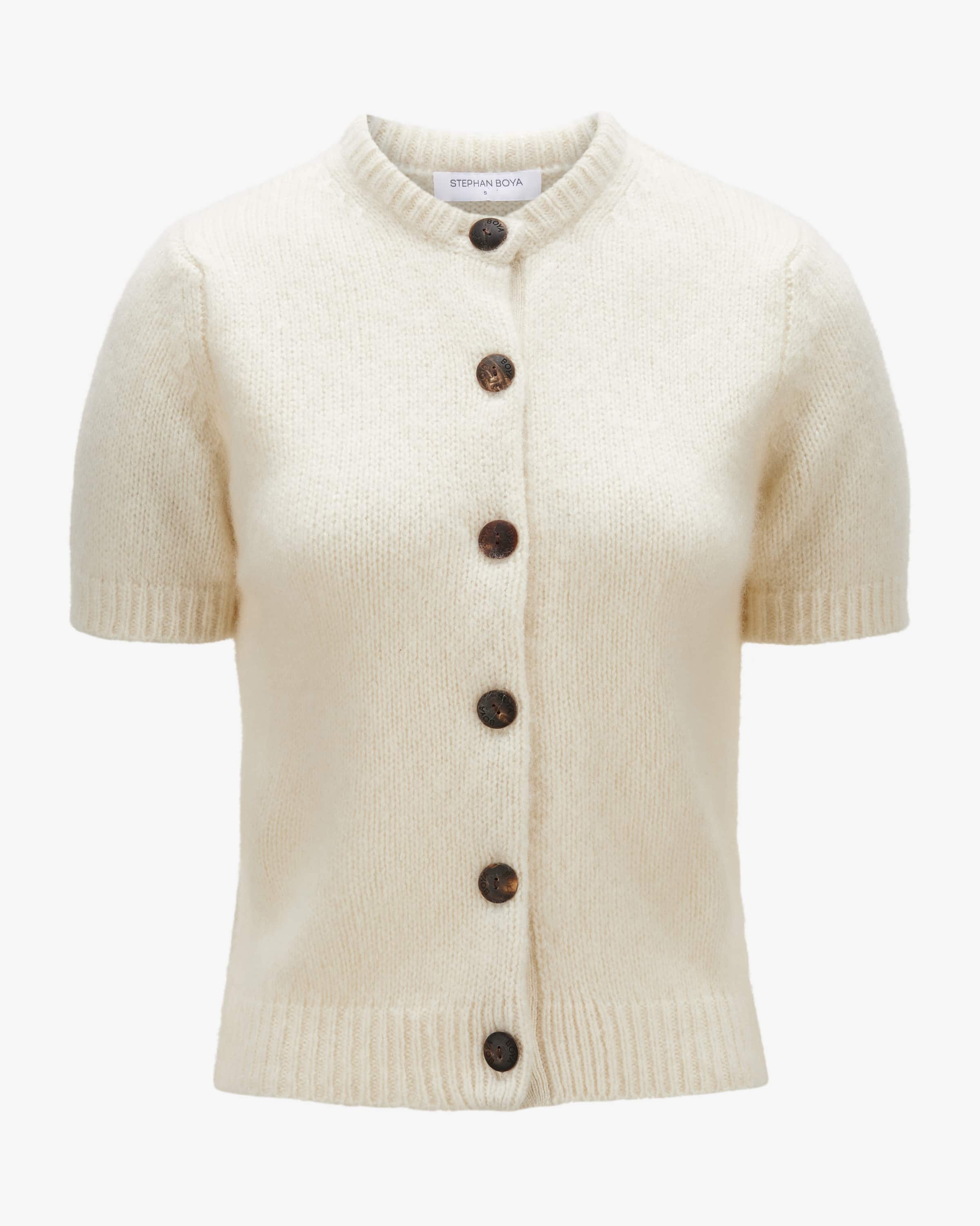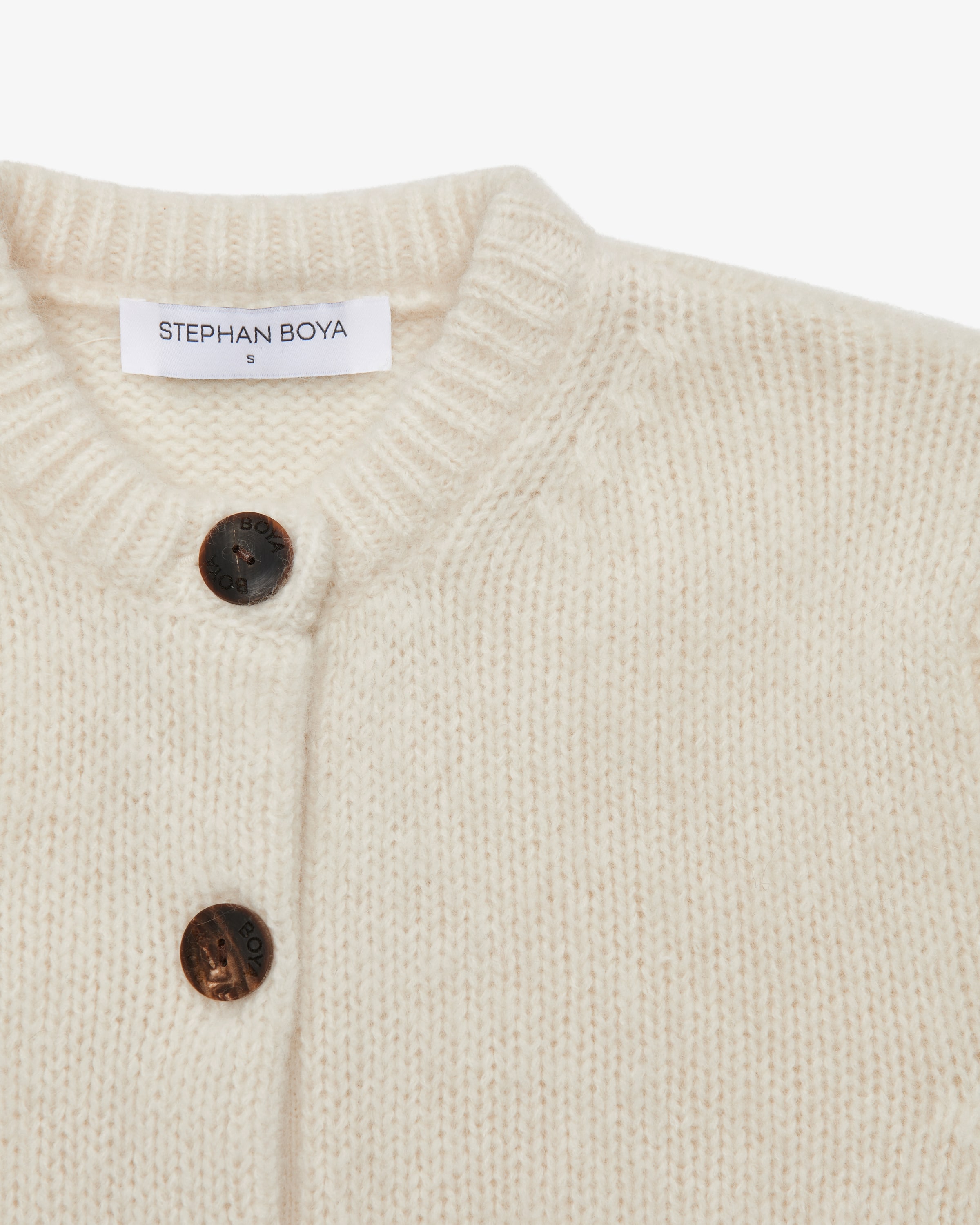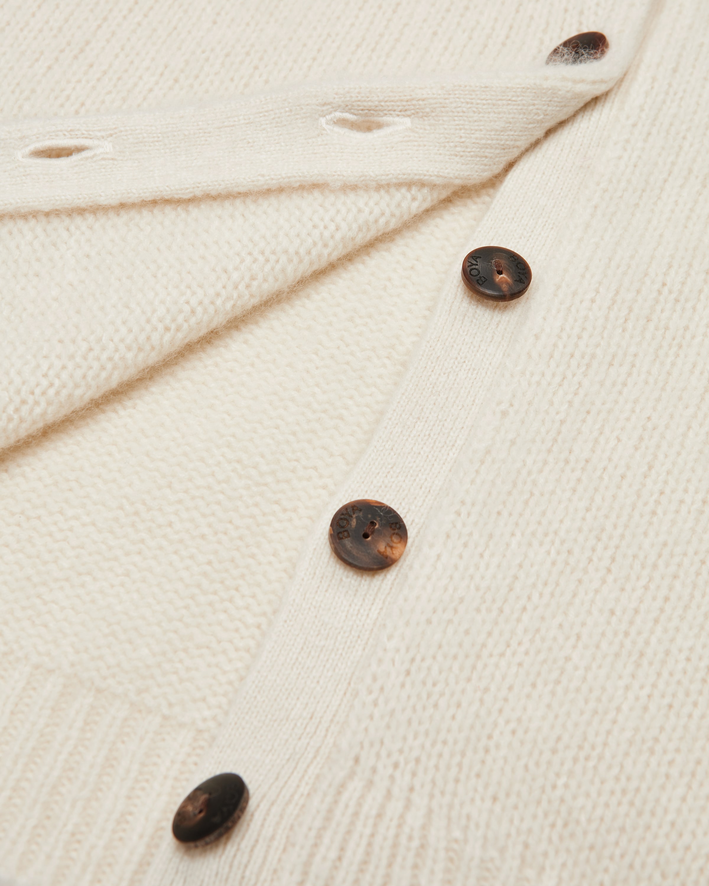 Strickjacke Benicia für Damen von Stephan Boya in Creme. Das Hamburger Label steht für luxuriöse Kaschmirteile in puristischer Optik – stilvoll, reduziert, hochwertig. Dank der hochwertigen Cashmere-Wolle in Brushed-Aufmachung überzeugt dieses Modell mit einer besonders weichen Haptik und modernen Optik. Zugleich verleihen die Logo-Knöpfe eine labeltypische Note.