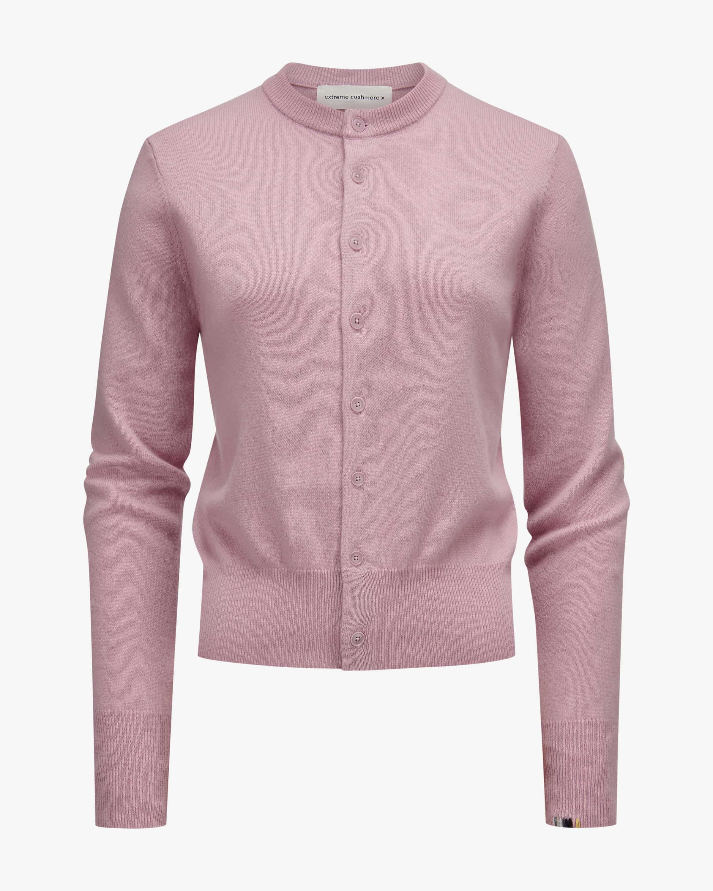 Cashmere-Strickjacke für Damen von Extreme Cashmere in Altrosa. Das Modell aus hochwertiger Cashmere-Qualität punktet mit einer angenehm weichen Haptik, während das schlichte Design einen vielseitigen Alltagsbegleiter schafft.