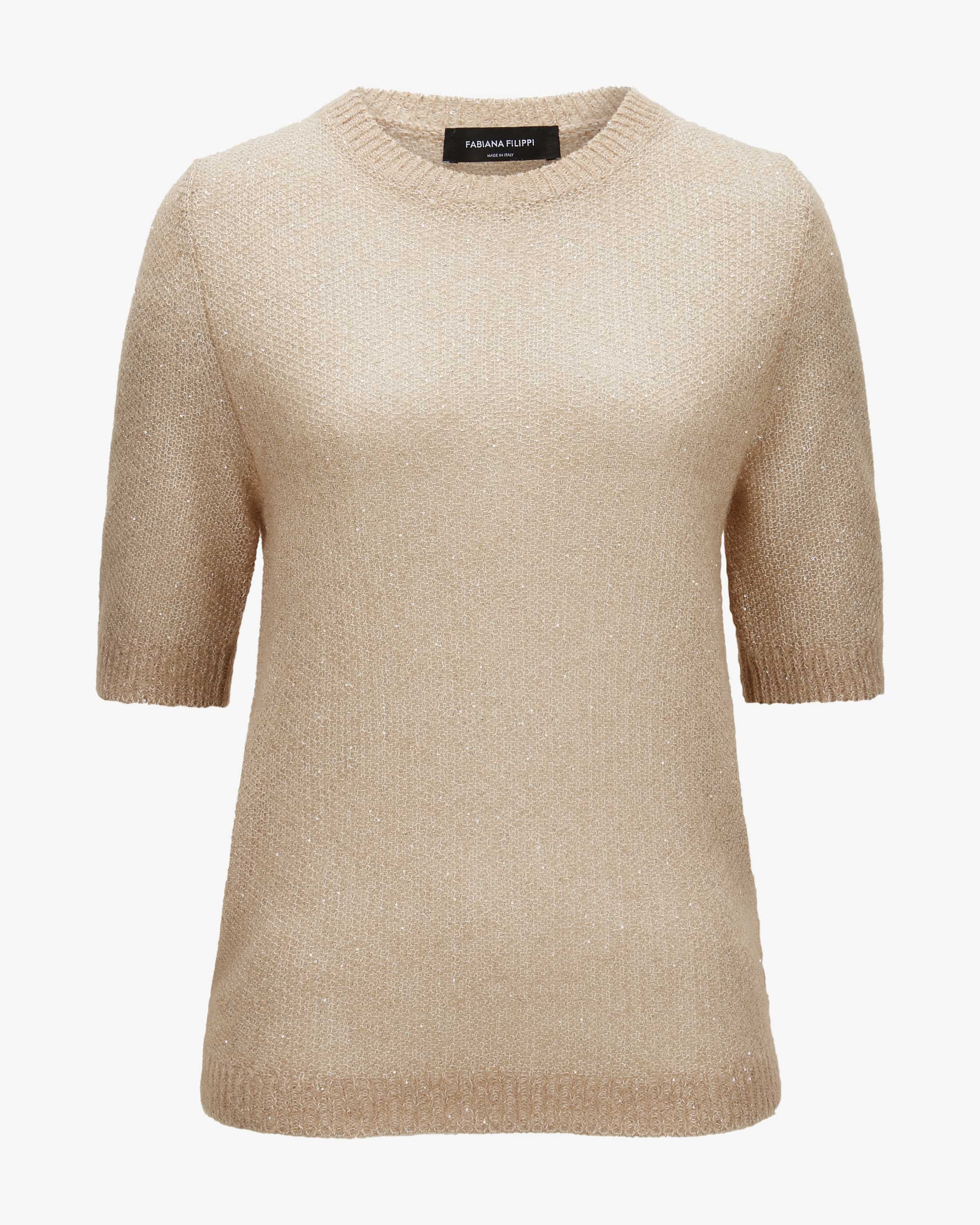 Strickshirt für Damen von Fabiana Filippi in Camel. Die italienische Marke steht für moderne Eleganz, hochwertige Materialien und dezente Farbwelten. Während das grobmaschige, leichte Strick-Design mit Mohair- und Alpakawoll- Anteil sowohl haptisch als auch optisch überzeugt, sorgen die zarten Pailletten- Details für einen femininen Touch.