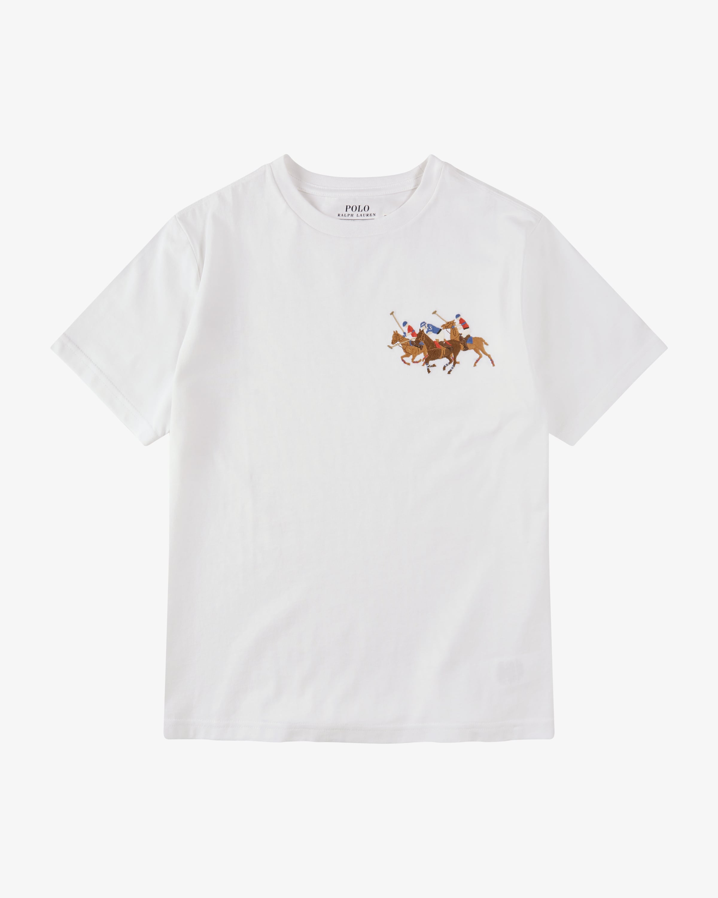T-Shirt für Jungen von Polo Ralph Lauren in Weiß. Dank der klassischen Jersey- Qualität besticht das Modell mit angenehm-leichtem Tragegefühl, während die originellen Poloreiter-Stickereien einen labeltypischen Charakter verleihen.
