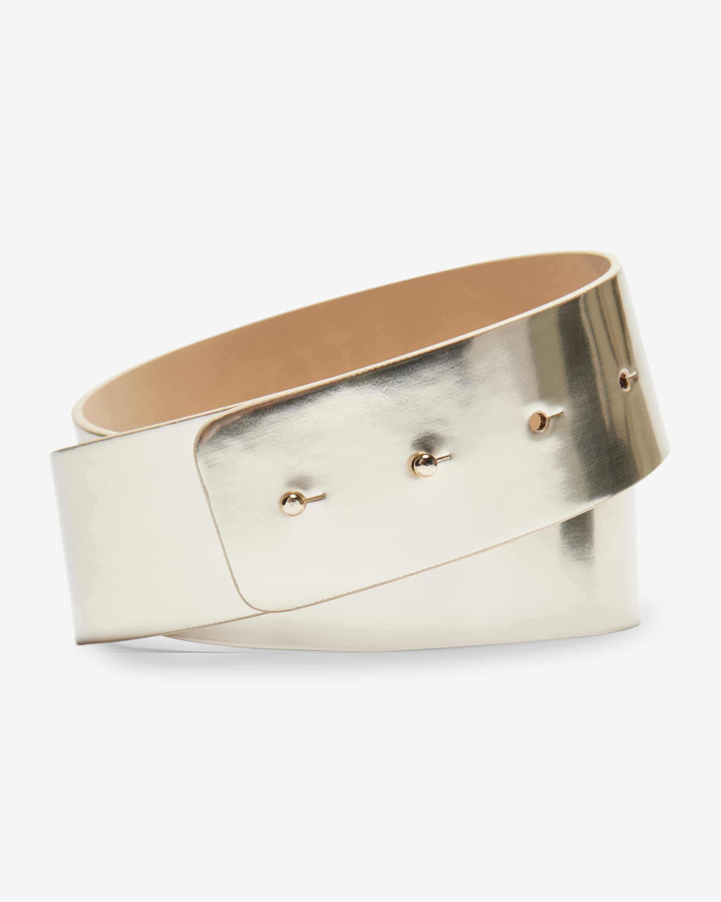 Taillengürtel für Damen von Kinga Mathe in Gold. Das Modell präsentiert sich in changierender Aufmachung und cleaner Optik – Ein perfektes Accessoire für ihren Trachtenlook.