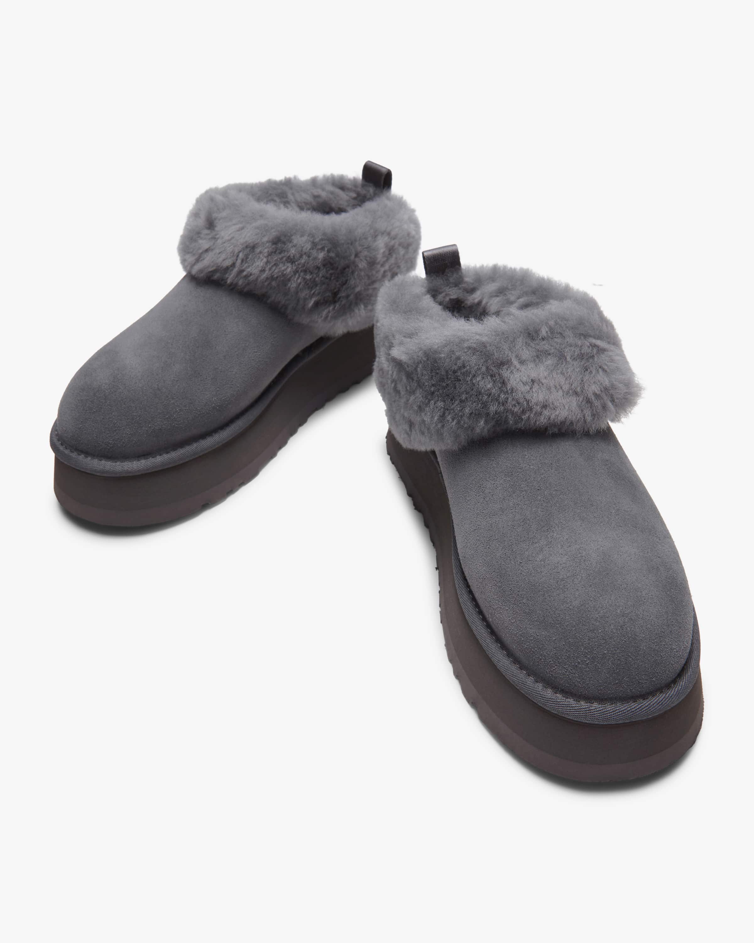 Tazzelle Pantoletten für Damen von Ugg in Blaugrau. Das Modell des Kult-Labels überzeugt dank des weichen Lammfell-Futters mit hohem Wohlfühl- Faktor, während das hochwertige Veloursleder ein zeitloses Design kreiert. Zusätzlich bietet die sowohl robuste als auch dämpfende Plateausohle extra Komfort.