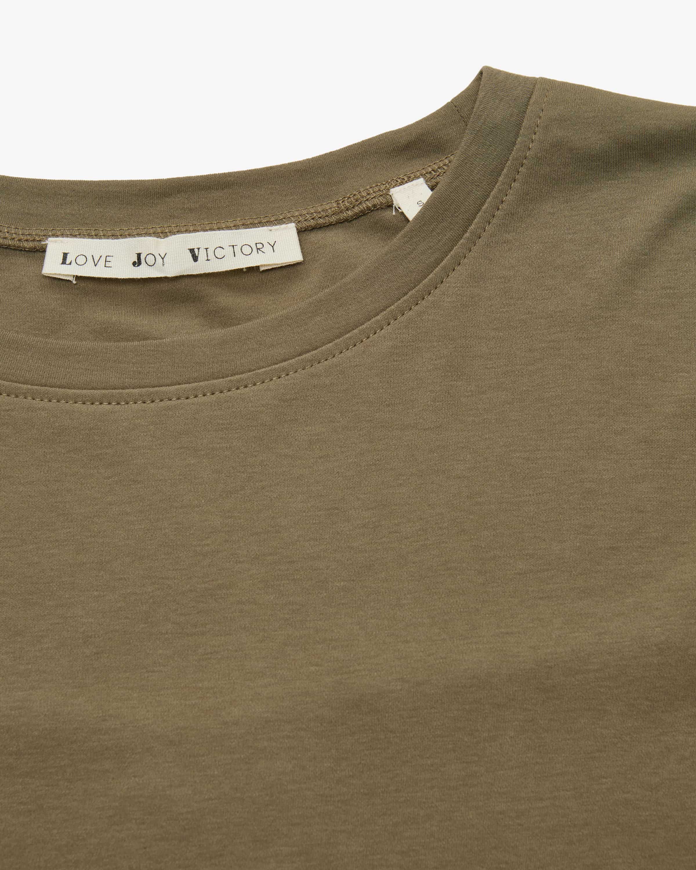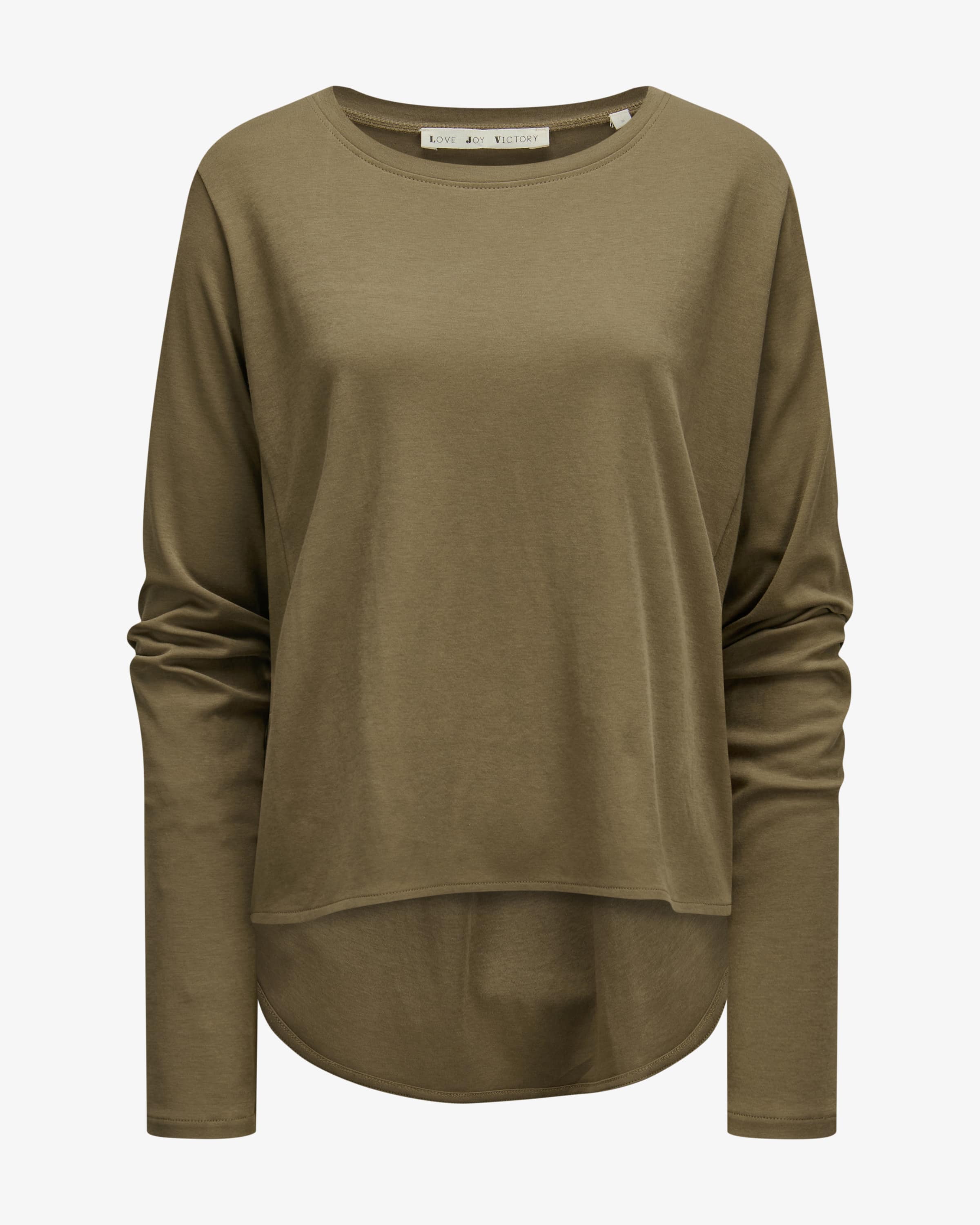 Tenja Sweatshirt für Damen von Love Joy Victory in Oliv. Das Modell punktet dank der hochwertigen Bio-Baumwolle mit einer angenehmen Haptik, während das schlichte Design durch akzentuierende Logo-Details abgerundet wird.