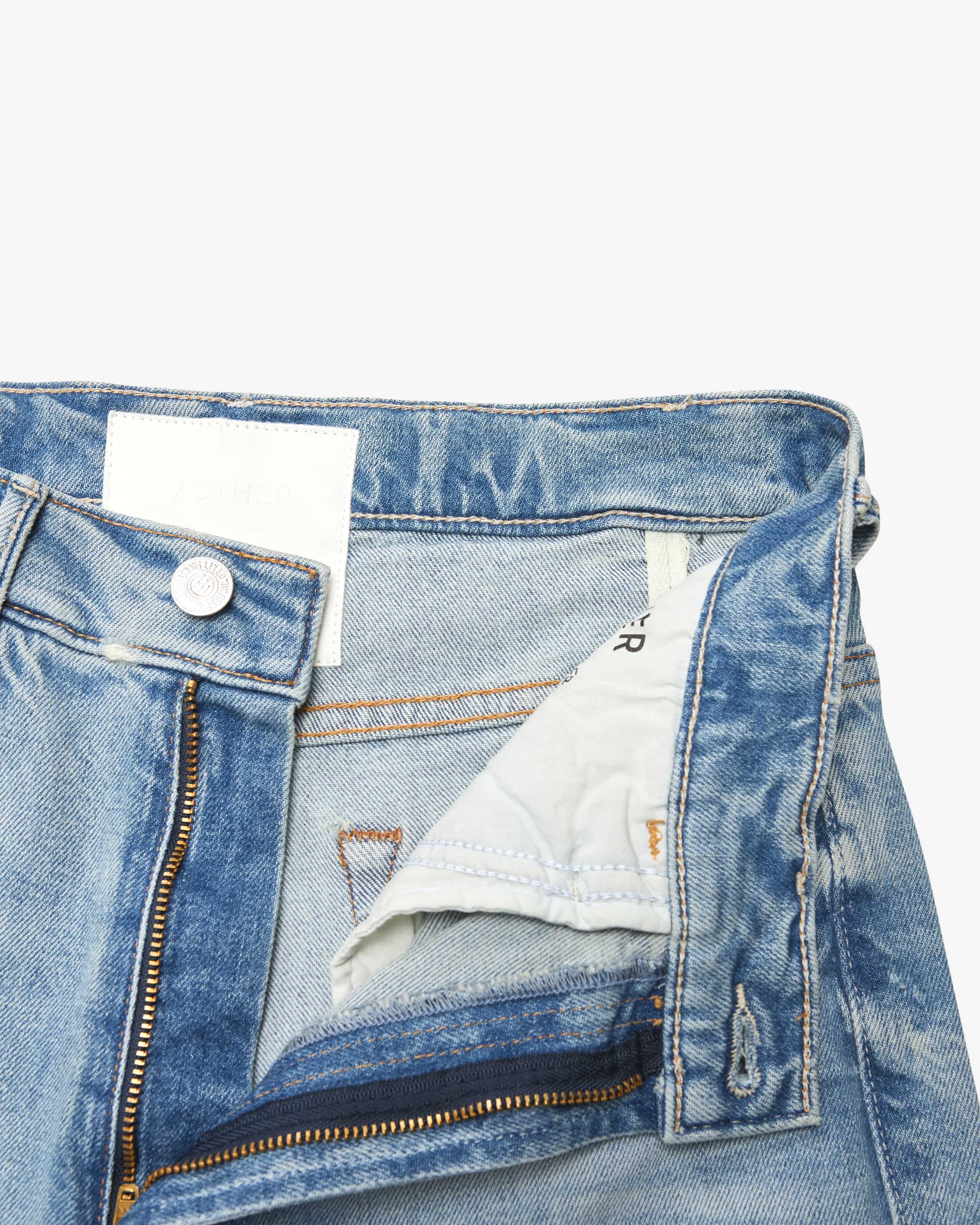 The Hustler Roller Sneak Jeans für Damen von Mother in Hellblau. Das Label steht