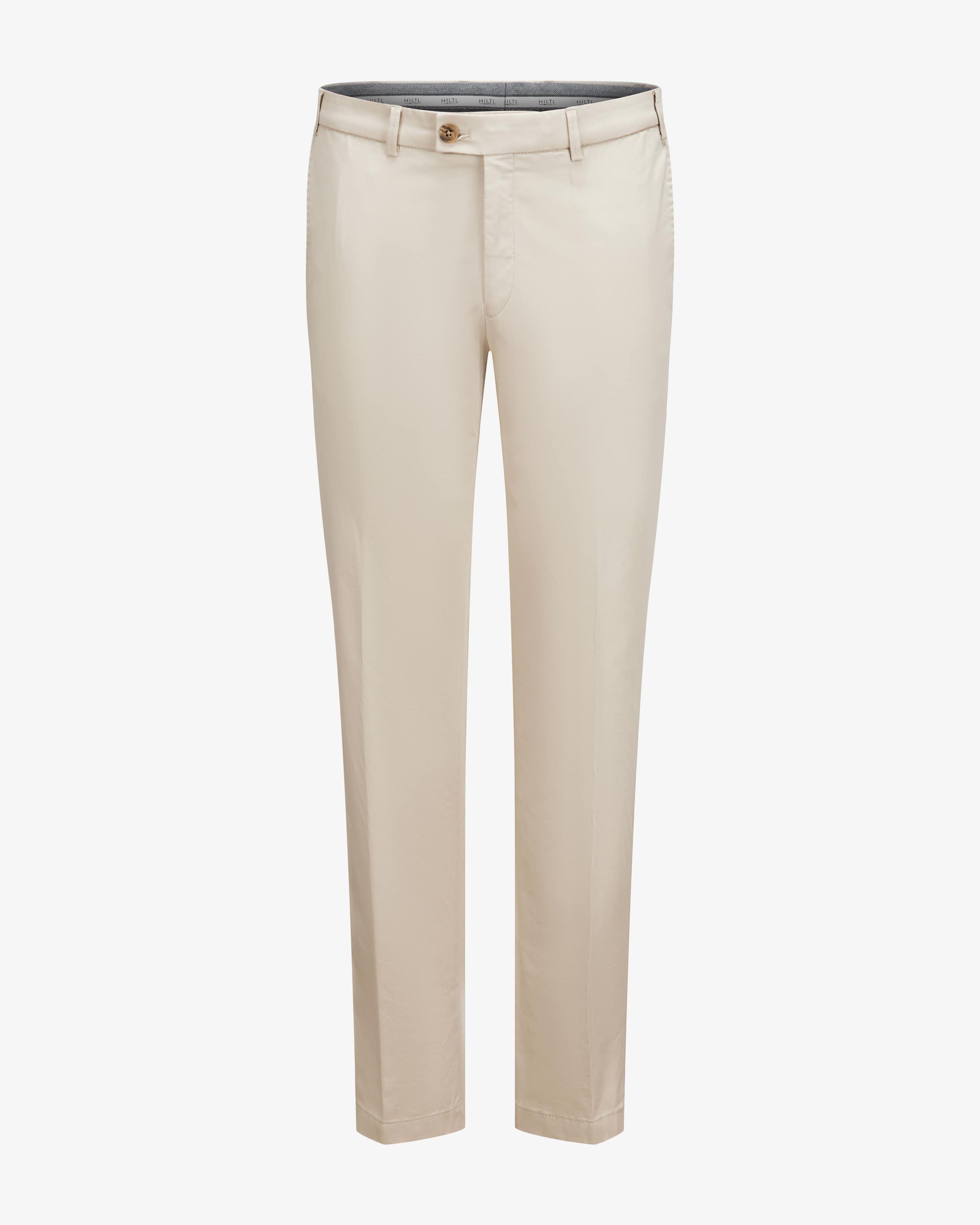 Tilo Chino für Herren von Hiltl in Sand. Das Modell in klassischer Aufmachung überzeugt mit angenehmen Material-Mix der für besondere Tragemomente sorgt, während klassische Details und die dezent changierende Optik einen maskulinen Begleiter für vielseitige Styles schaffen.