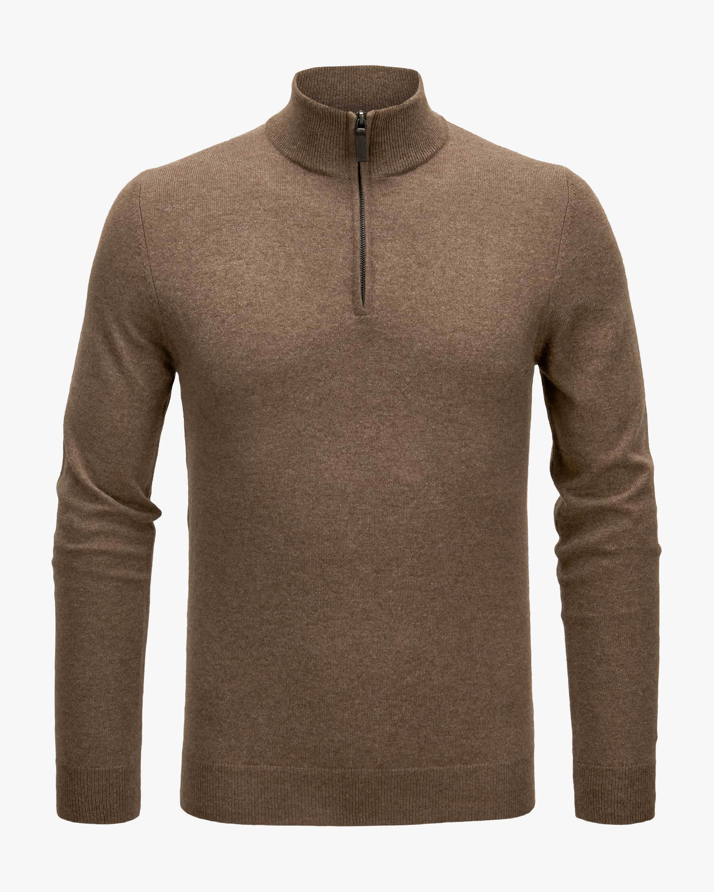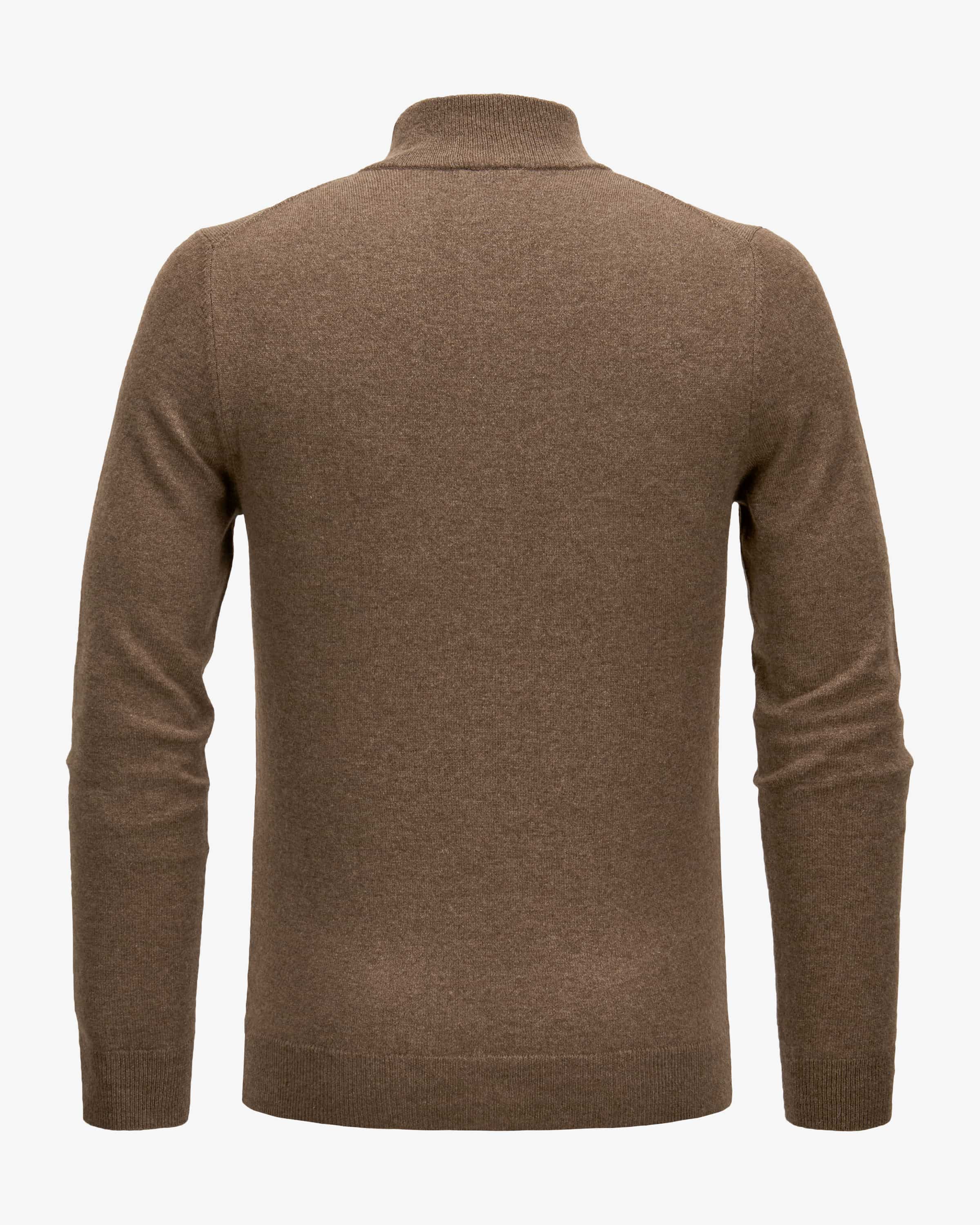 Cashmere-Troyer für Herren von LODENFREY in Braun. Gefertigt aus hochwertiger Cashmere-Qualität besticht das Modell mit weichem Griff, während der Troyer-Kragen dem Basic einen modischen Twist verleiht.
