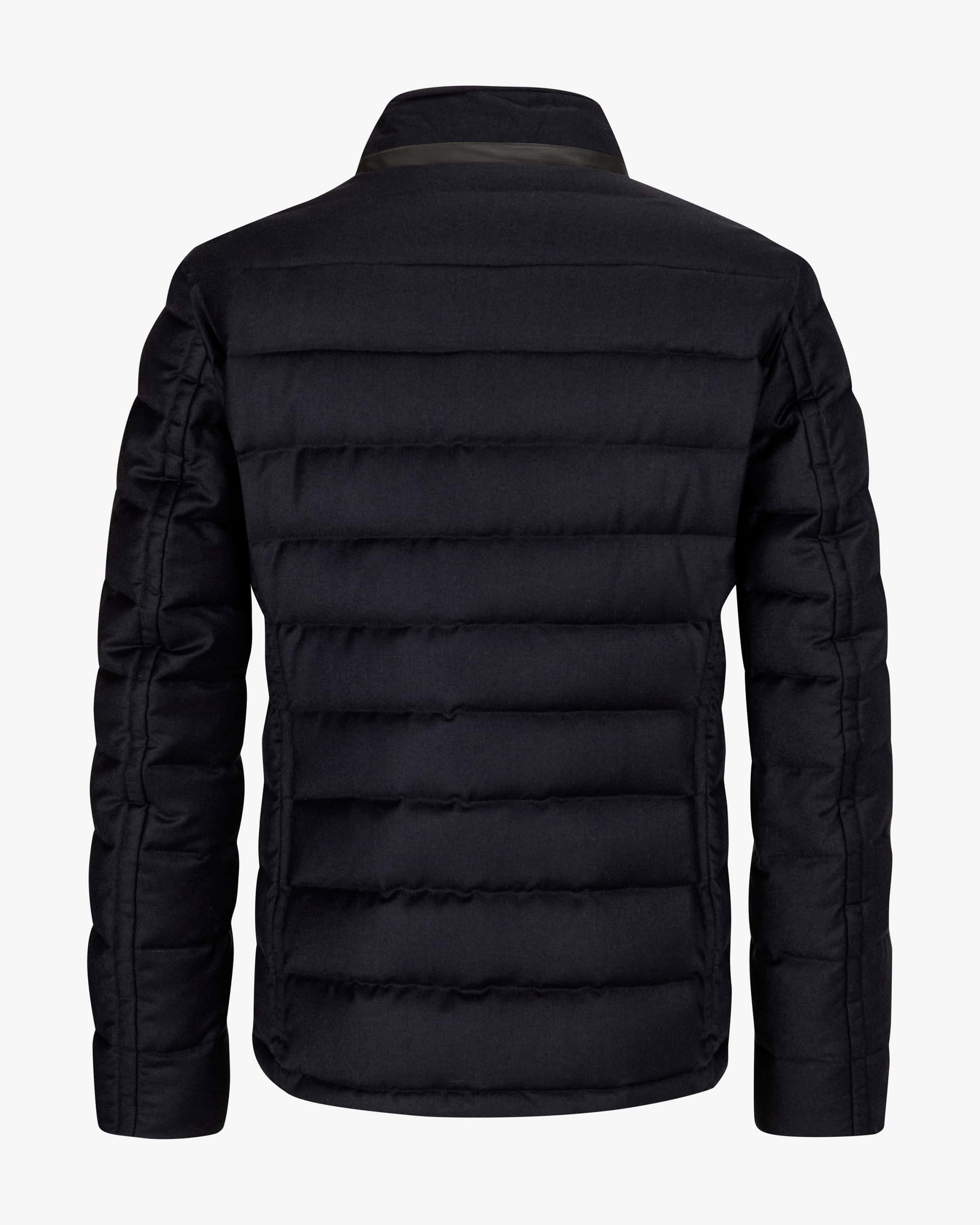 Zayn-L Daunenjacke für Herren von Moorer in Navy. Das Modell aus hochwertigem Schurwoll-Cashmere-Mix begeistert dank hochwertiger Daunen-Füllung mit wärmeisolierender Funktion. Leder-Details am Kragen, eine Logo-Applikation als auch das stilvolle Steppmuster verleihen dem Gesamtbild den letzten Schliff