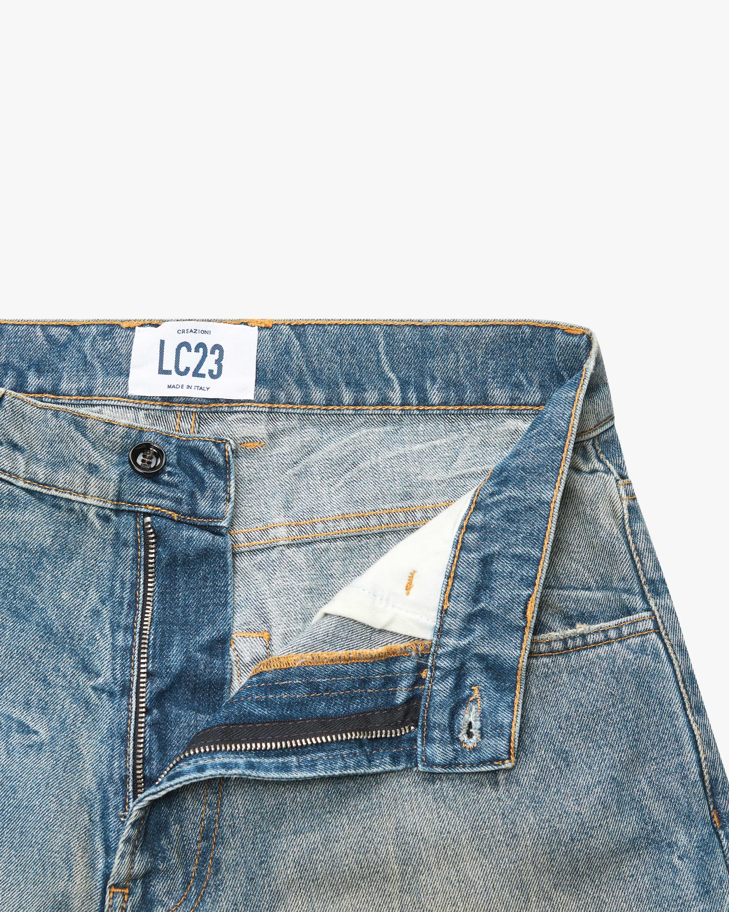 Jeans for men from LC23 in blue. This model in robust cotton fabric with a used look and subtle destroyed accents, while the modern fit skilfully fit skilfully completes the overall look.