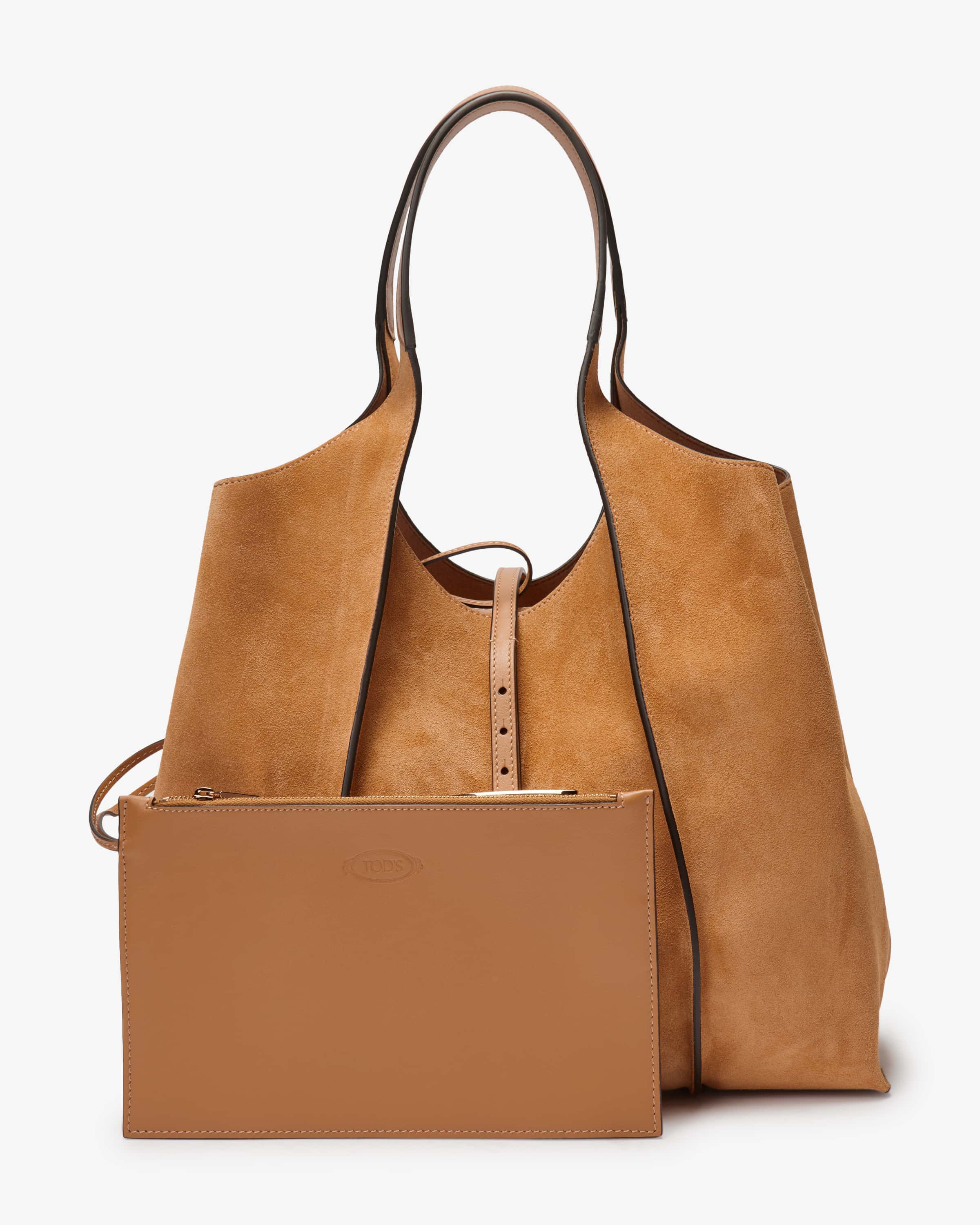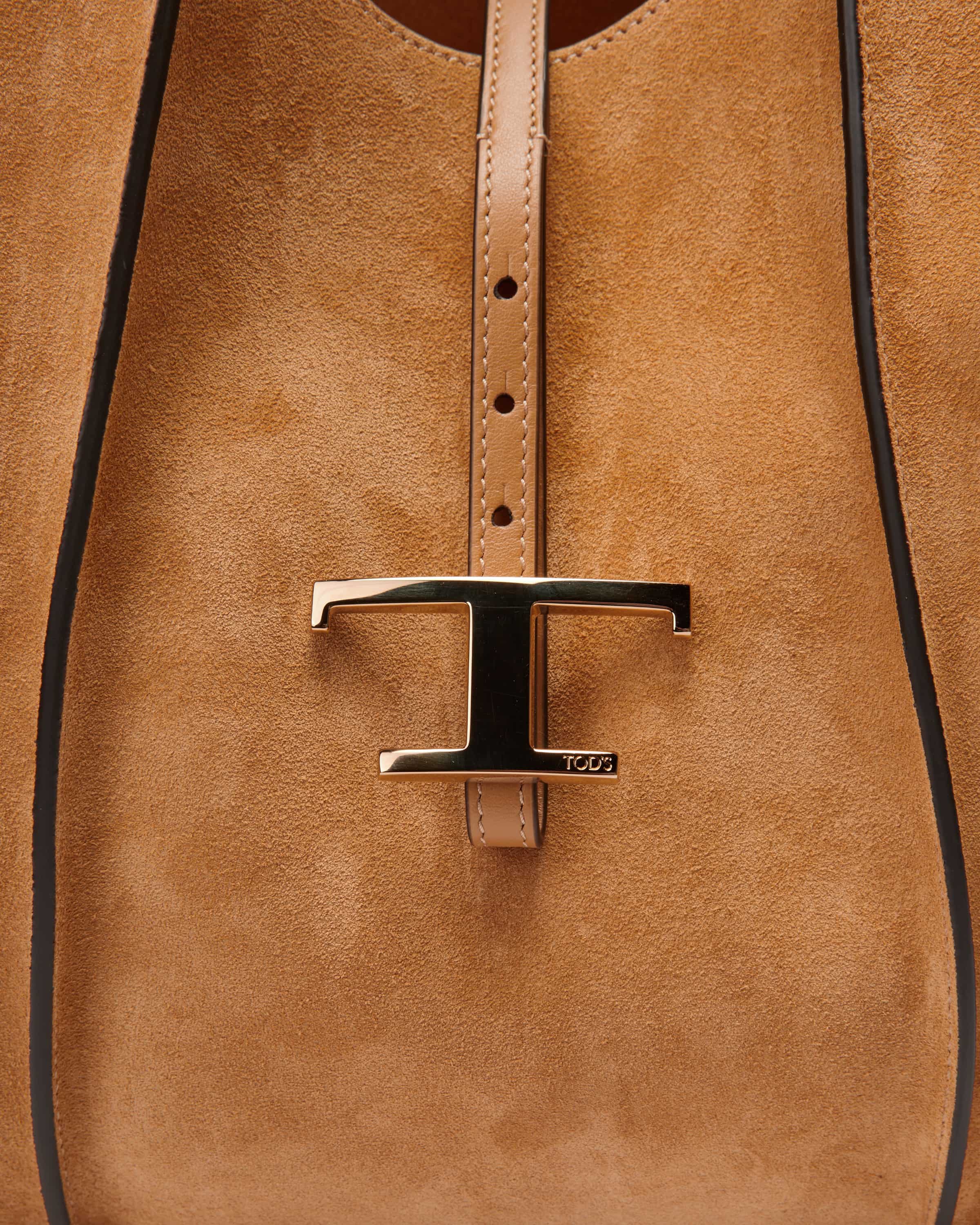 T Timeless shopper for women by Tod's in camel. The model made from high-quality grained leather with the iconic embossed T Timeless logo and metal metal tag in understated elegance, while the spacious main compartment and the removable removable toiletry bag offers enough storage space for all your everyday essentials.