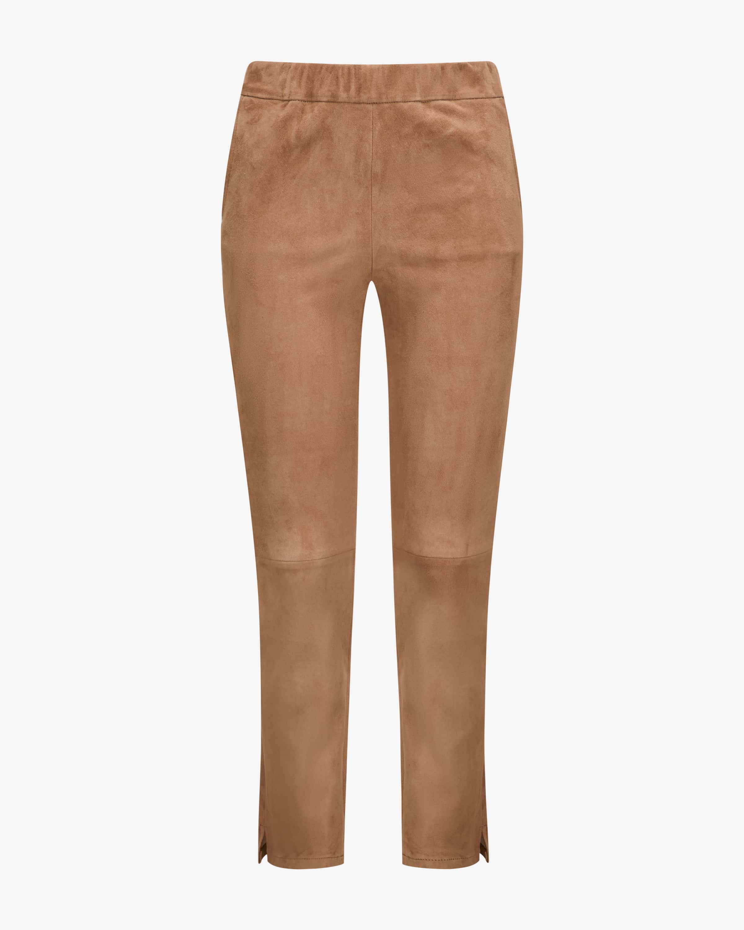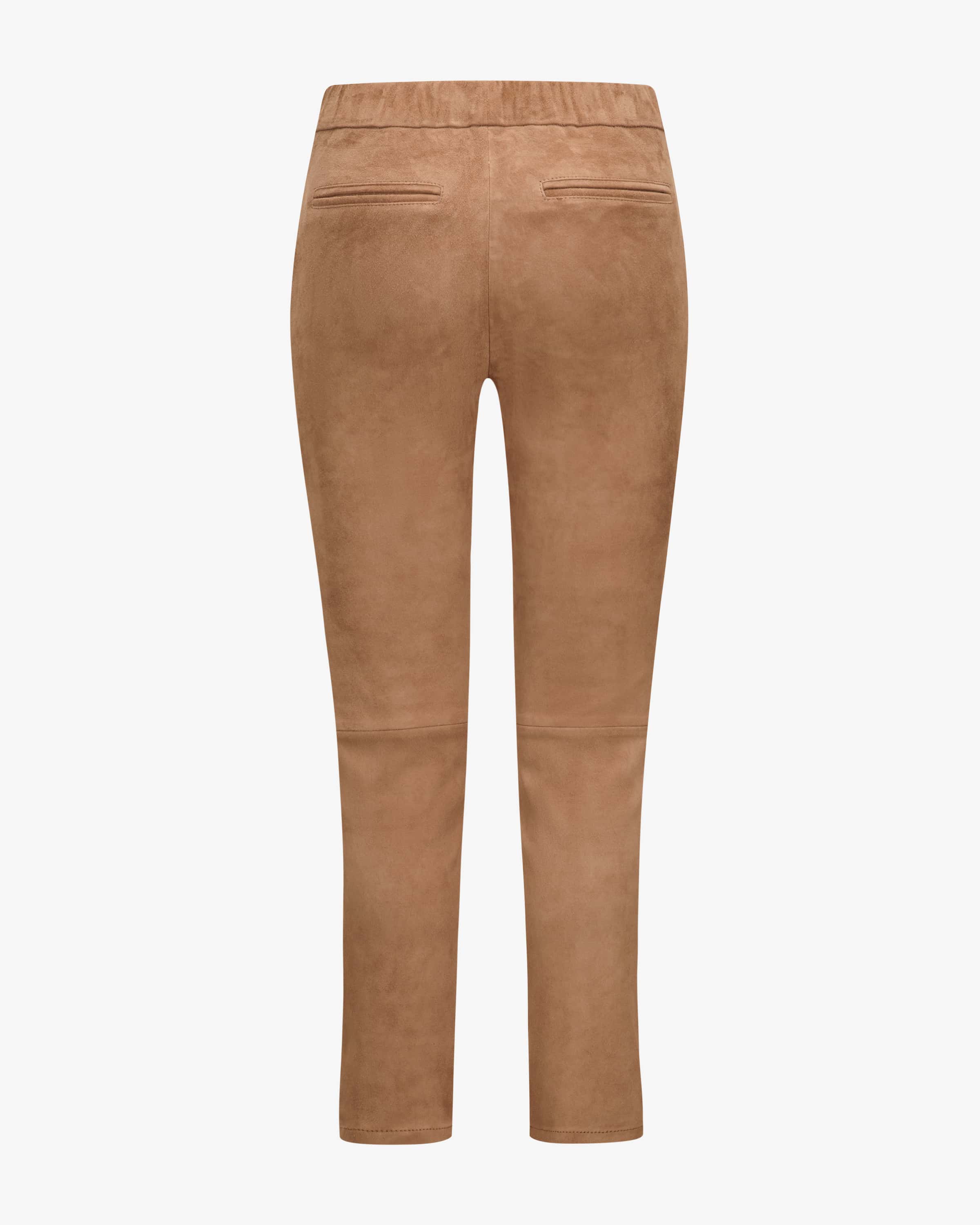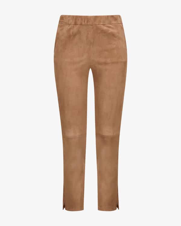 Kamilla stretch leather pants for women by ARMA in camel. Perfect your casual your casual wardrobe with this versatile piece made from flexible leather. leather. The elastic waistband and slim cut create a feminine silhouette.