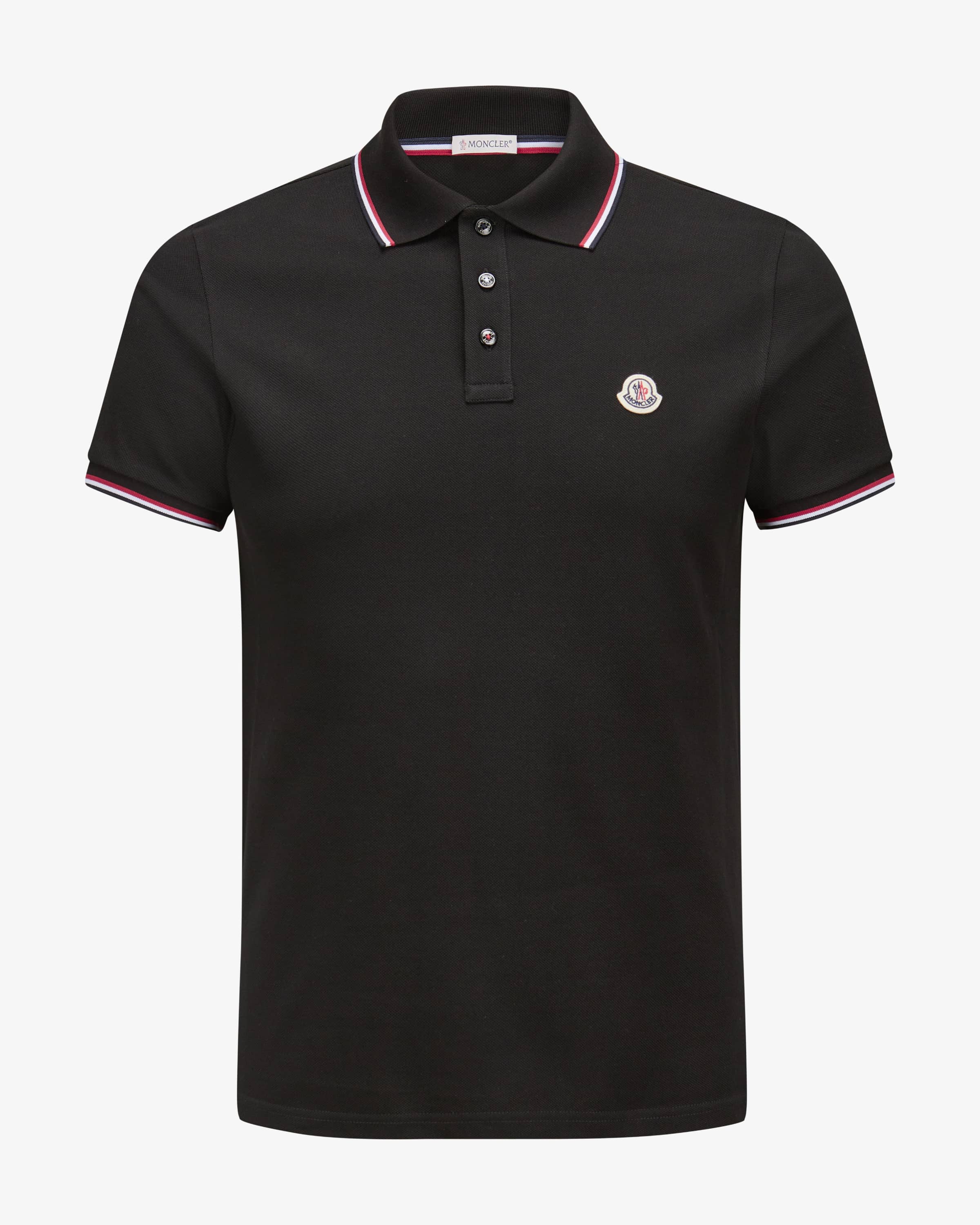 Polo shirt for men from Moncler in black. Label-typical contrasting stripes create a fashionable overall look and skilfully round off the simple design while the robust cotton in piqué quality promises a pleasant feel. promises a pleasant feel.