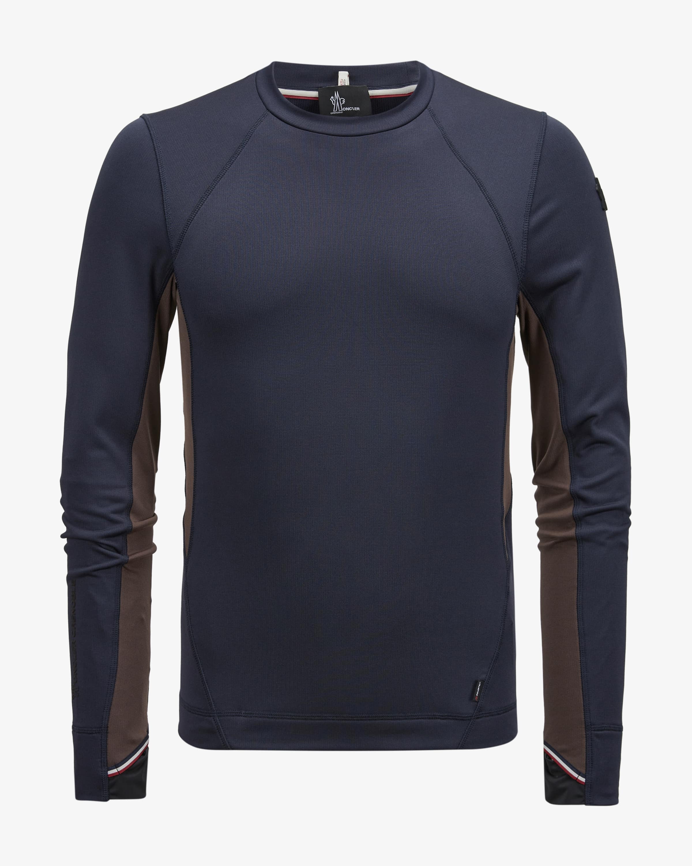 Sweatshirt for men from Moncler Grenoble in navy and brown. With this model the traditional Italian label presents a sporty favorite in an stretchy fabric, while logo details add the finishing touch.