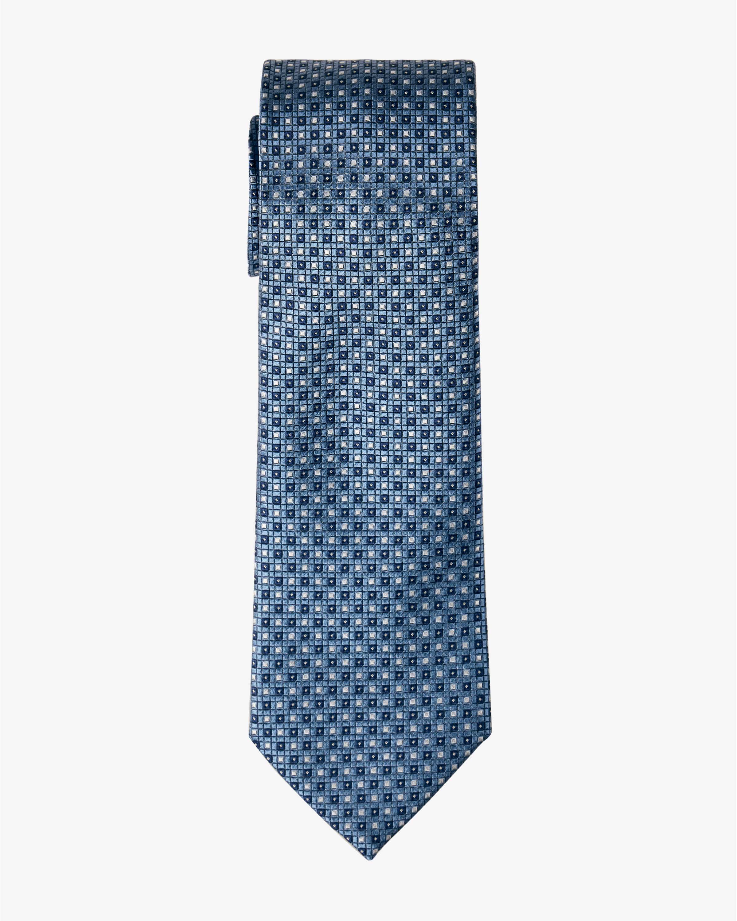 Silk tie for men from Zegna in light blue, navy and white. Thanks to the high-quality silk finish, the model has an elegant iridescent look. The geometric all-over pattern also creates a visual highlight for elegant looks. elegant looks.