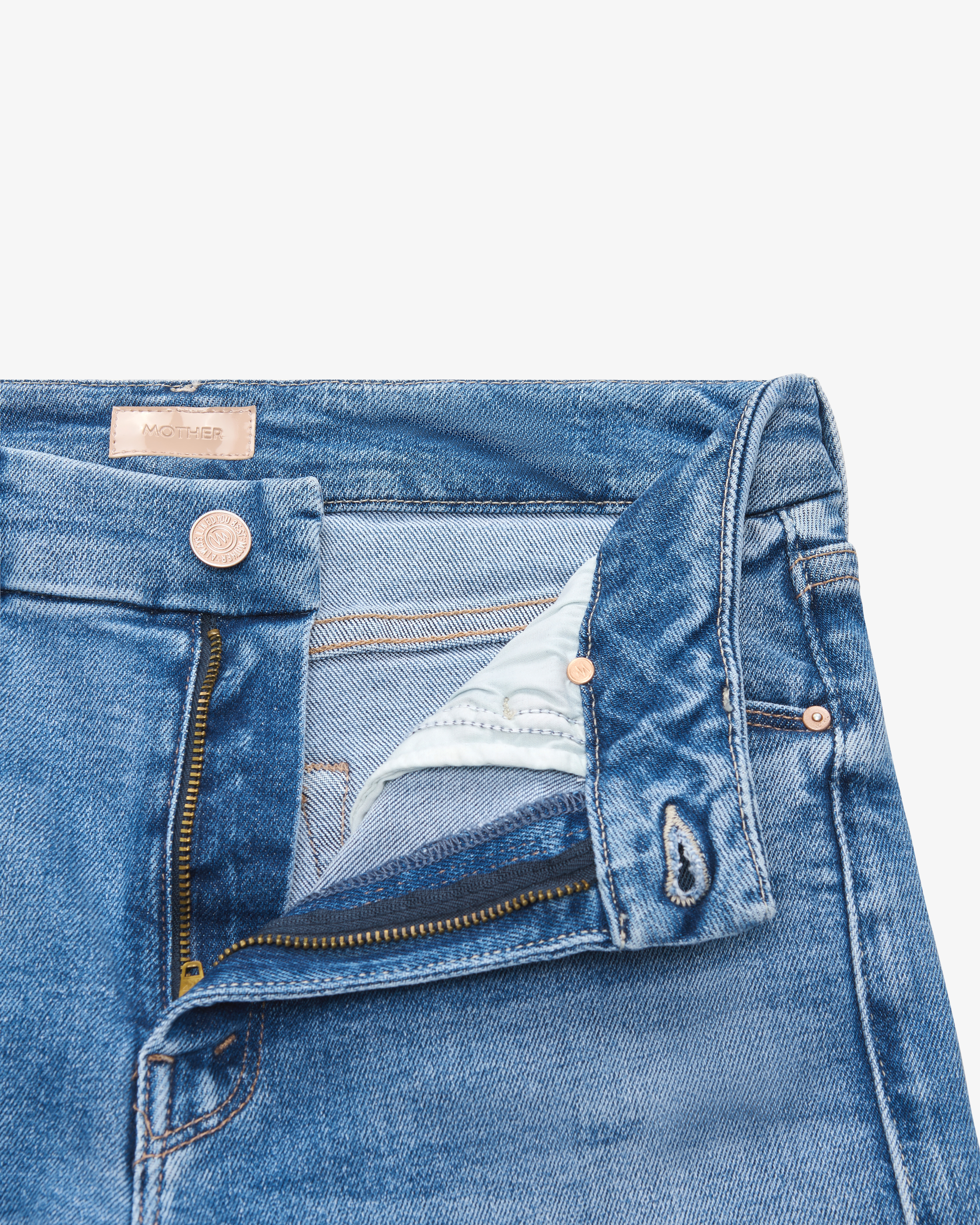 The Roller Fray jeans for women from Mother in blue. The label stands for trend-conscious but wearable cuts and is often a pioneer in new jeans silhouettes. silhouettes. The brand combines cool, stylish jeans with a high percentage of stretch. This denim model has a flared leg and a fashionable fringed hem, while the particularly stretchy cotton model, while the particularly stretchy cotton blend promises a high level of comfort. comfort.