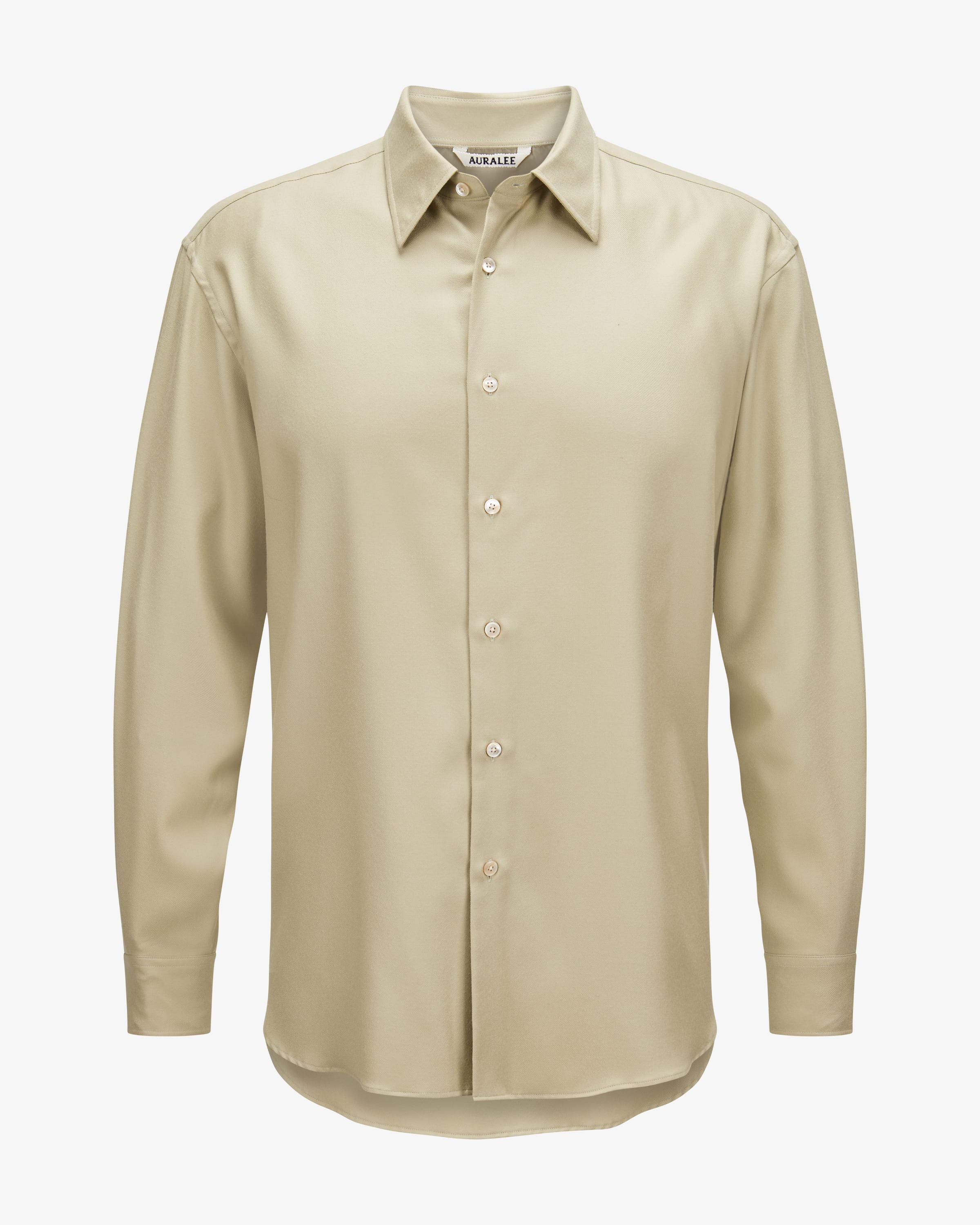 Wool shirt for men from Auralee in light green. The high-quality model made from soft wool impresses with its pleasant feel, while the simple cut creates a versatile creates a versatile companion for fashionable looks.