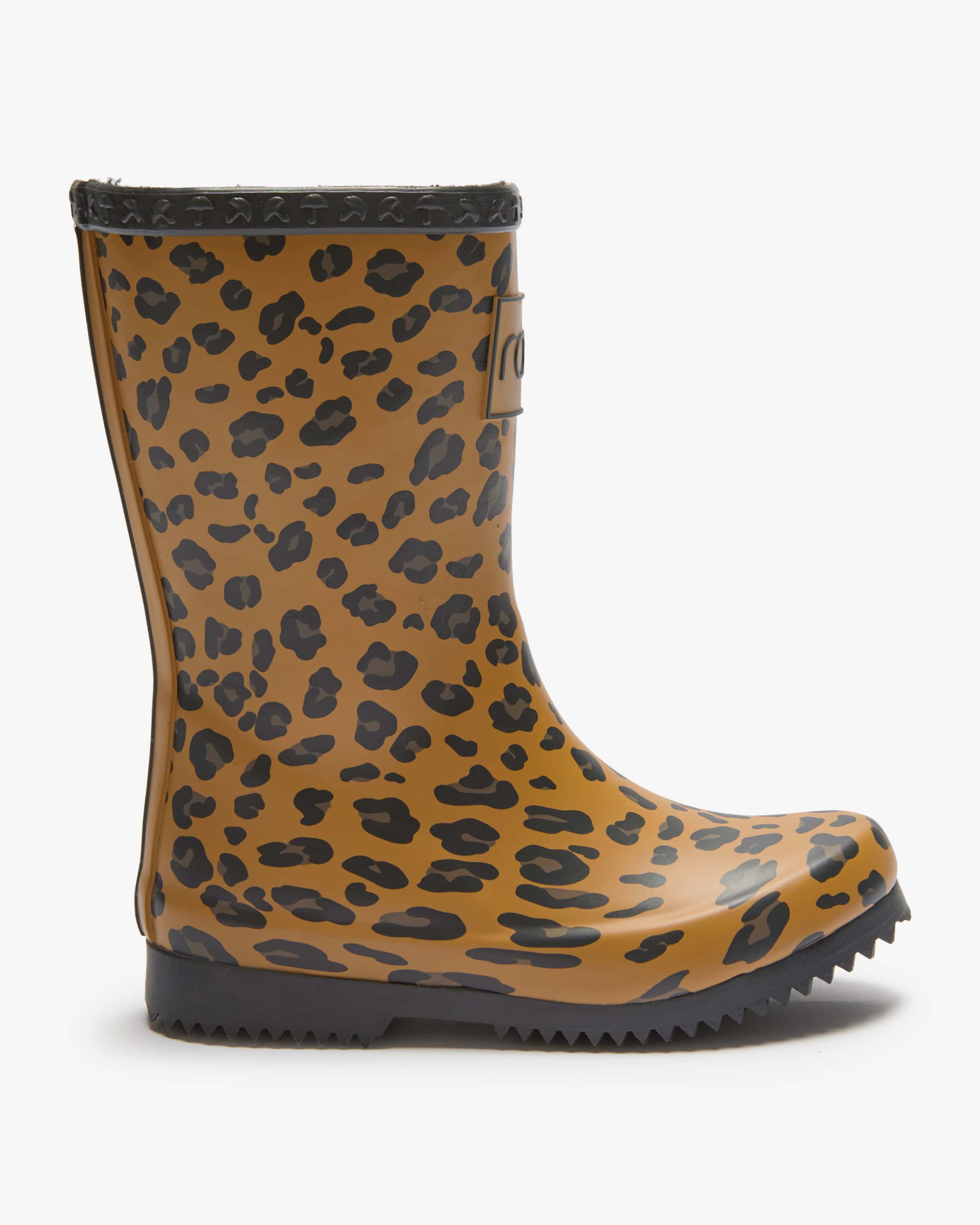 Rubber boots for girls by Rajn in light brown, dark brown and black. A functional companion with a cute character - this model protects your little one little one from the cold and wet, while the leopard pattern adds a playful accent and and adds a special charm.