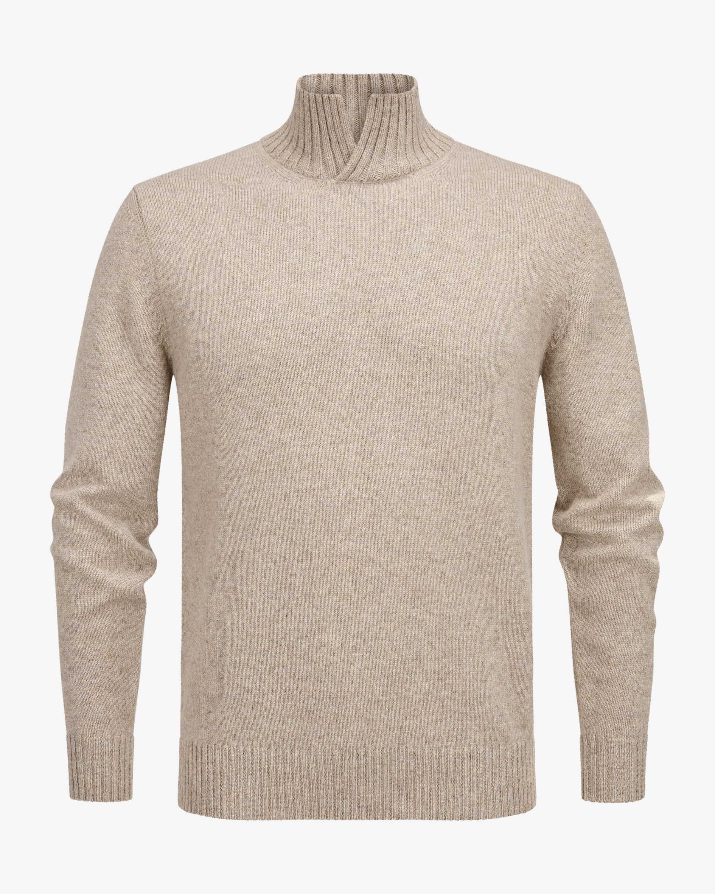 Cashmere sweater for men from Maurizio Baldassari in beige. The model impresses thanks to the high-quality cashmere processing with a particularly soft handle, while the timeless design in knitted quality with a split collar creates a timeless companion.