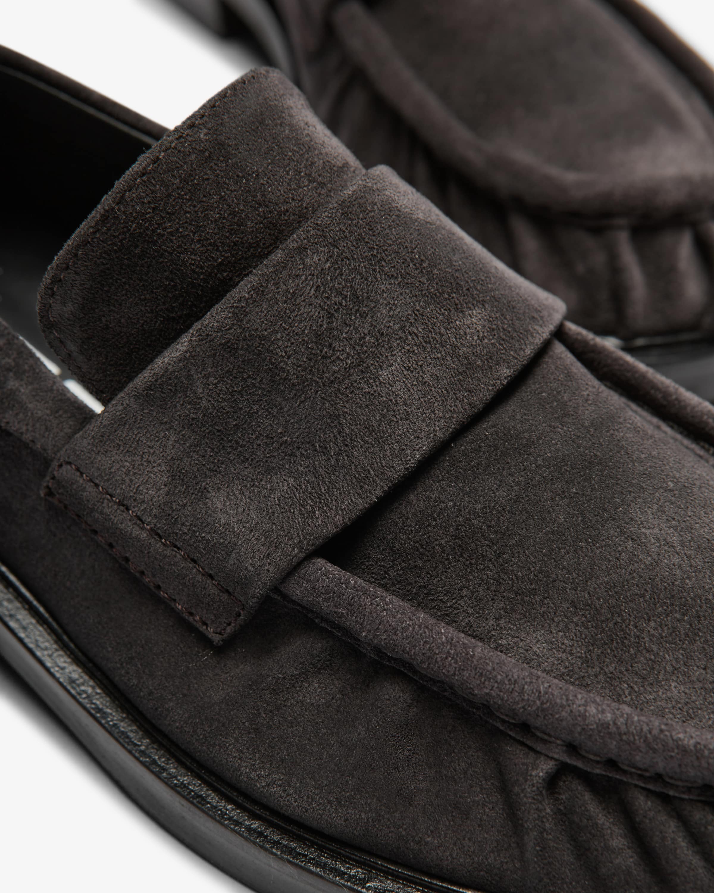 Silvy loafers for women from Strategia in anthracite. The model in soft suede convinces with comfortable wearing moments, while the decorative strap and and gathered details create a timeless companion for versatile styles. styles.