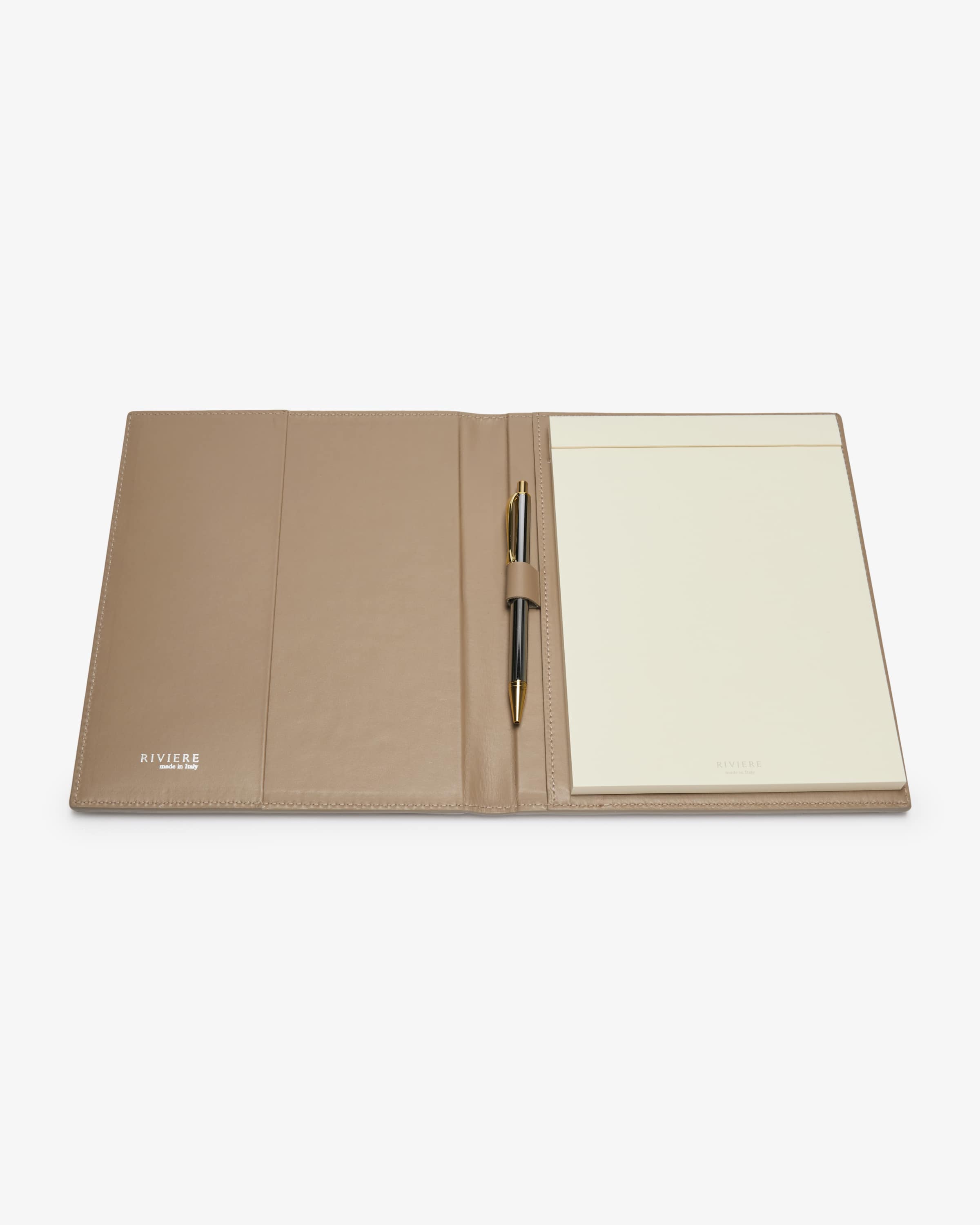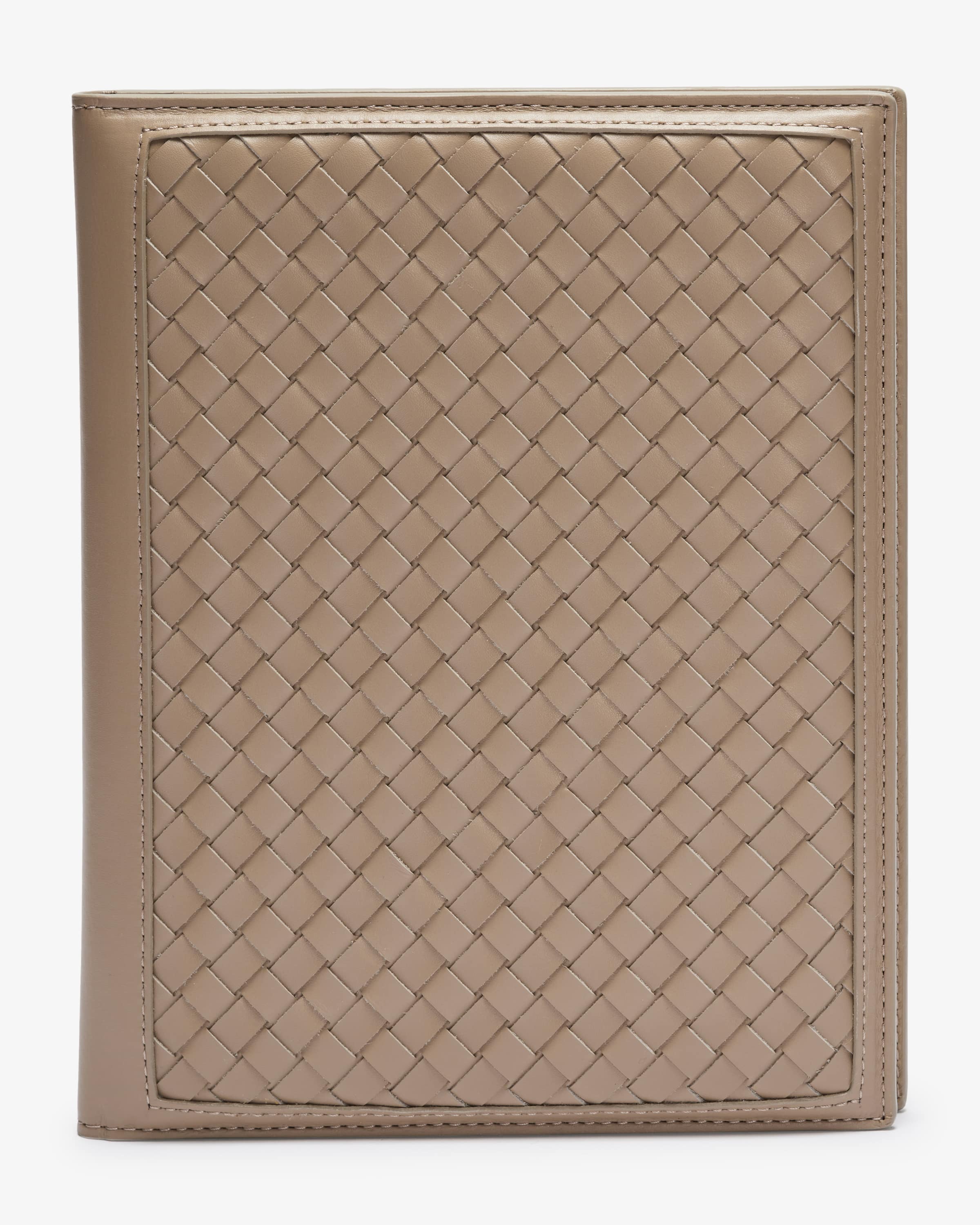 A5 notepad holder from Giobagnara in taupe. Handmade in Italy - The finest leather workmanship characterize the Italian luxury brand. This stylish cover also impresses thanks to the elegant calfskin cover in a braided design as an aesthetic holder for an A5 notepad. Flat inner compartments and a pen loop loop practically complement the design.