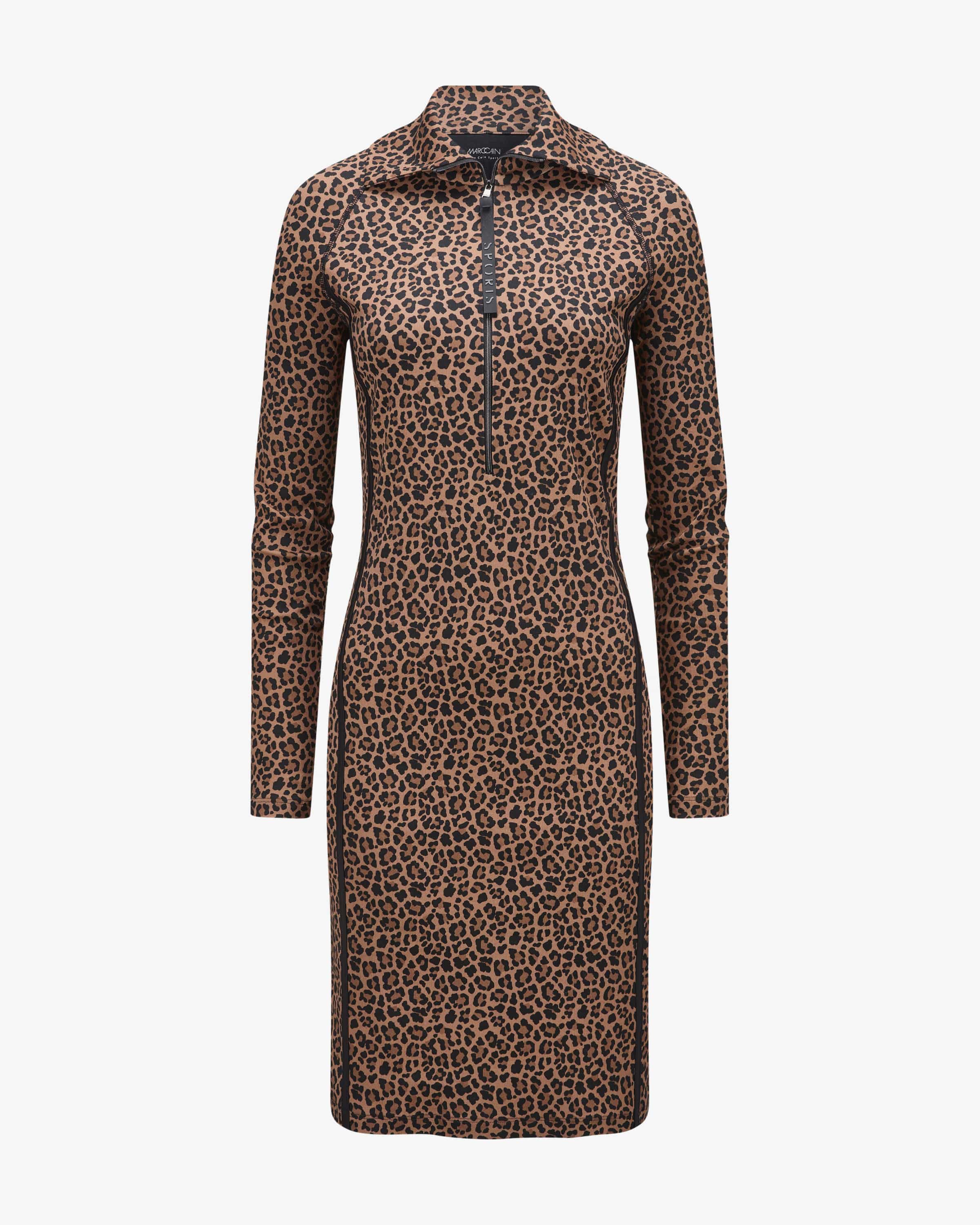 Dress for women from Marc Cain in cognac and black. The German brand stands for for self-confident, feminine looks. Combined designs with high quality standards - known for prints & knitwear. This model in rib-knit quality and leopard design also impresses with its feminine fit, a perfect perfect companion for statement looks.