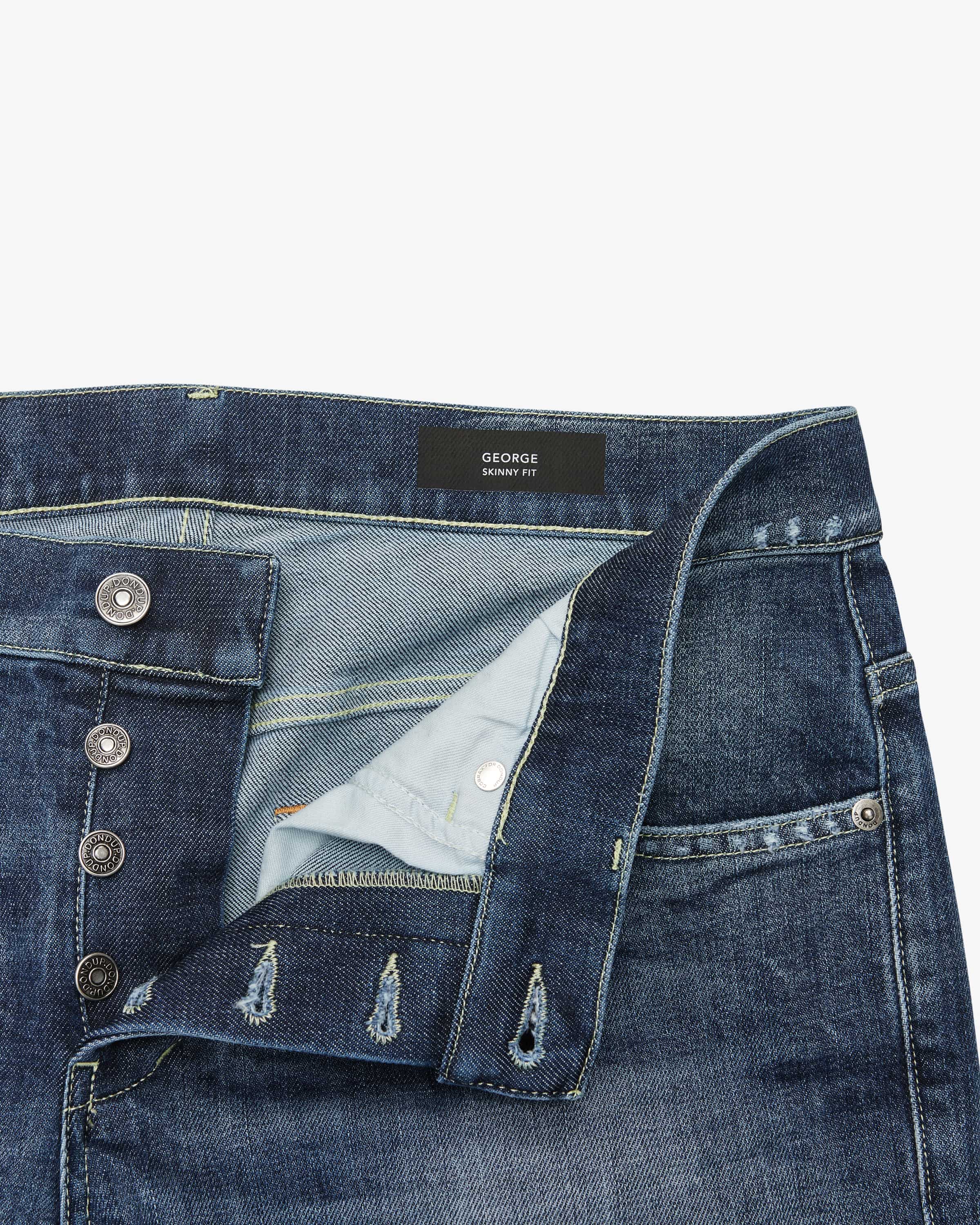 George skinny fit jeans for men from Dondup in blue. Dondup is an Italian denim and contemporary label - casual, modern, with a design standards. This slim-fit denim model is also a masculine piece thanks to fashionable destroyed details make it a masculine companion, while the stretchy cotton blend cotton blend ensures a comfortable fit.