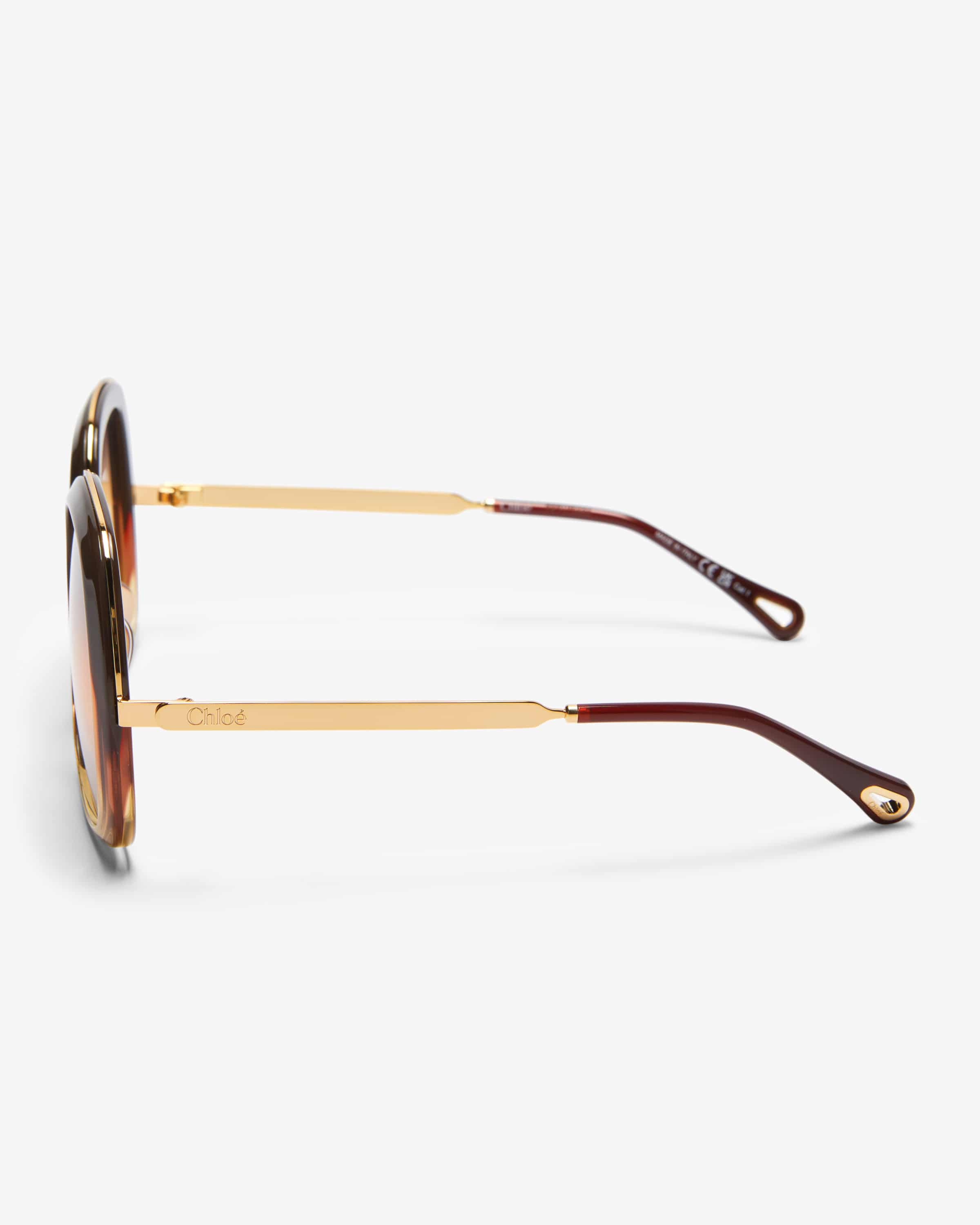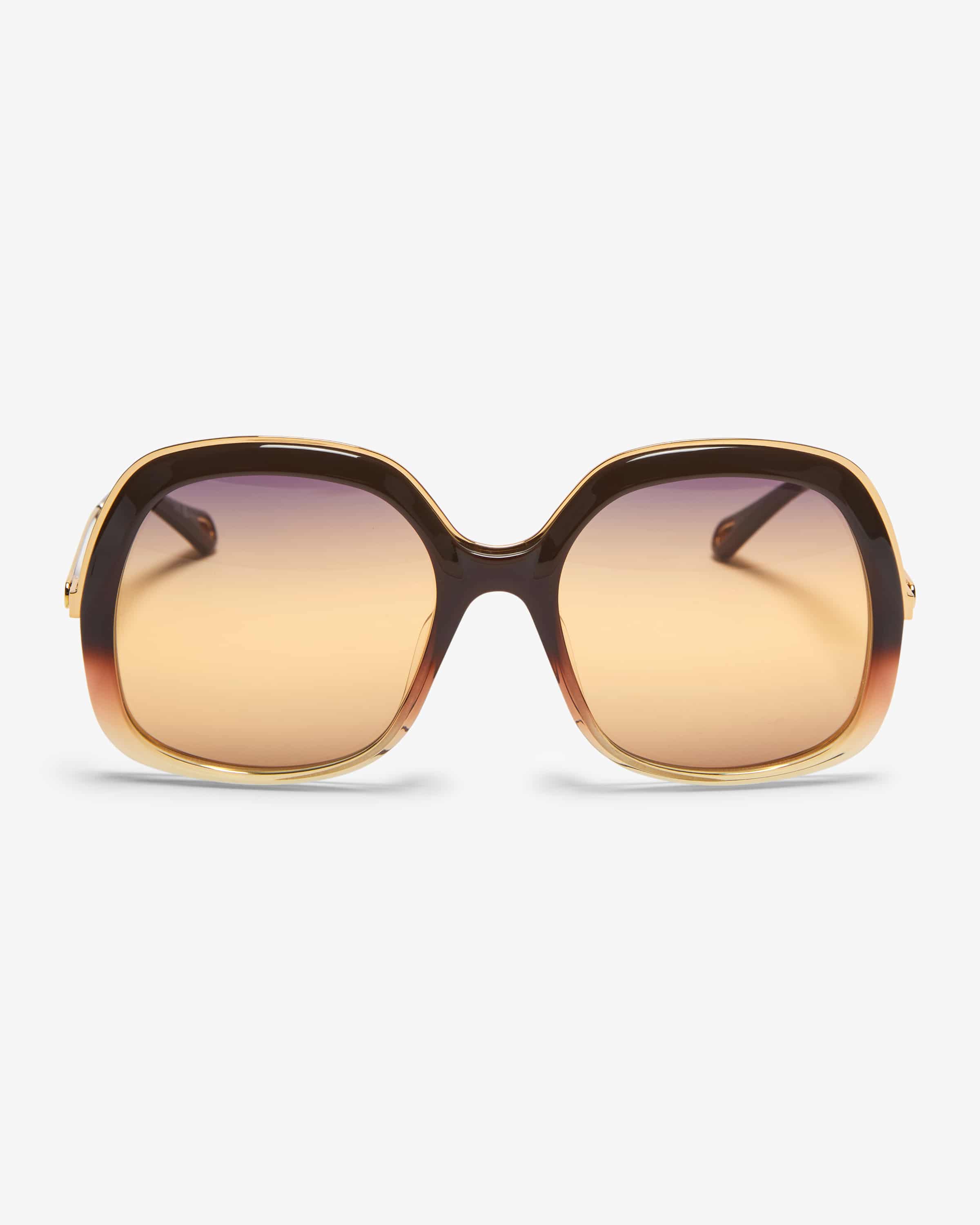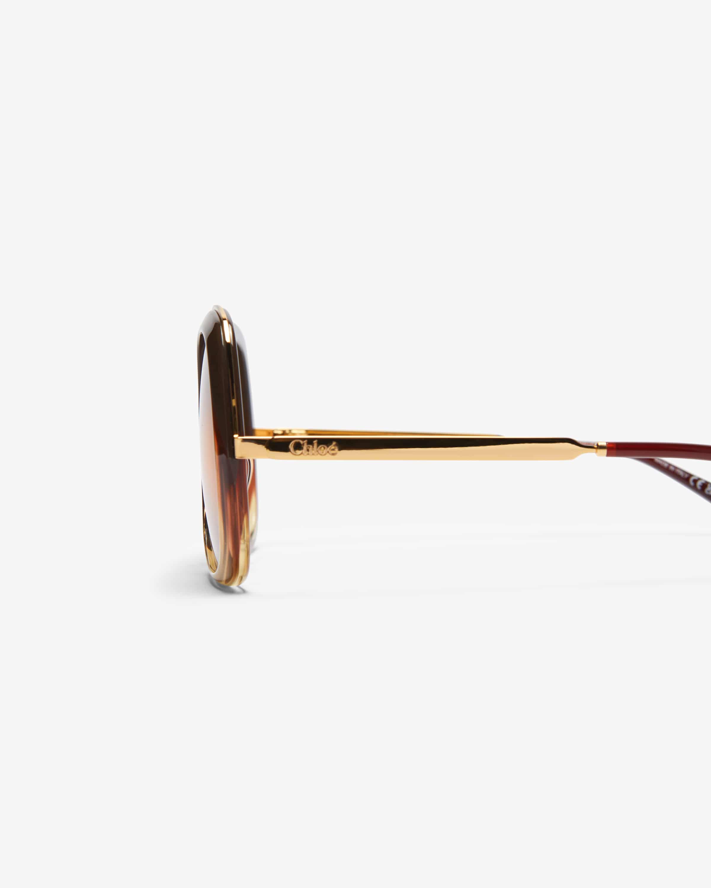 Sunglasses for women from Chloé Eyewear in dark brown, yellow and gold. Thanks to the
