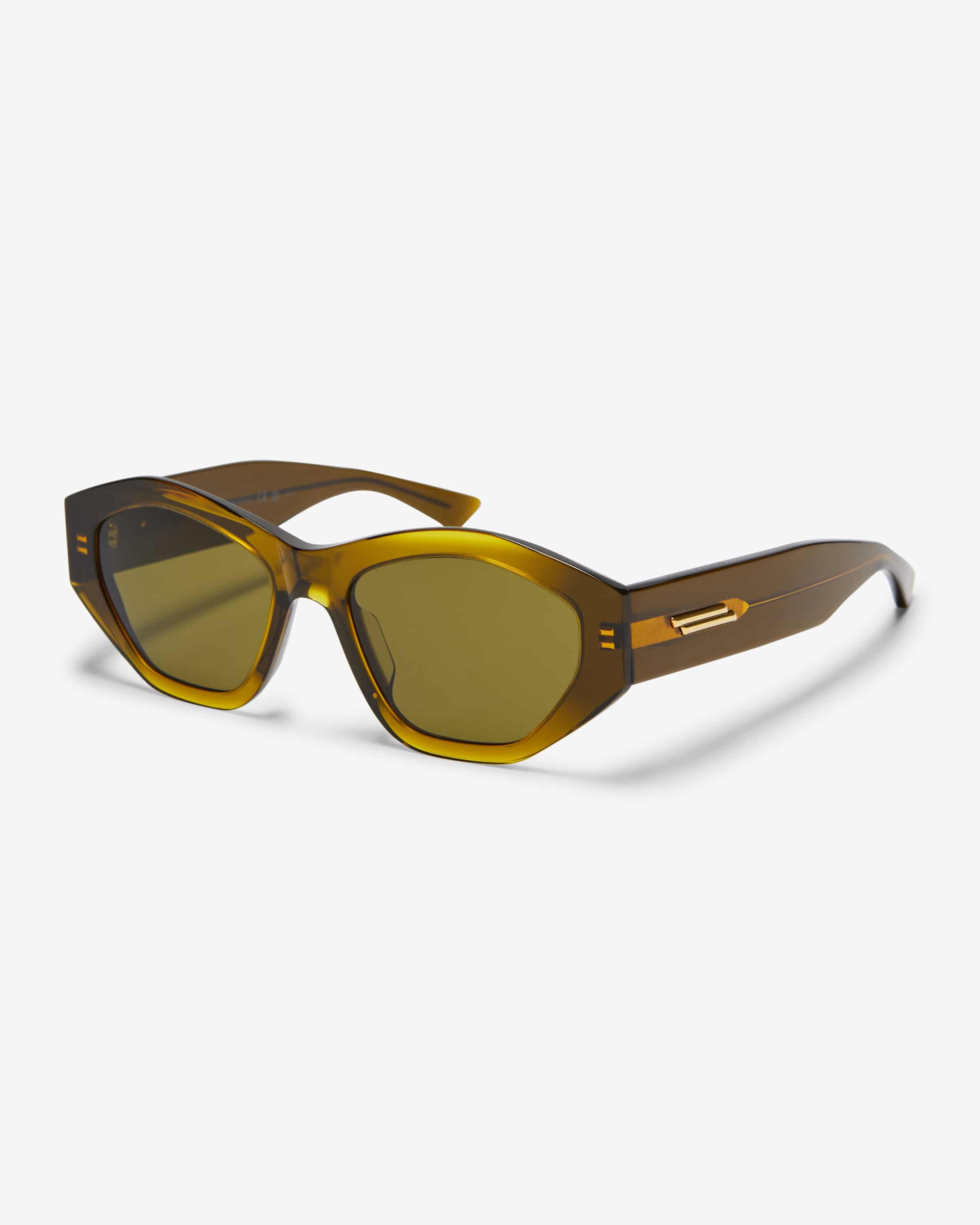 Sunglasses for women from Bottega Veneta Eyewear in Lemon. Thanks to its hexagonal shape, the model with wide frame and color gradient becomes a fashionable companion on sunny days. The gold-colored elements add a label-typical accent.
