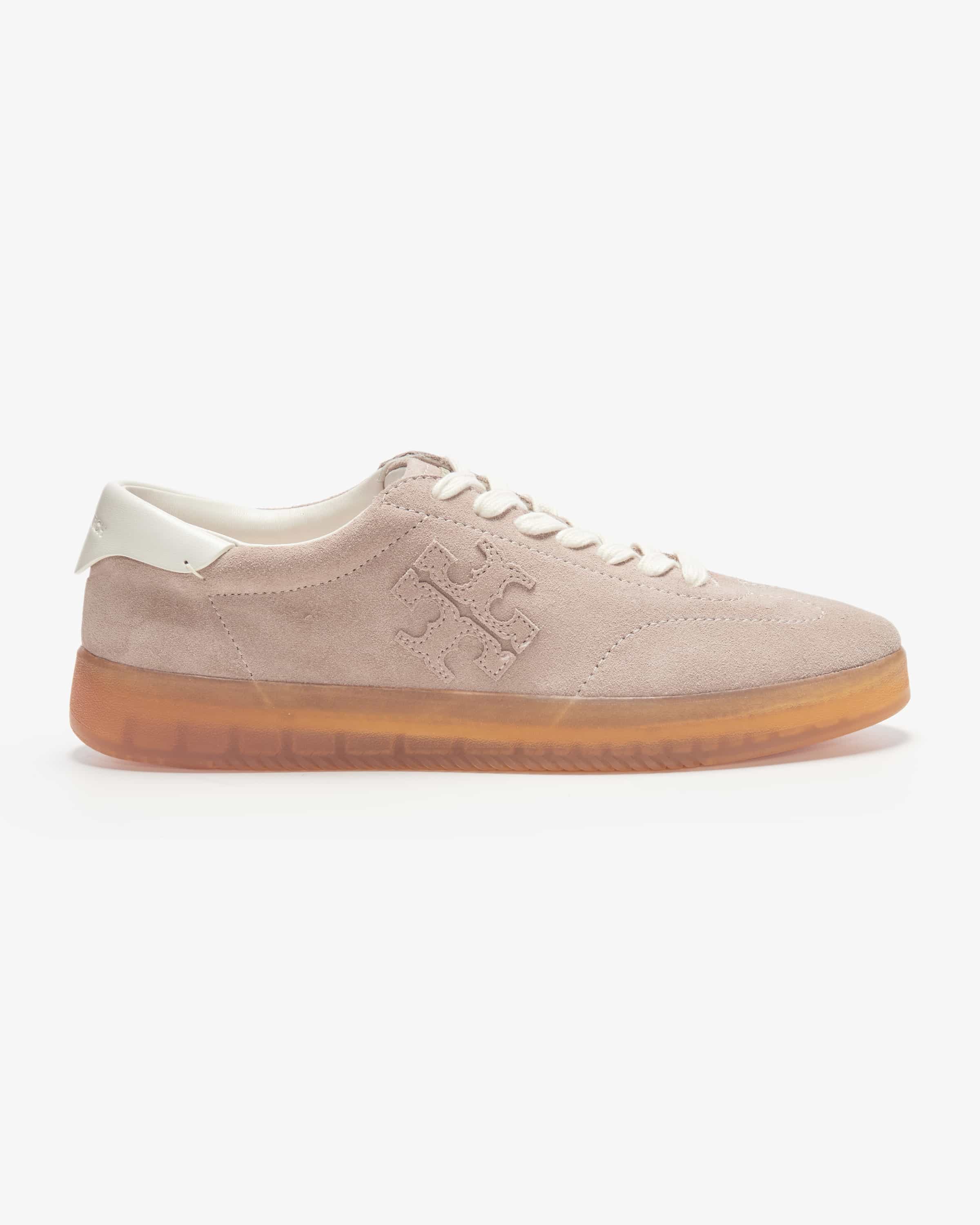 Phoenix sneakers for women from Tory Burch in taupe and white. Thanks to the soft suede design with smooth leather detail on the heel, this model has a fashionable model has a fashionable look with a sporty character. Logo details round off the harmoniously round off the overall look.