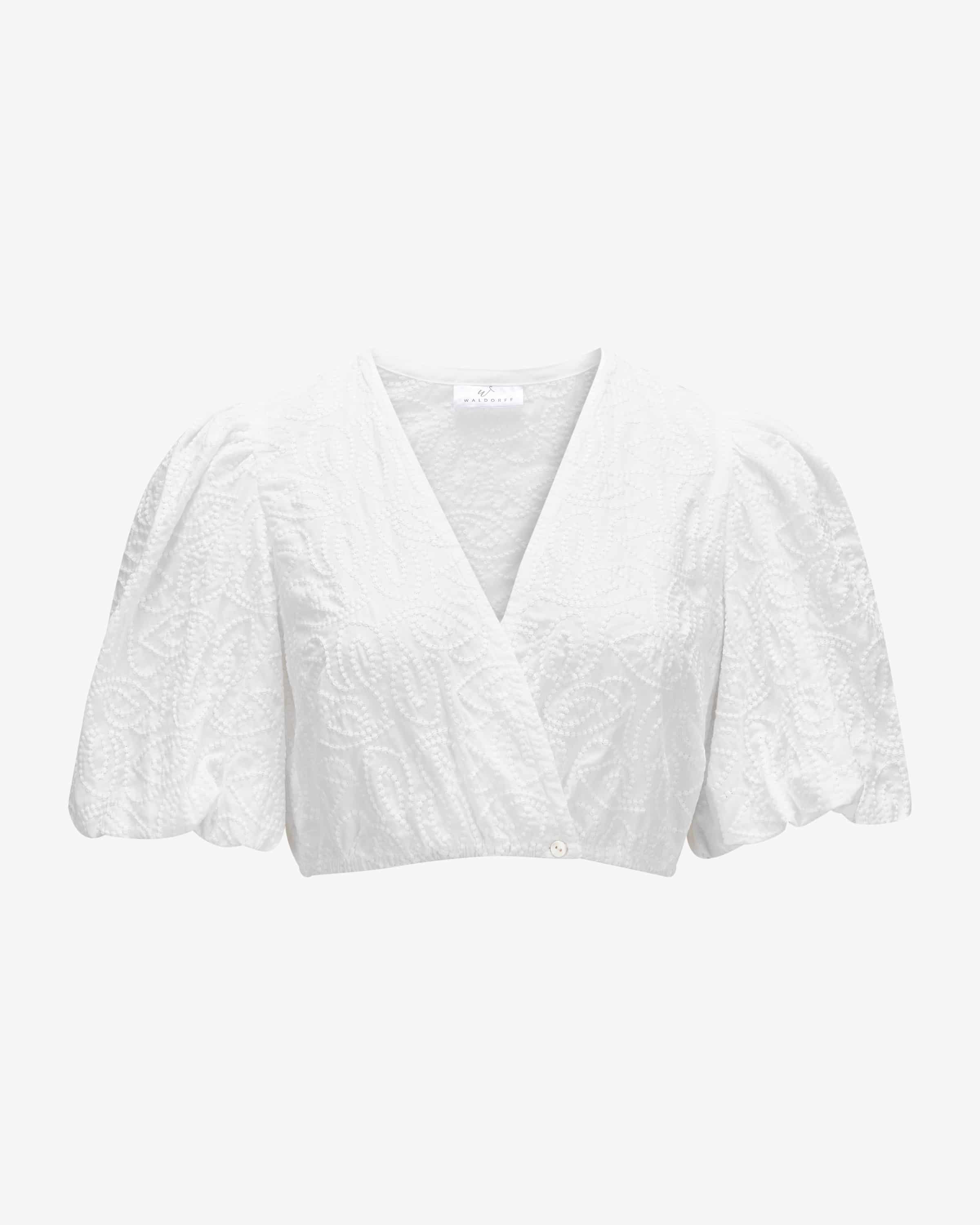 puff sleeves and the overlapping V-neckline with feminine charm, which is stylishly