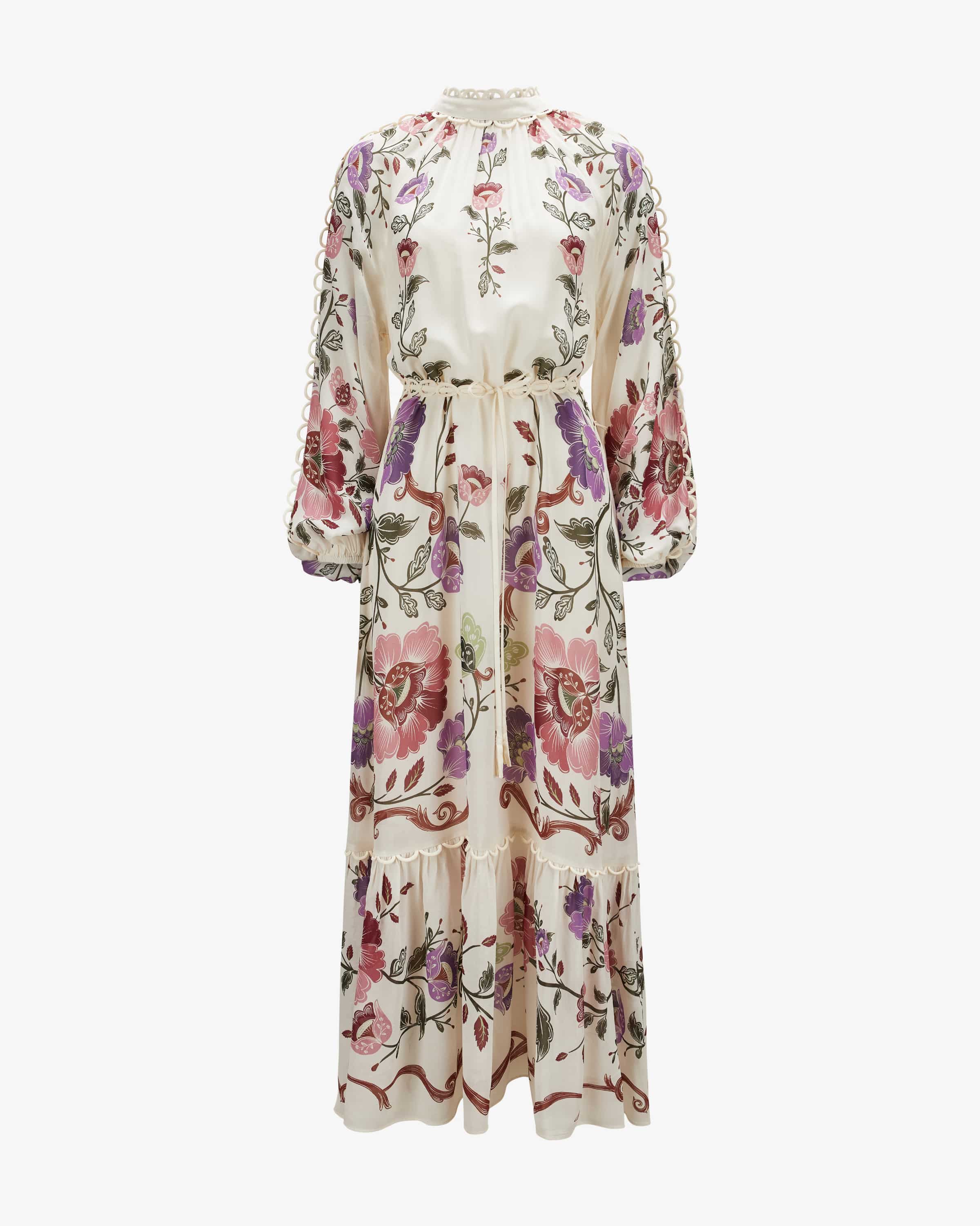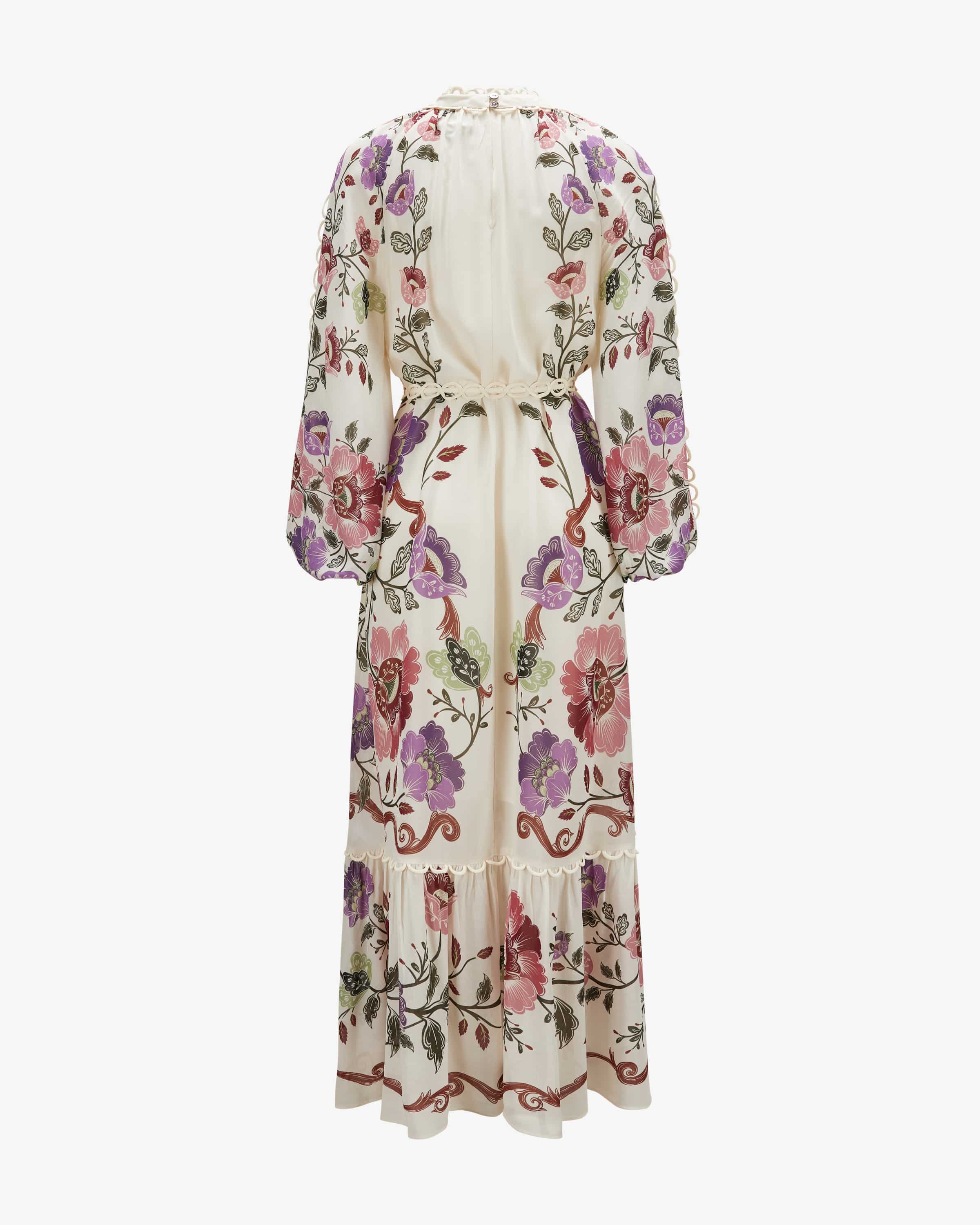 Roccoco Flowers dress for women from Farm Rio in cream, pink and dark green. The