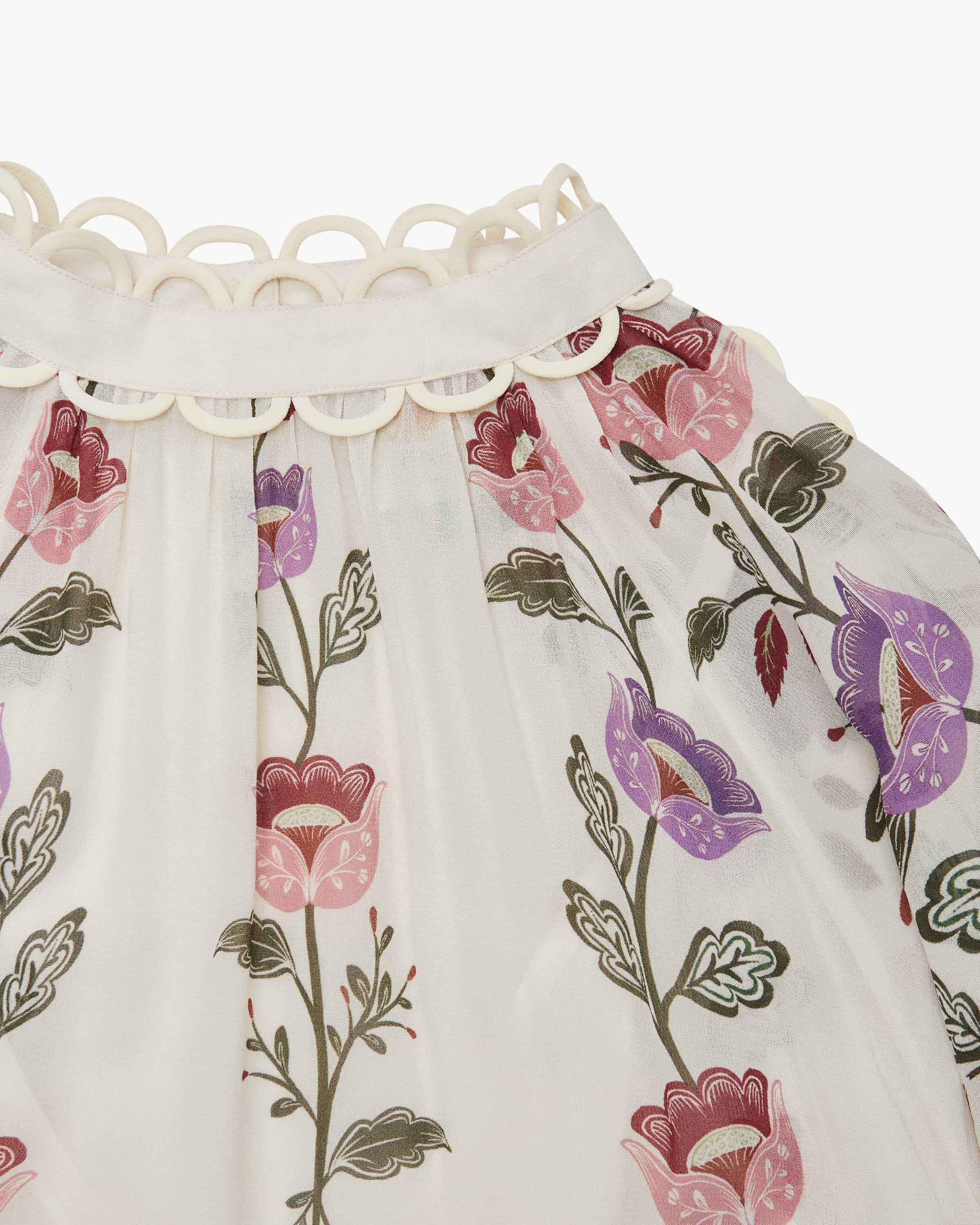 model also impresses with its semi-transparent chiffon, while the floral design in a romantic