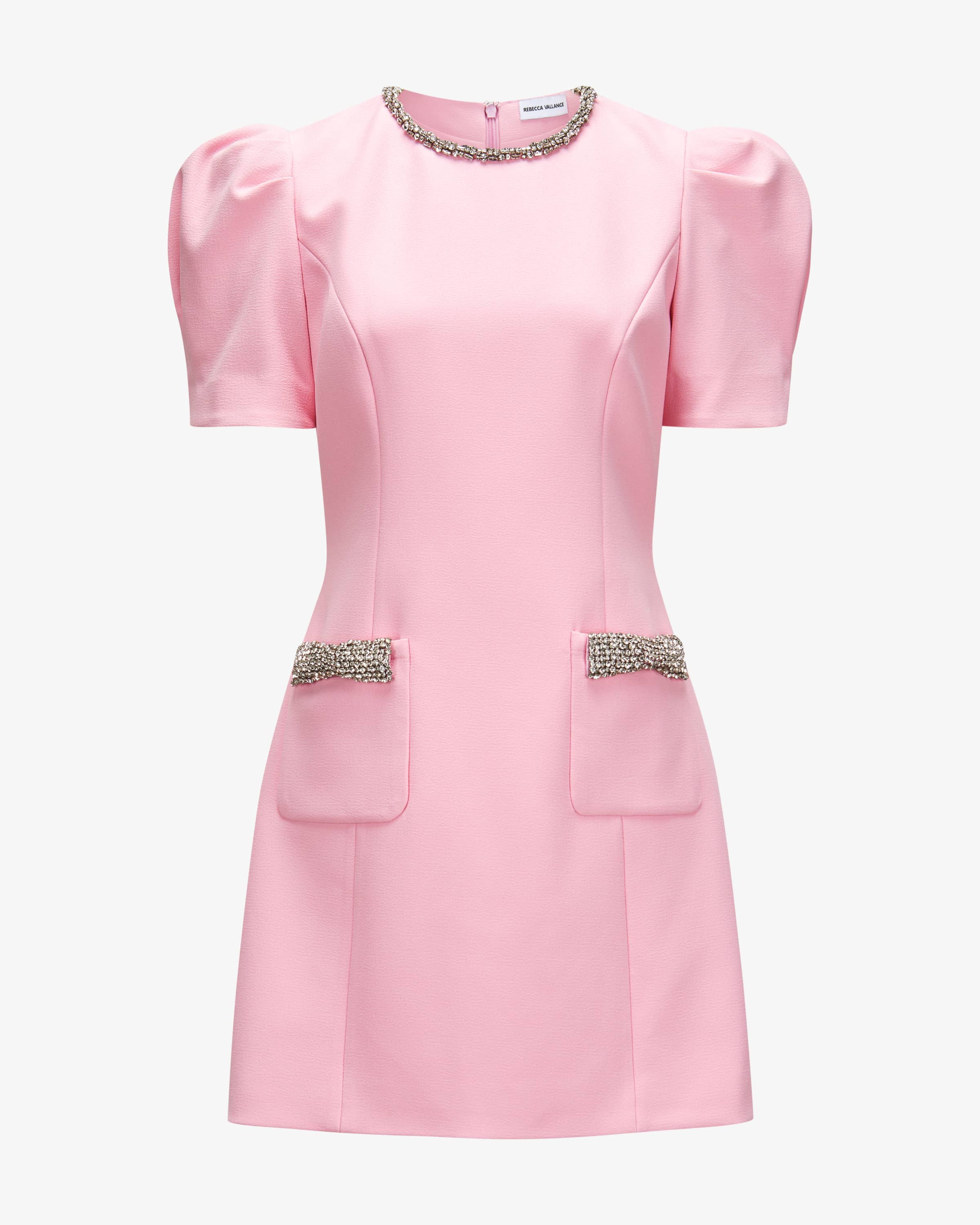 Nemy dress for women from Rebecca Vallance in pink and silver. The Australian brand stands for structured dresses with feminine power - red-carpet-ready with a modern modern touch. This model also impresses with its elegant iridescent gemstone trimming, while the fitted silhouette with striking puff sleeves skilfully rounds off the elegant, feminine style.