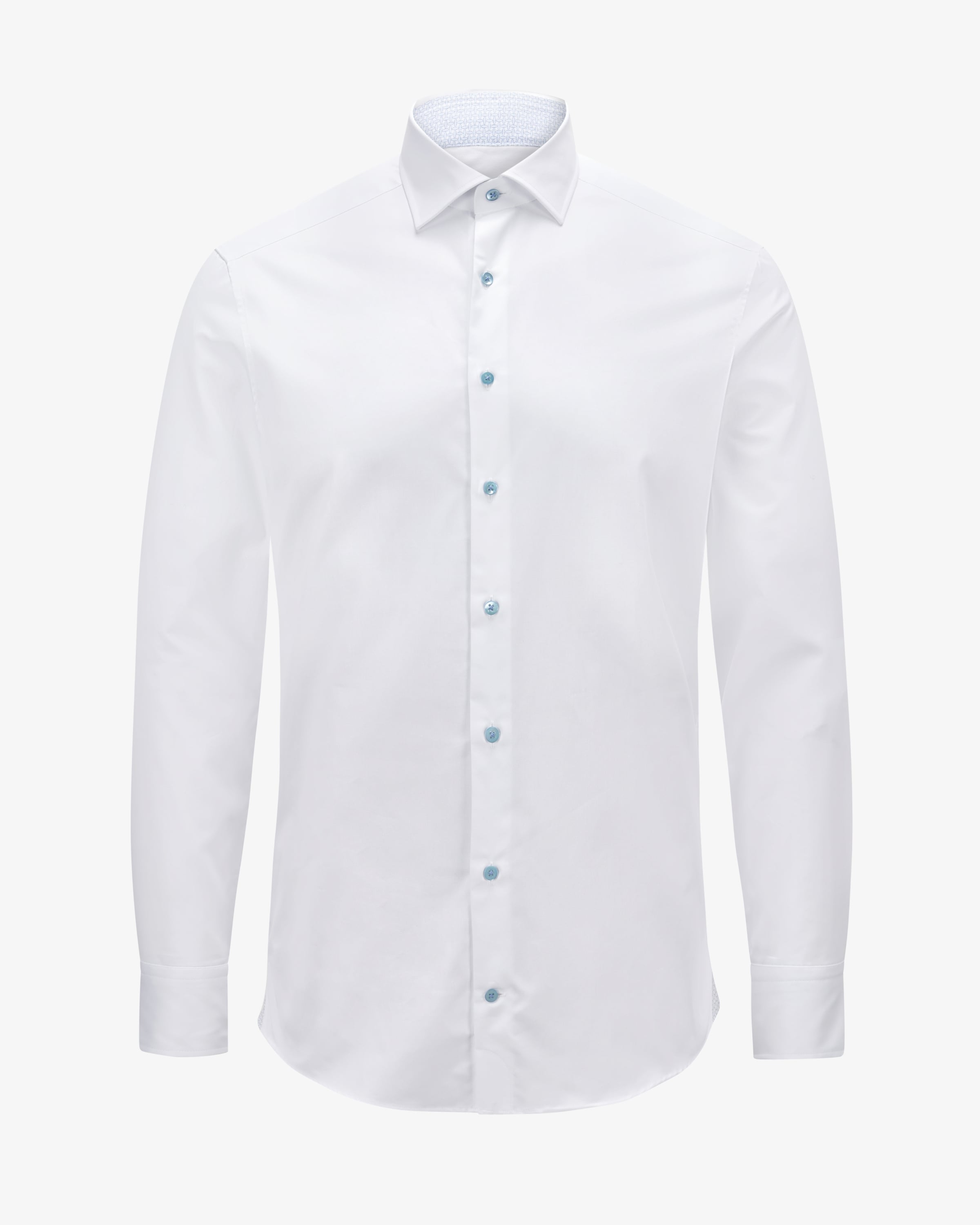 Slimline business shirt for men from $stopword_1087$ in white and light blue. High-quality two-fold cotton and classic accents make this shirt a trend-conscious trend-conscious highlight for elegant looks. The tailored fit also ensures at the same time for an accentuated silhouette and a fashionable appearance.