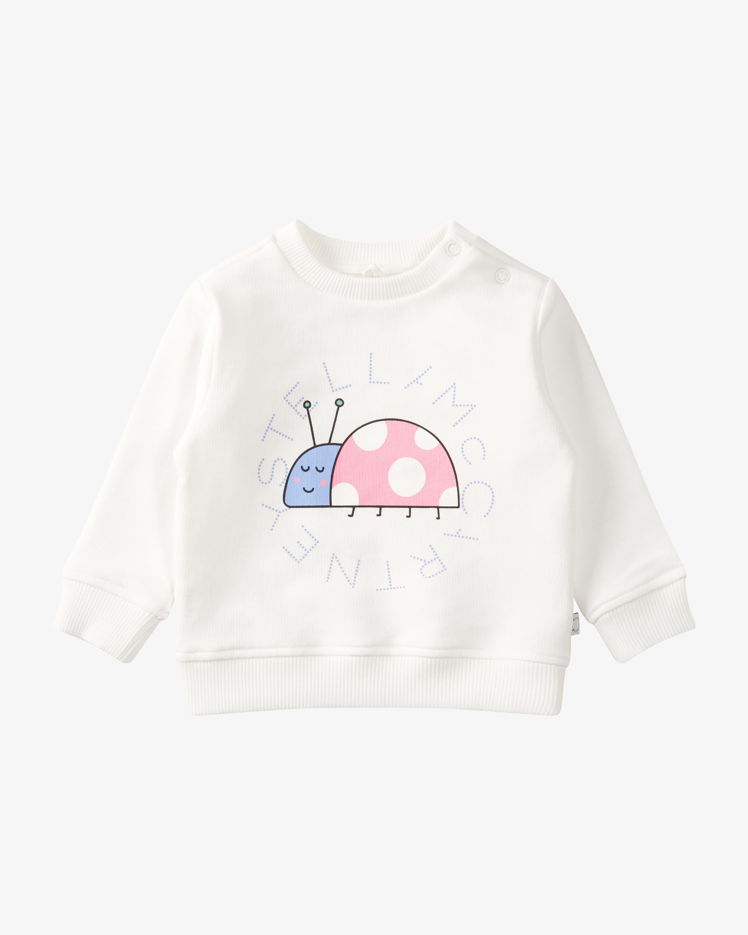 Sweatshirt for babies from Stella McCartney Kids in white, pink and blue. Fashion with responsibility - colorful, bold and made from sustainable materials. The model in classic sweat fabric, while the cute ladybird print features a logo. ladybug print and logo lettering skilfully accentuate the look.